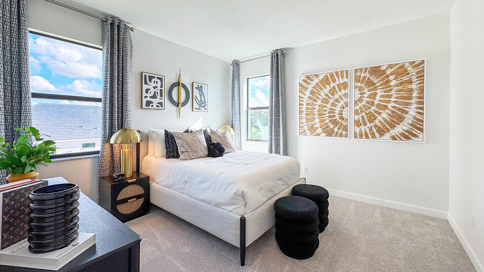 This new two-story home showcases a gracious open design among the first-floor kitchen, Great Room and dining room, which has direct access to the large covered lanai. On the same level is a private study and the tranquil owner's suite with an attached bathroom. Upstairs caters to all three secondary bedrooms and a loft for additional shared living space.Prices, dimensions and features may vary and are subject to change. Photos are for illustrative purposes only.