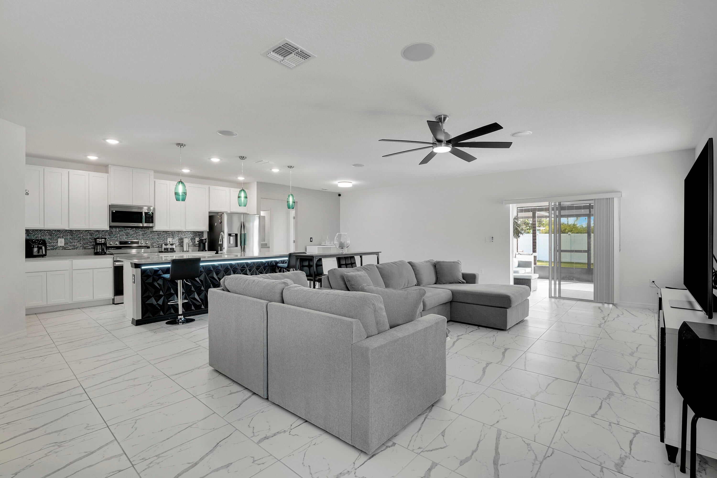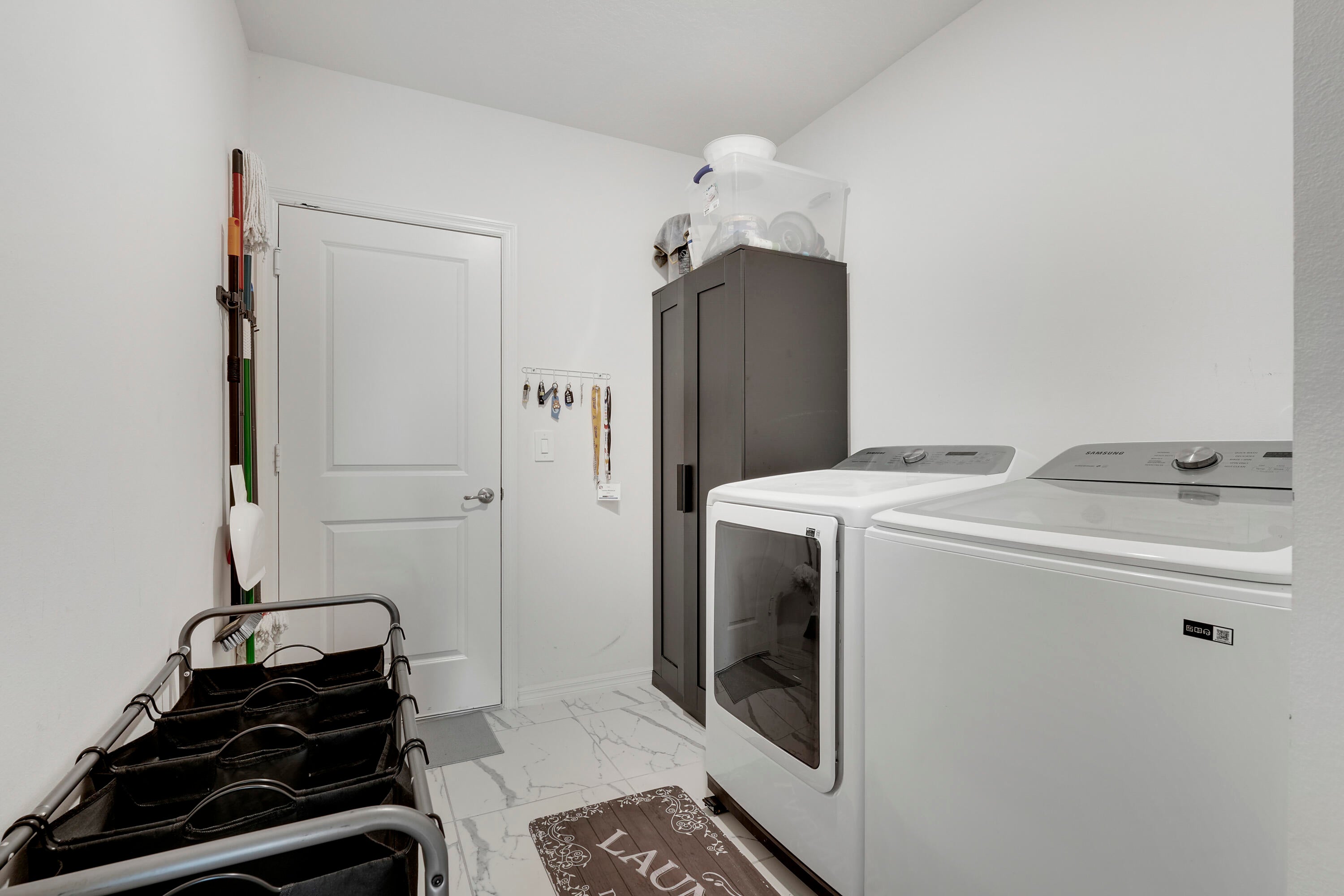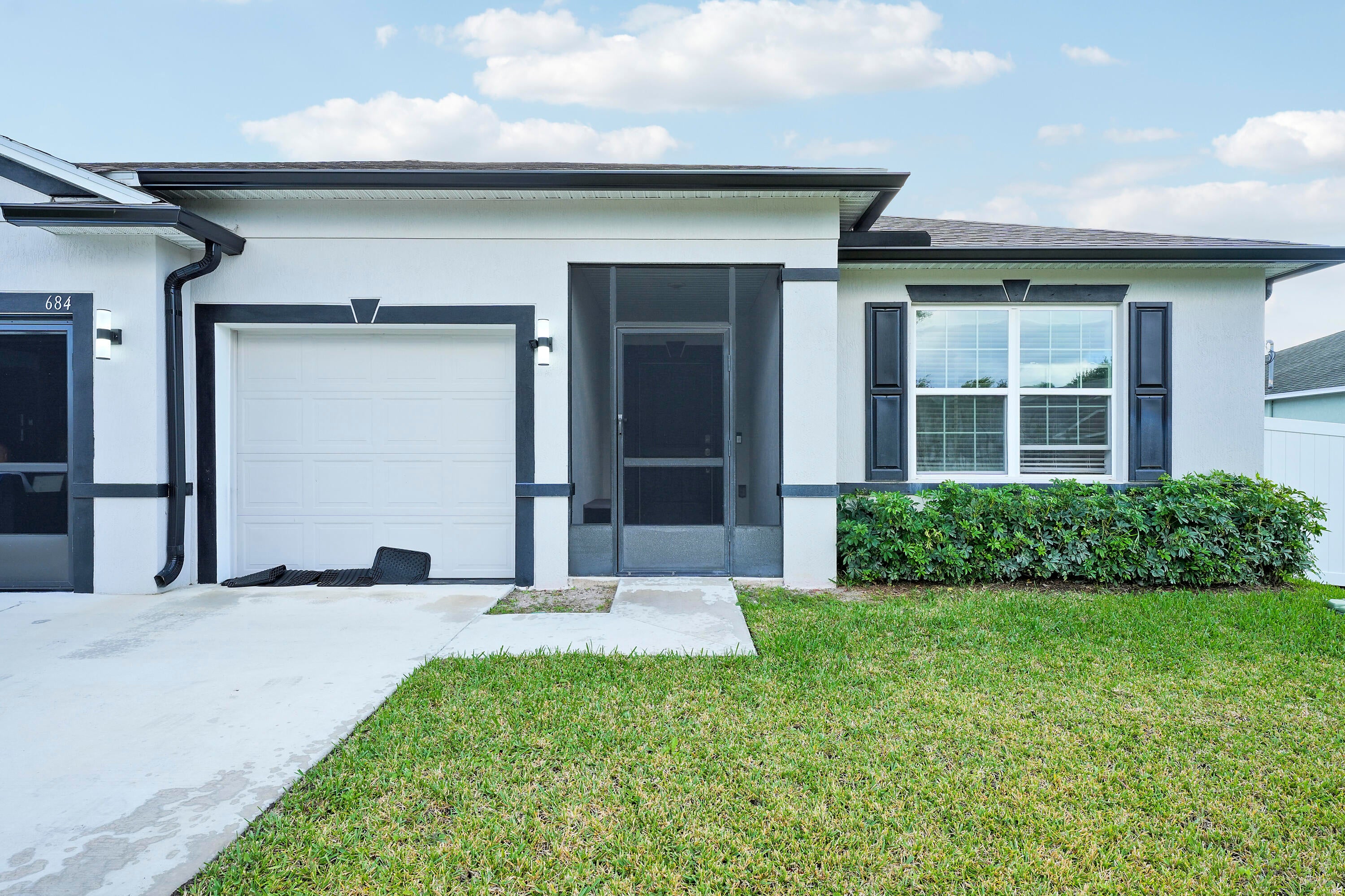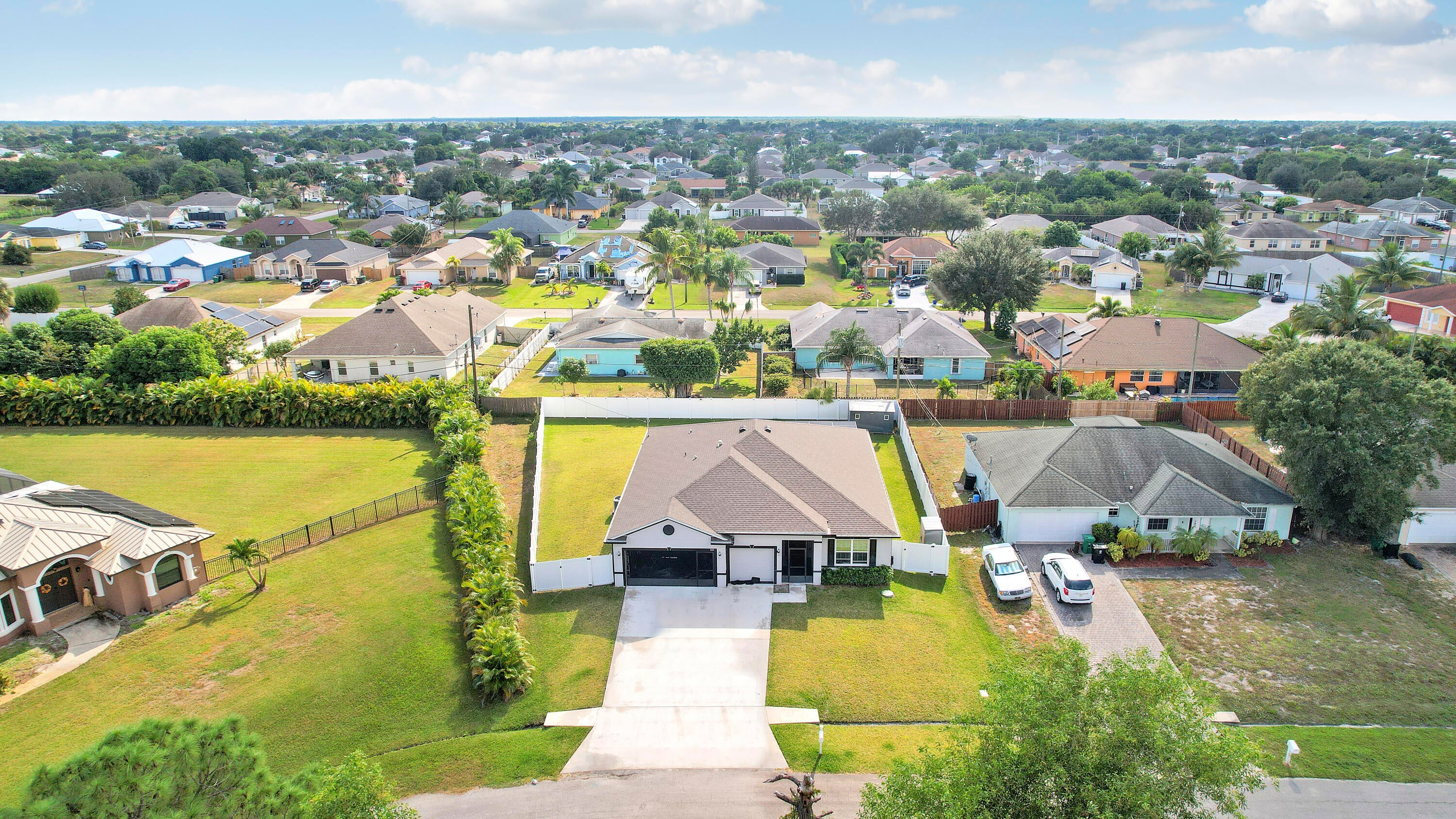 2024 Maranda Homes build featuring 4 bedrooms, 2 full bathrooms, and a 3-car garage with no HOA. This move-in-ready home offers quartz countertops, stainless-steel appliances, a spacious laundry room, and smart-home features including a smart thermostat, smart lock, and security cameras. Enjoy a fully fenced yard with room for a pool and hurricane-panel shutters for added protection. Conveniently located near major roadways, shopping, dining, parks, schools, and Port St. Lucie amenities.