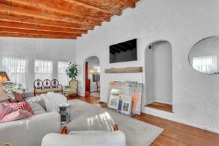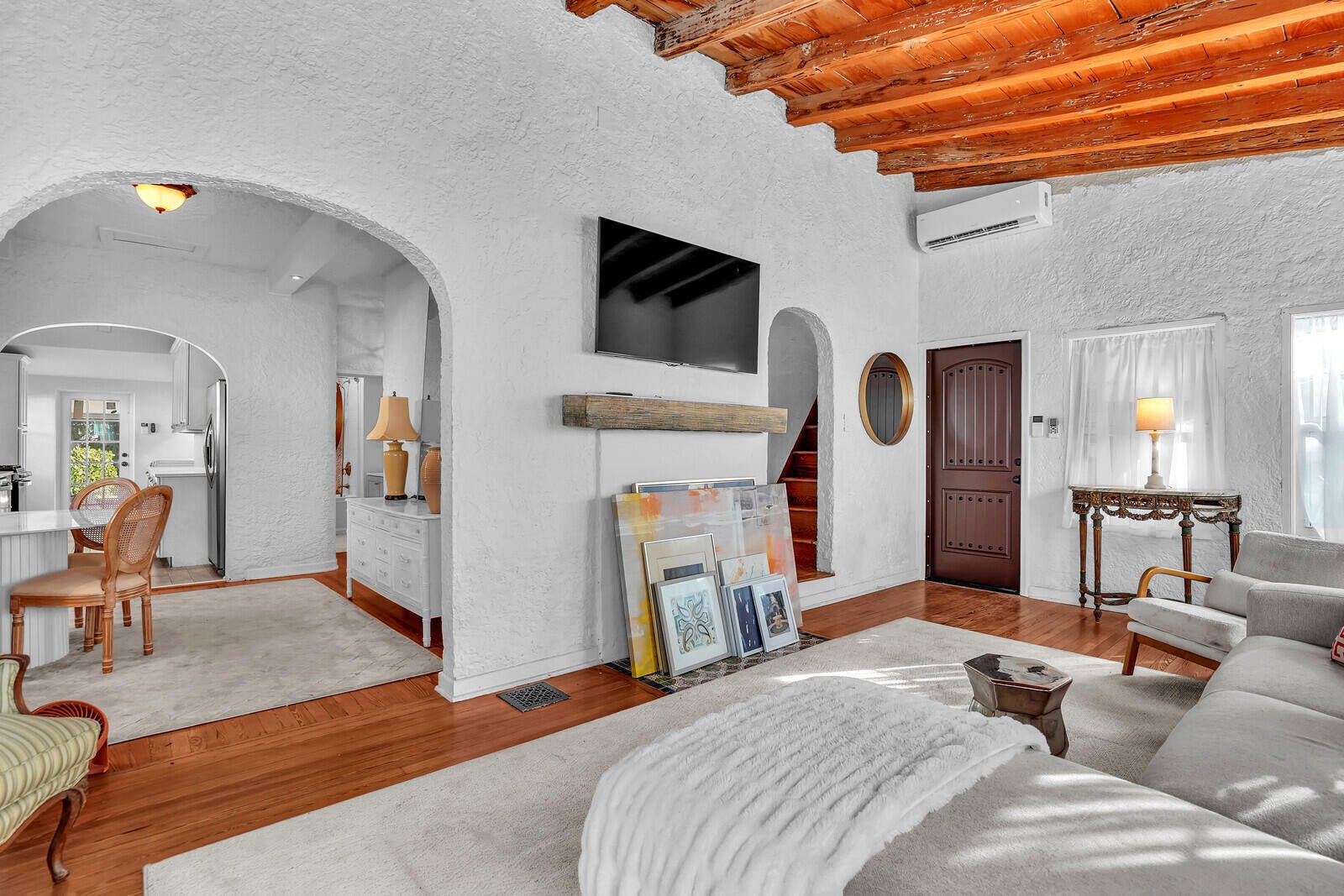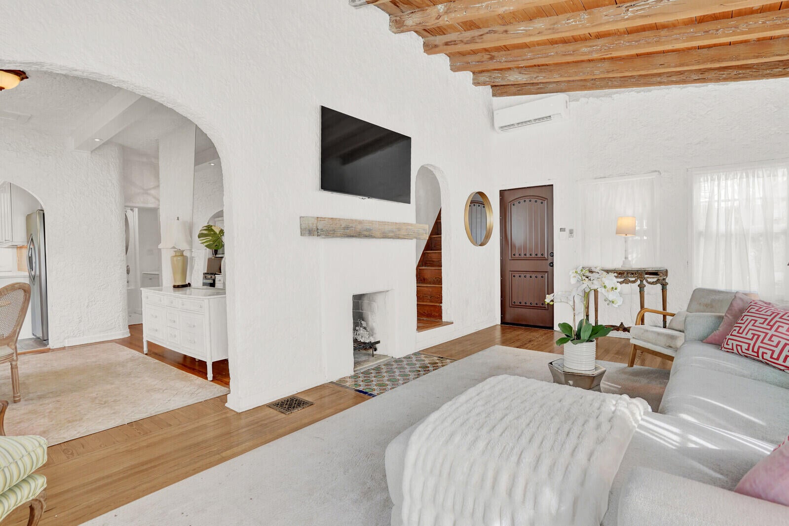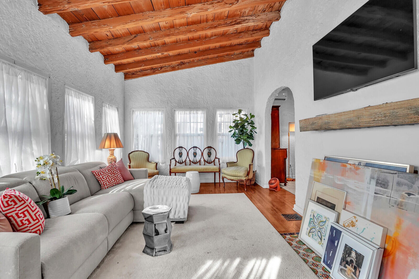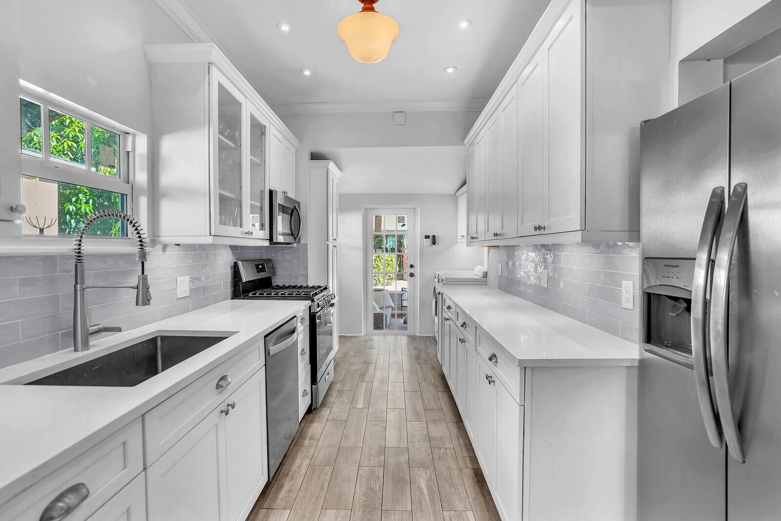Experience timeless elegance in this impeccably renovated Spanish Mission-style residence, ideally positioned in the coveted Old Historic Northwood neighborhood. This 3-bedroom, 2-bath architectural gem blends classic character with modern sophistication, just moments from the Northwood Clubhouse and the vibrant energy of the newly opened Nora District.A grand entry welcomes you with rich Miami-Dade pine flooring, artisanal ceramic tile, and sightlines that flow seamlessly to the home's resort-inspired outdoor living spaces. The crisp, white designer kitchen boasts state-of-the-art stainless steel appliances, refined lighting, and direct access to an expansive screened patio overlooking a private pool and lush garden oasis--perfect for alfresco dining and serene relaxation.The voluminous living room showcases soaring 12-foot Pecky Cypress ceilings, a charming fireplace, and sun-drenched windows that highlight the home's architectural detail and warmth. A separate one-bedroom, one-bath loft offers exceptional flexibility ideal as a private office, guest suite, or creative retreat and includes a lovely Juliet balcony. Additional conveniences include a dedicated laundry room and a carport. Recent enhancements full impact windows and doors, redesigned backyard, upgraded pool, and refreshed landscaping further elevate the property's luxurious appeal. All within walking distance to gourmet dining, boutique shops, and entertainment, with effortless access to I-95, Downtown West Palm Beach, Palm Beach Island (under 3 miles), and PBI Airport (under 20 minutes). A rare opportunity to own a chic, turn-key sanctuary in one of West Palm Beach's most sought-after historic neighborhoods.
