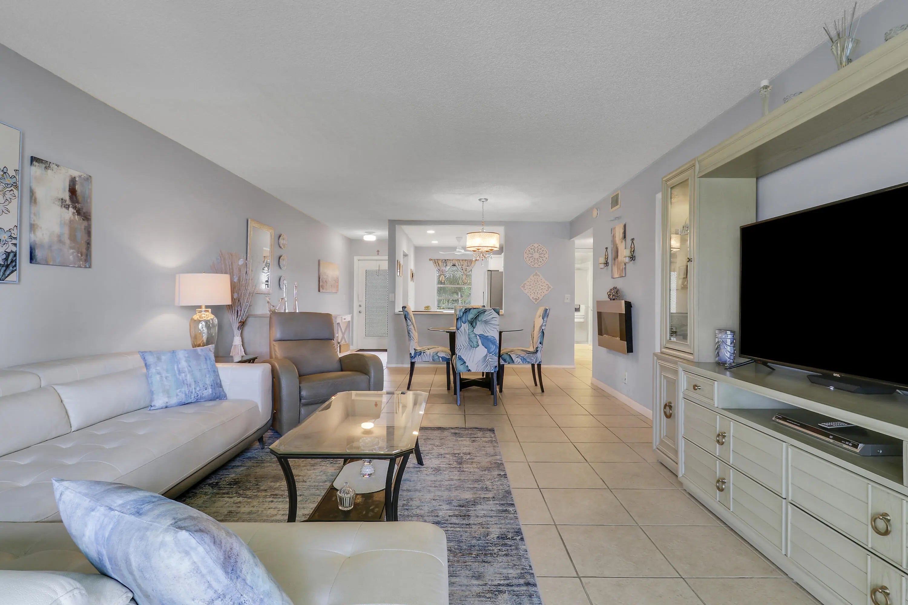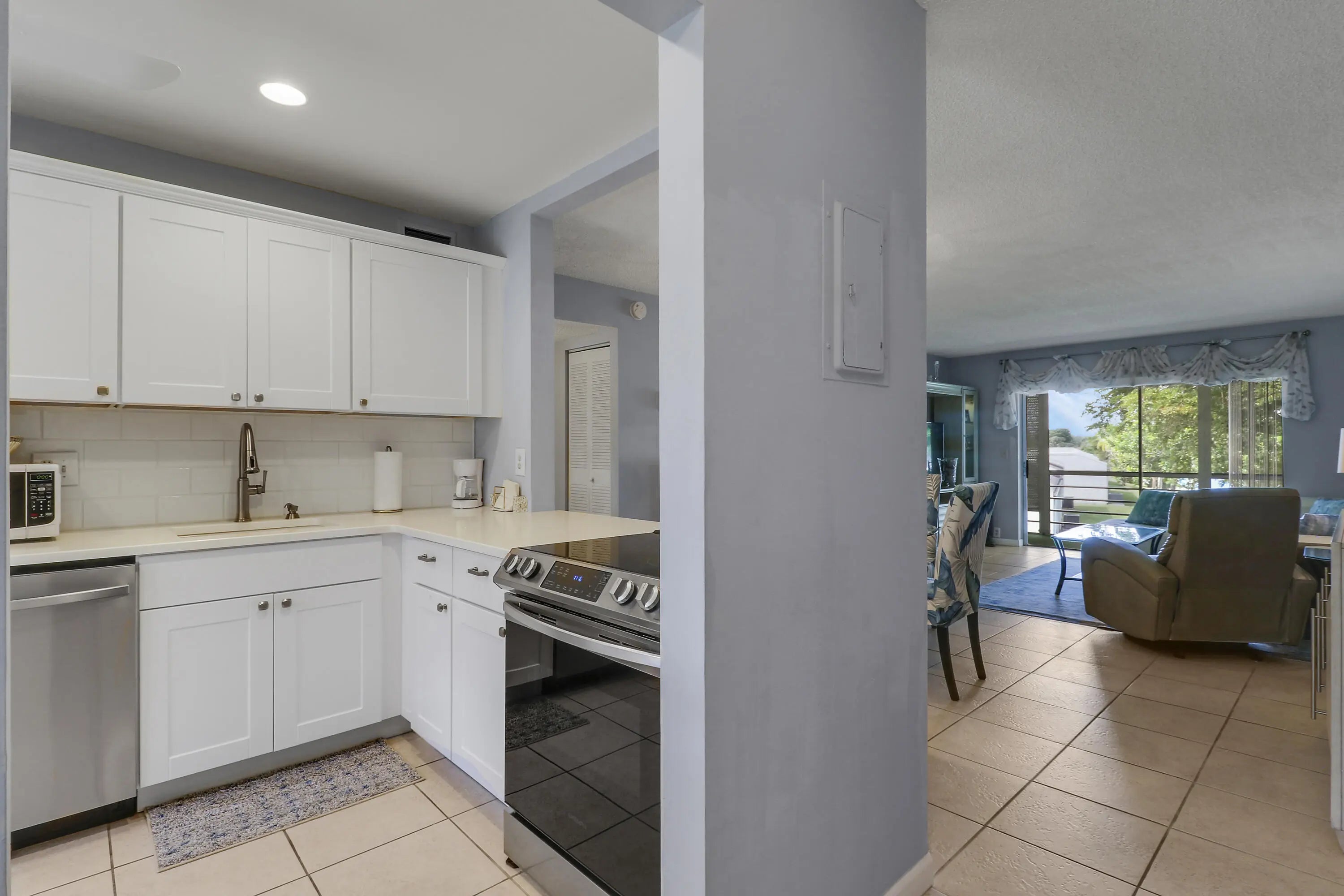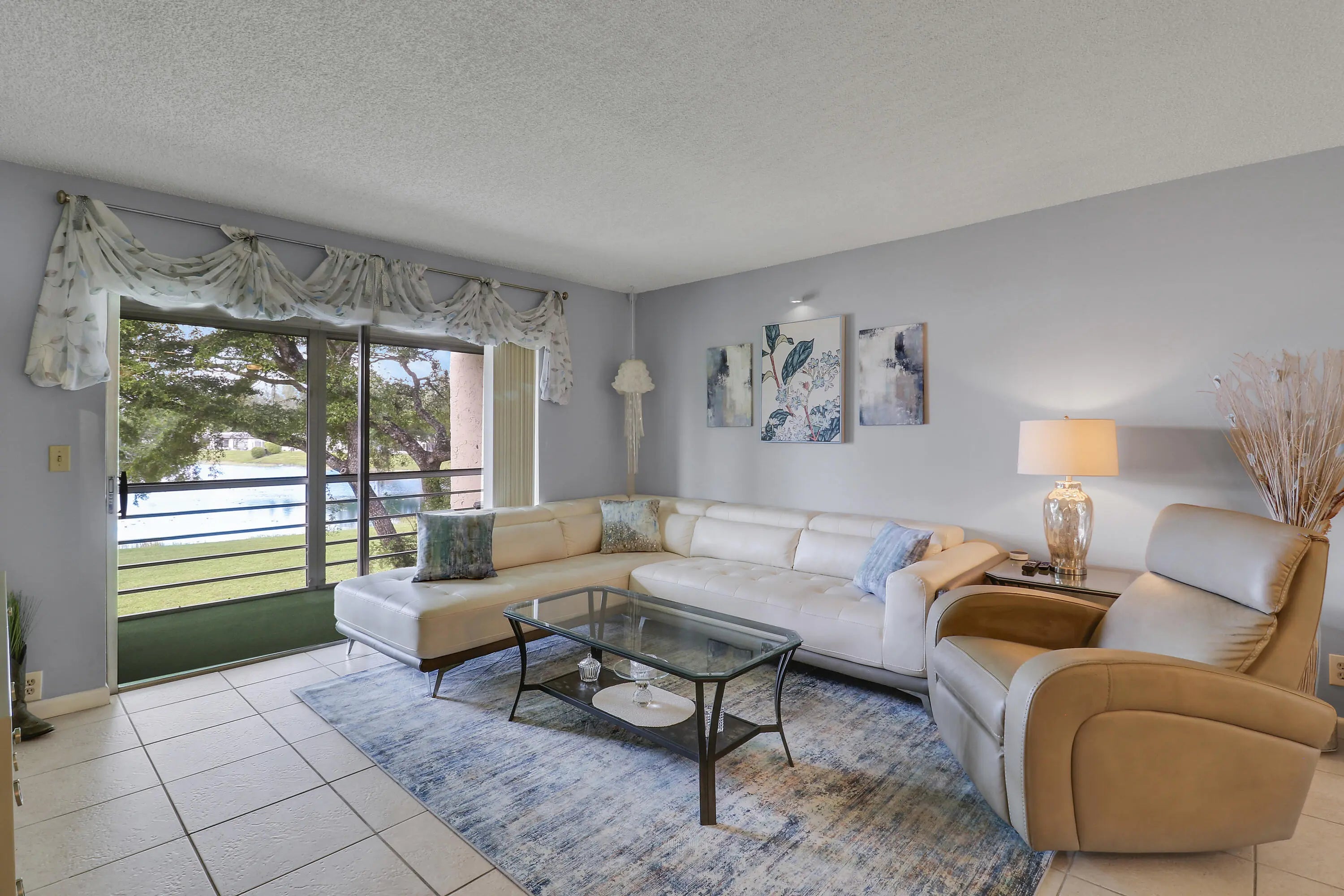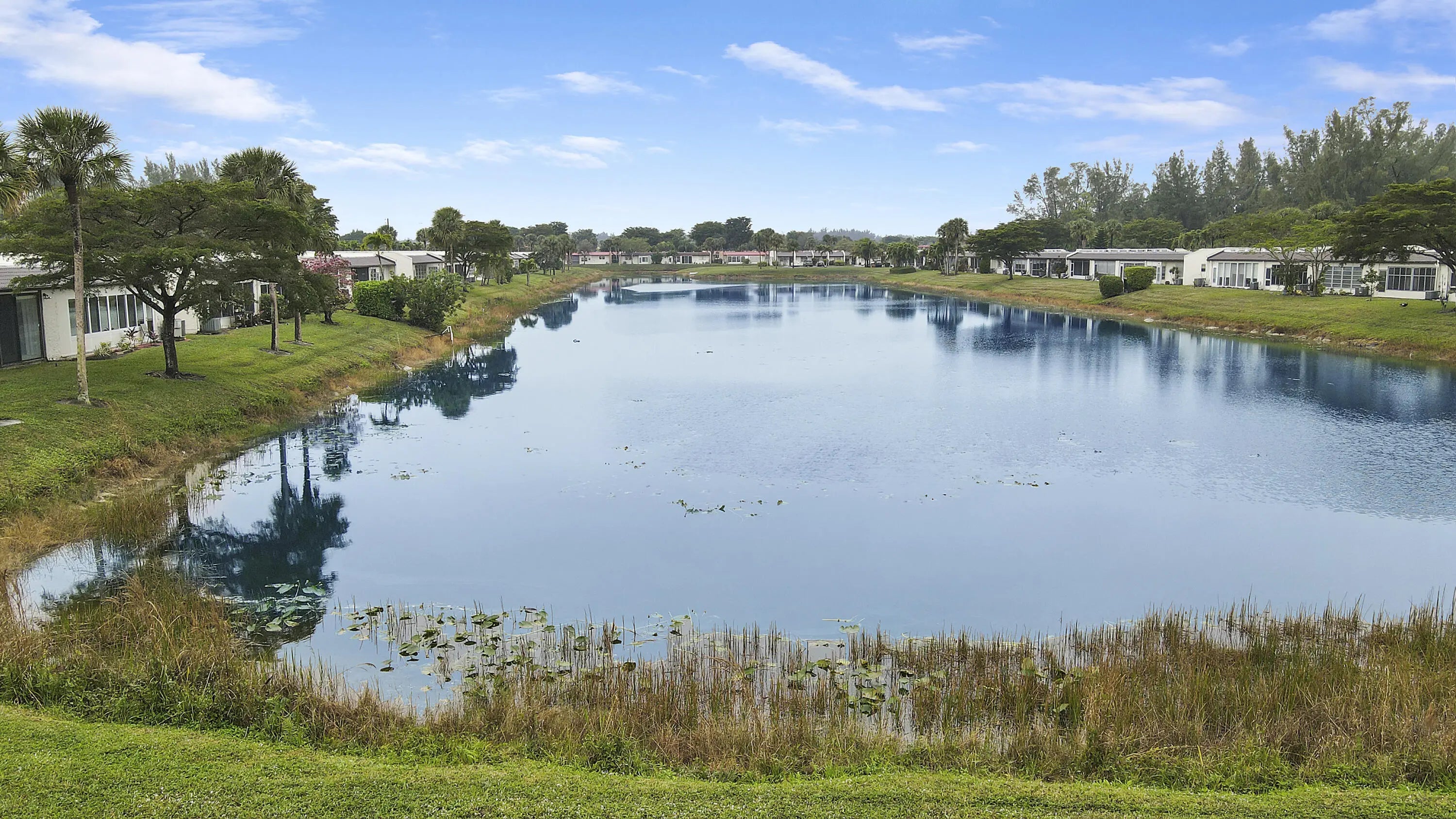 Tranquility awaits you. Step inside this beautifully updated condo where serene water views, well appointed upgrades and light, bright living spaces create the perfect retreat. This spacious 2br/2ba unit with its newly updated kitchen featuring quartz counter tops and stainless steel appliances offers truly easy living. The location is perfect as its nestled in the back of the desirable 55+ gated community of Golden Lakes Village where you can spend your days enjoying the peaceful water views on your expansive lanai after partaking in any of the endless list of amenities and activities this community offers. Golden Lakes Village is minutes from Palm Beach International Airport, world class shopping, entertainment and first class medical facilities.