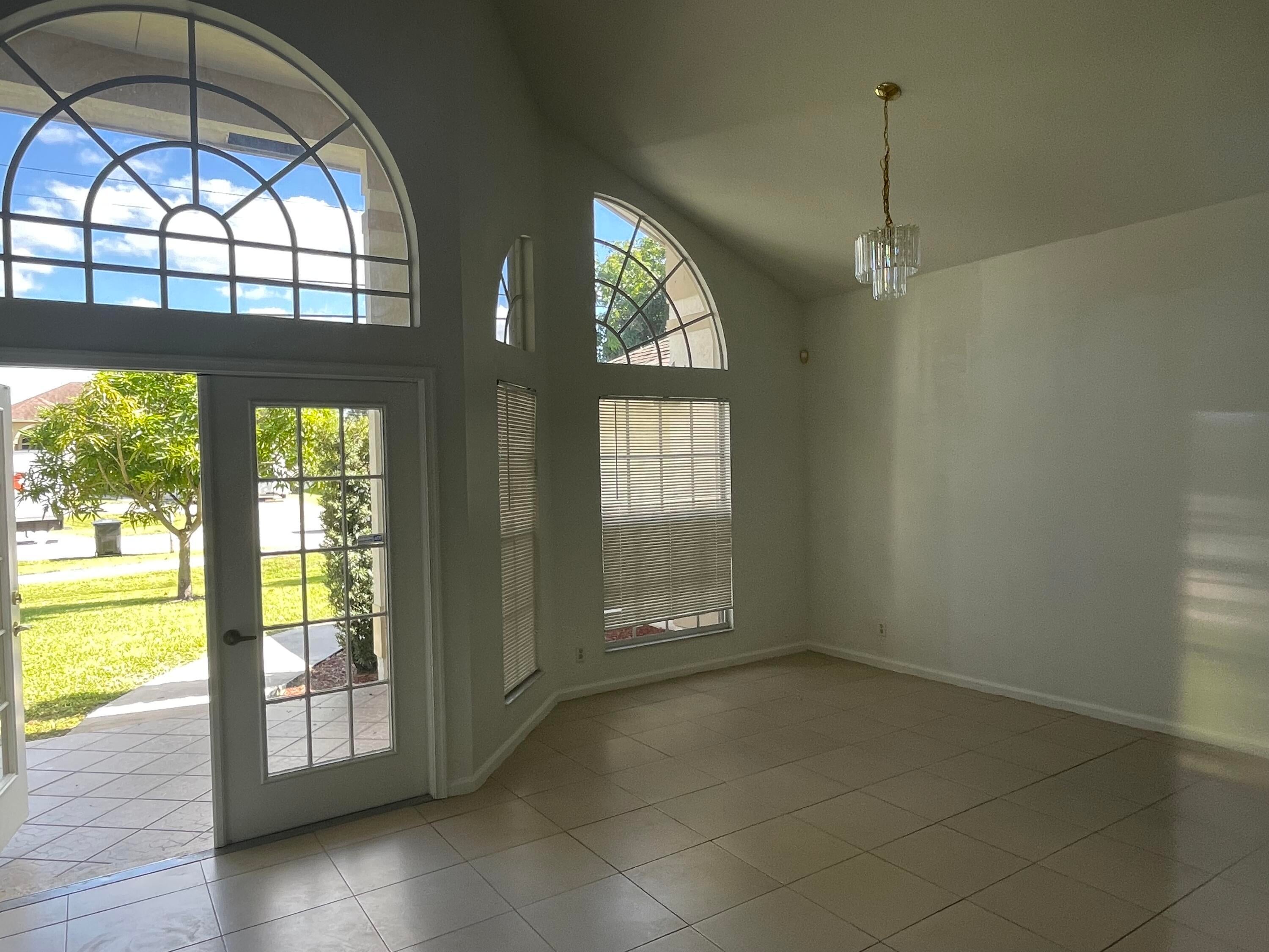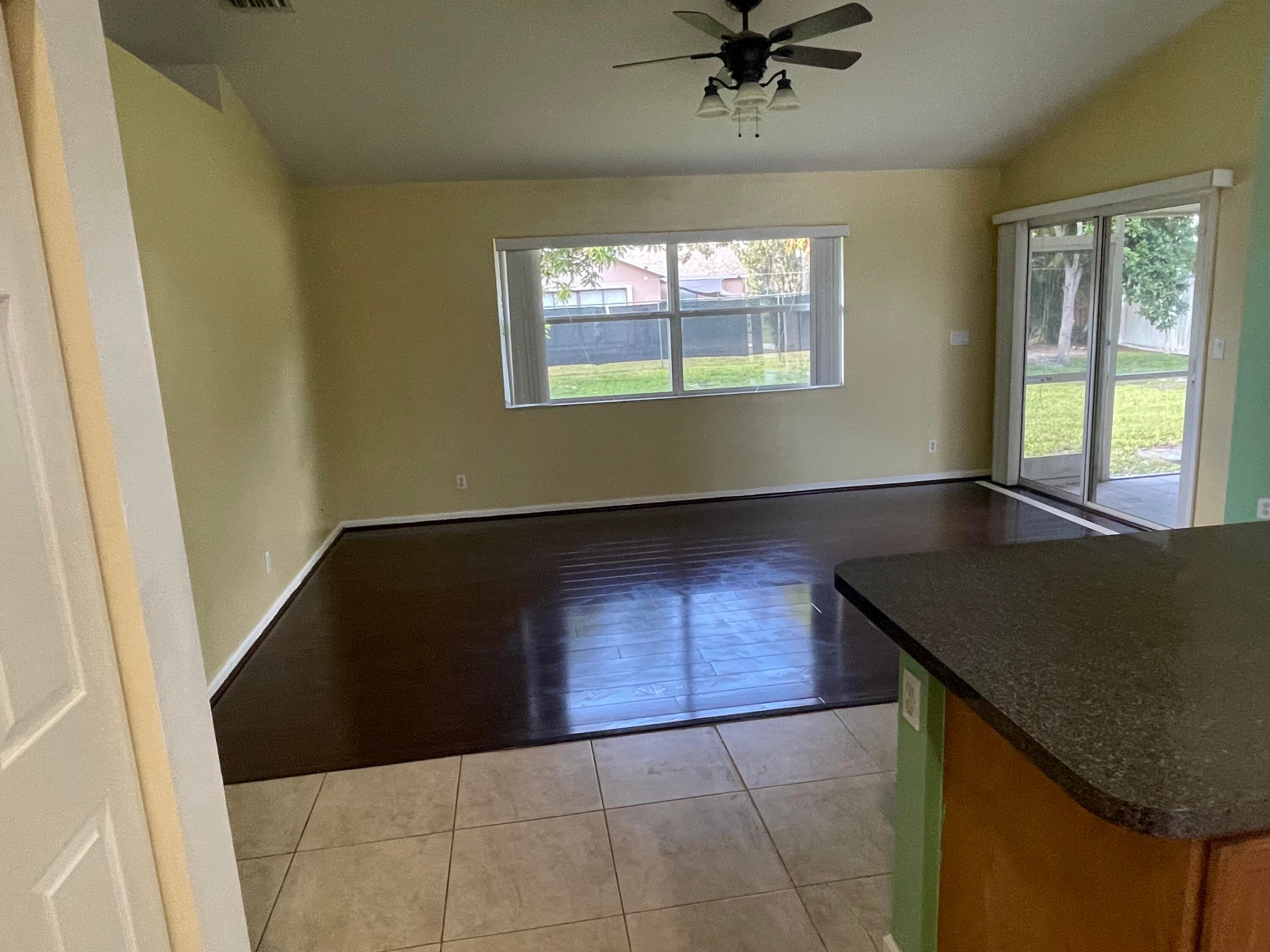 Spacious 3 bedrooms with the den that could be an office or 4th bedroom, 2 bathrooms, 2 car garage. Large kicthen area, family room, formal dining, living room, high ceilings. All tiles and wood floors, screened in back porch.