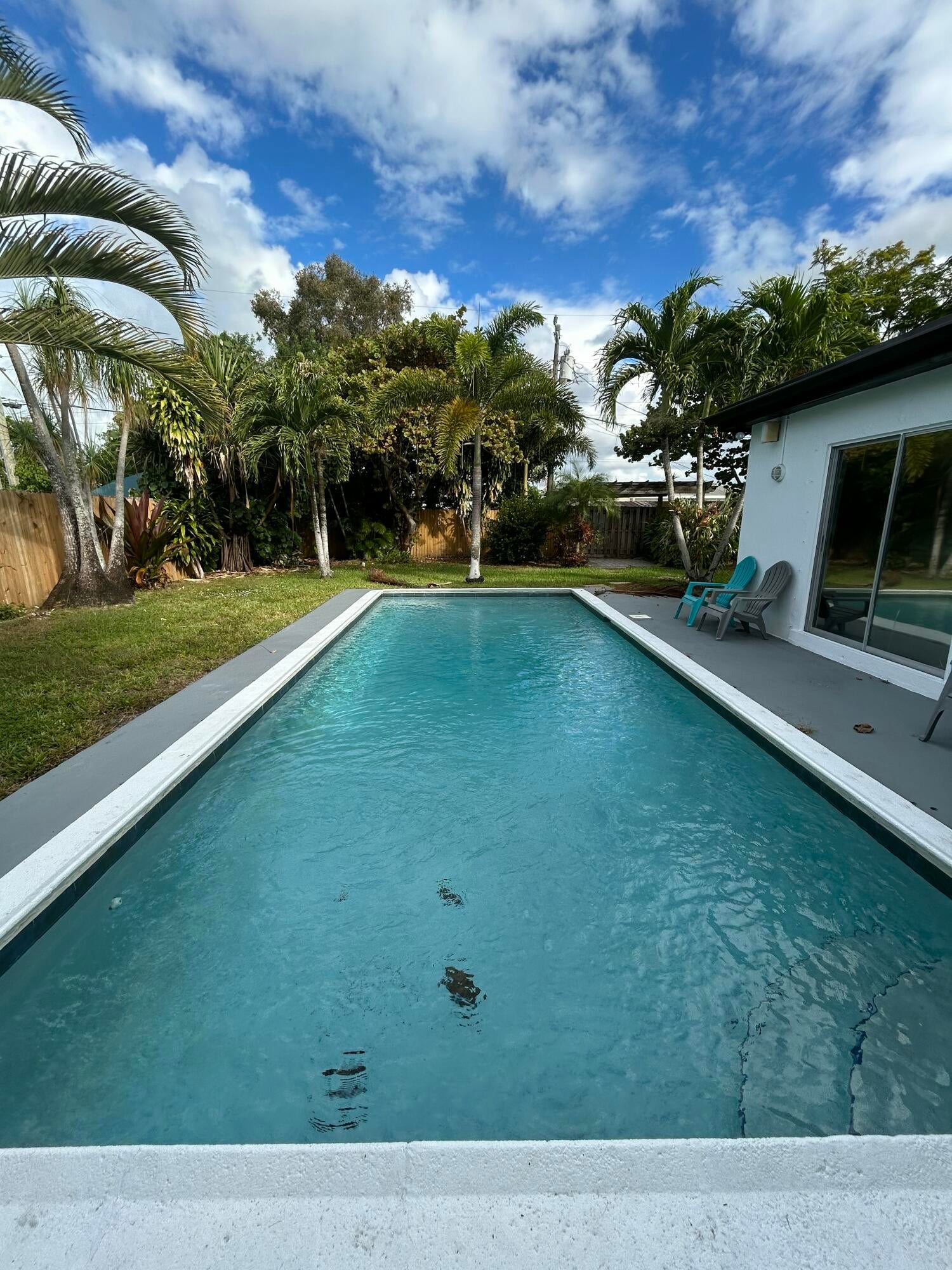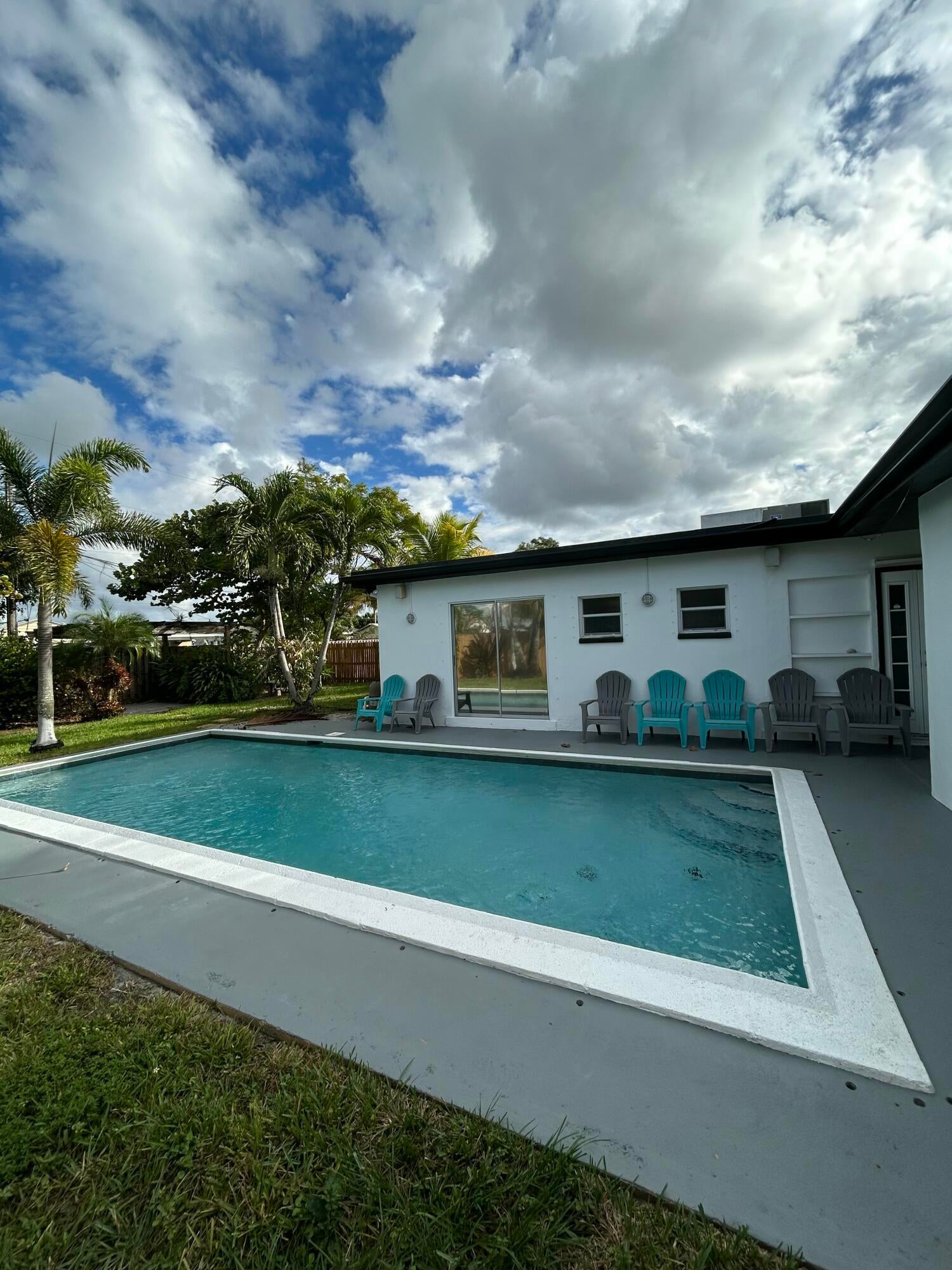 Discover this spacious 3-bed, 2-bath remodeled home featuring a 1-car garage with a small office, perfect for remote work or extra storage. Ideally located near Wellington, West Palm Beach, shopping, dining, the airport, and beaches, this home offers unmatched convenience with NO HOA.Enjoy a beautifully updated kitchen with stainless steel appliances, granite countertops, gas stove, and ample cabinet space. The home features tile flooring throughout, providing a clean and modern feel. Step outside to your private backyard oasis--complete with a sparkling pool, new pavers, trellis, and pergola, offering the perfect setting for outdoor dining, gatherings, and relaxation. The yard is fully fenced and spacious, with plenty of parking available. Pool service and landscaping included in rent.