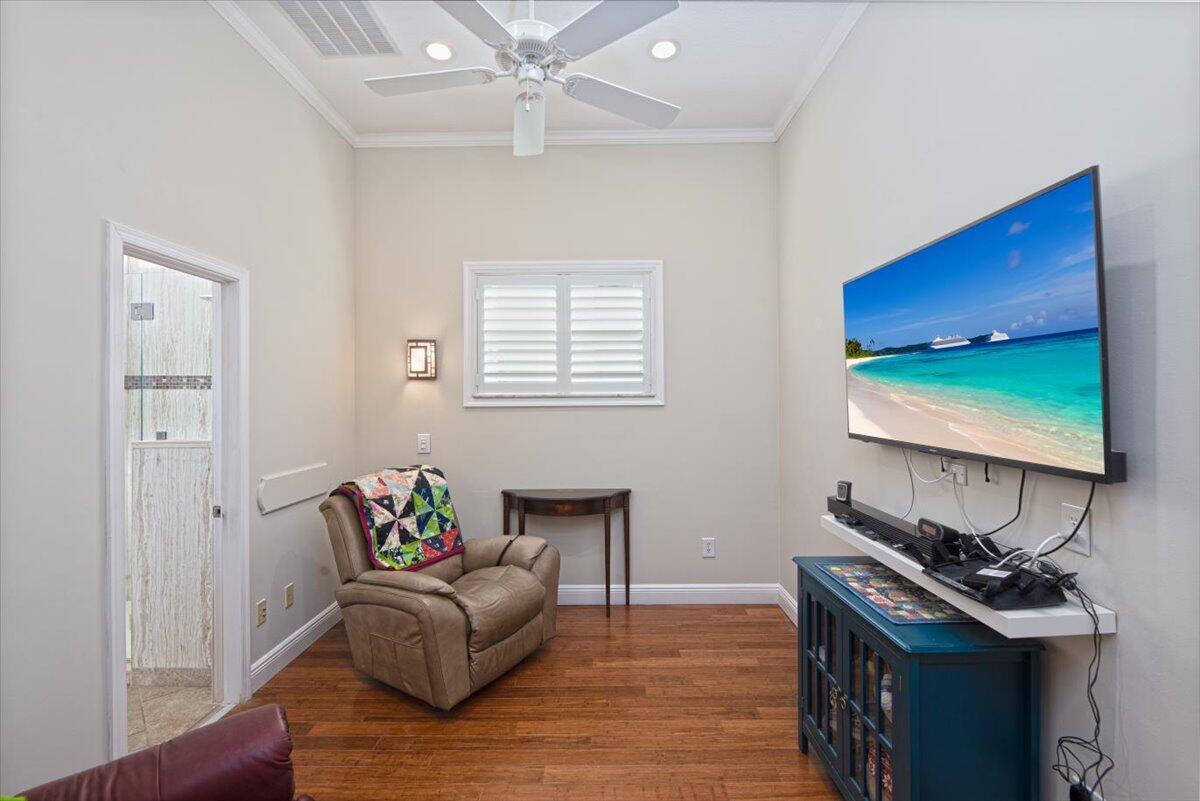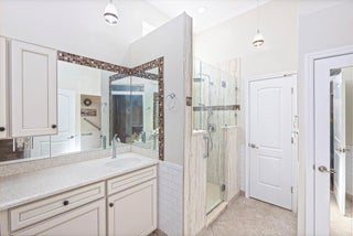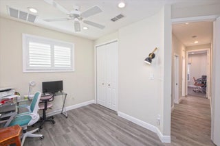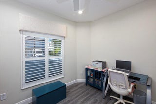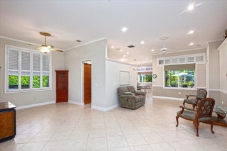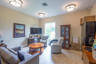 Stunning CBS 3 bed/2bath + DEN lakefront home in TownPark at Tradition. Step through the covered and screened entryway into double front doors to find yourself greeted with ceramic tile flooring throughout the main living areas and a spacious great room with crown molding. The versatile kitchen was built for function/flexibility, and features granite countertops w/ a custom Italian tiled backsplash, custom wood cabinetry with copious storage space, and a breakfast bar/nook for easy dining. The master suite features voluminous ceilings, two walk- in closets, lakefront views, and an ensuite bath complete with dual sinks and a separate walk in shower. The covered and screened lanai features views of an expansive and serene lake. Fenced in yard and impact window/accordion hurricane shutters.Located in the gated community of TownPark at Tradition, residents enjoy a resort-style lifestyle with world-class amenities including a luxurious clubhouse, state-of-the-art fitness center, resort-style pool, tennis, basketball and pickleball courts, and a vibrant calendar of community activities. The HOA fee includes cable, high-speed internet, landline phone, alarm monitoring, and manned gate security providing both convenience and peace of mind. Just a short walk to Tradition Square's charming dining, boutique shopping, and year-round events, and only minutes from I-95 and Cleveland Clinic, this home offers the perfect blend of convenience, and lifestyle.