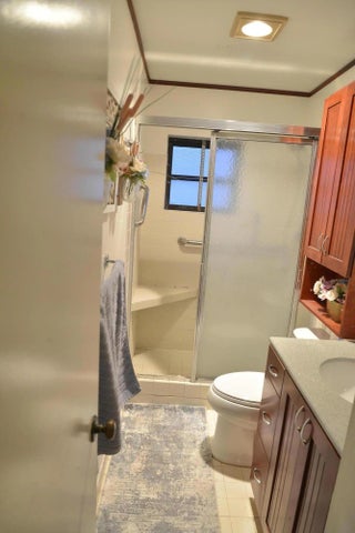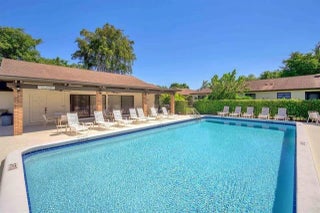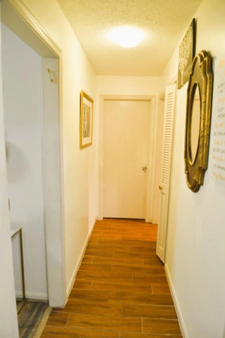PRICED TO SELL - Villa with custom features ready for your designer touches! . Hurricane shutters. Master bedroom updated with customized walk-in closet with built-in shelves and custom office area with custom cabinets. Both bathrooms renovated with new vanities, cabinetry, lighting, toilets. Porch area now finished indoor area with raised floor expanding kitchen/dining area. Kitchen has newer appliances, custom wood cabinets, and wood look tile throughout kitchen/dining. Cabinets can be painted. Wood tile/laminate-hallway/bedrooms, Custom blinds, built-in buffet w/granite countertops.