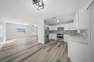 Come see this 3/2/2 beautifully renovated screen enclosure pool home in an outstanding location! Home is situated in a quiet and quaint neighborhood - just minutes away from the Turnpike, I-95 and Tradition. This house comes with a brand new 2025 roof - just replaced, brand new white shaker kitchen cabinets, new quartz countertops and backsplash, newer stainless steel appliances, all new water fixtures, switches/outlets, ceiling fans/lighting fixtures and much more...! It also comes with brand new vanities, gorgeous tile in the bathrooms, brand new luxury vinyl planks and elegant baseboards throughout the whole house. It features an accent wall with a gorgeous interior WPC wall panel to decorate some of the living spaces in the house.It's been freshly painted inside/out; including epoxy paint in the driveway and back patio. This place comes completely fenced and has a great size shed to accommodate your tools/toys . Enjoy Florida sunshine with the amazing pool this home brings! All you need is your bathing suit for your pool party as the pool is super spacious to accommodate lots of people in. Come see this cute home today, as it's been priced to sell quickly! *Buyer's agent needs to corroborate all the information provided in this listing*