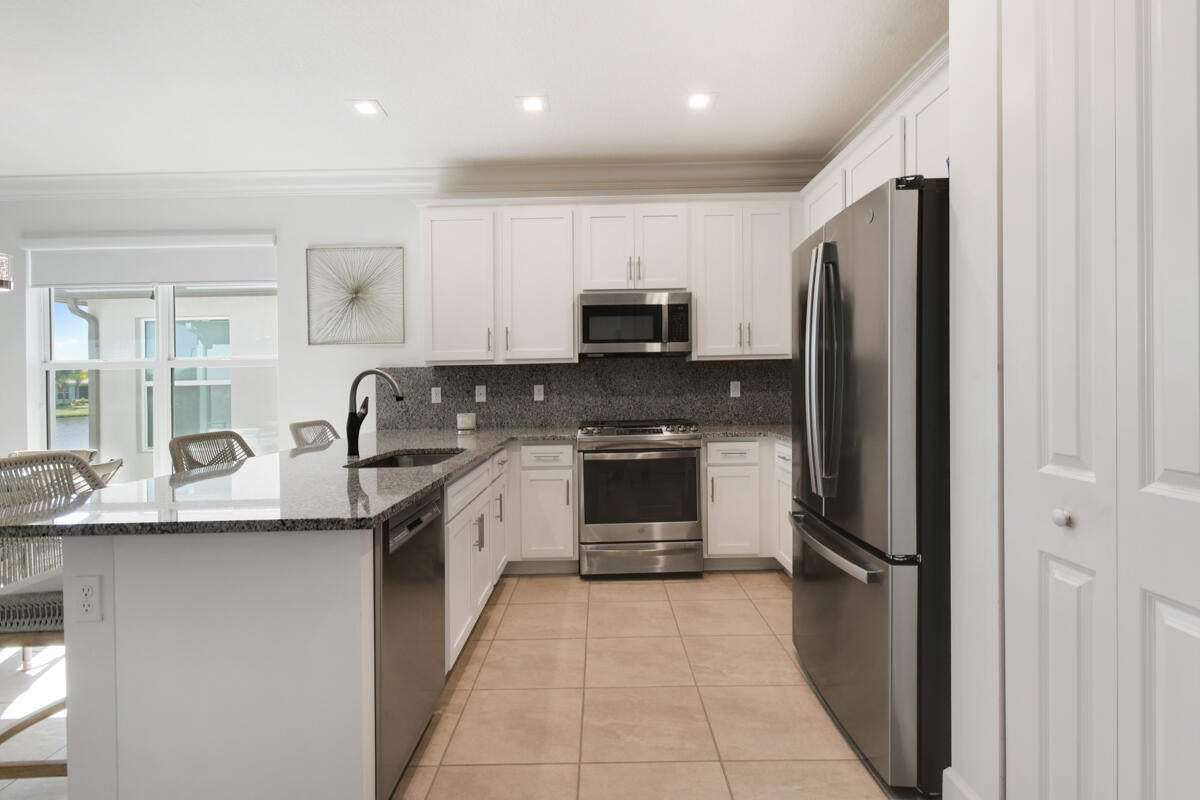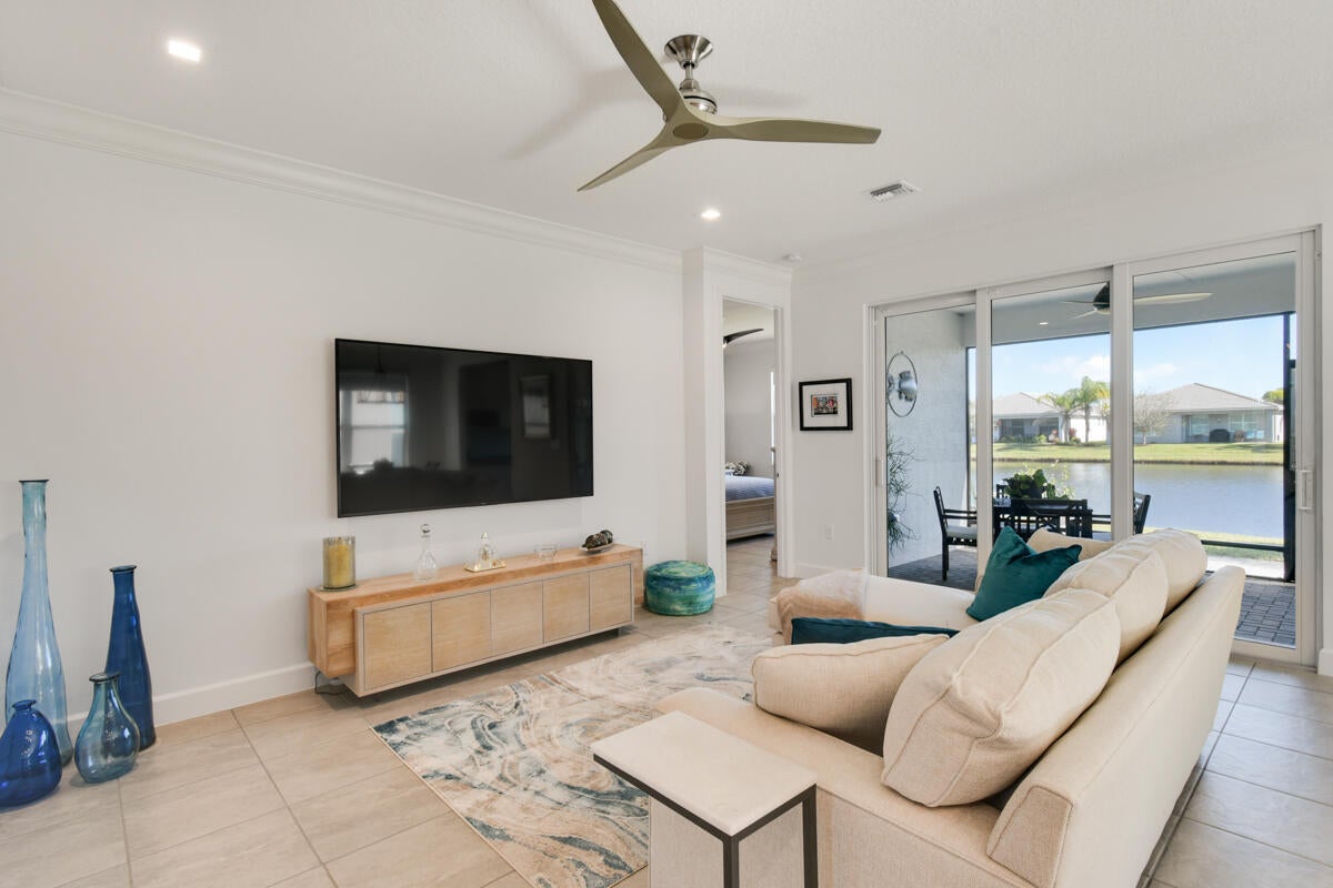 LOVELY WATERFRONT GEM in Riverland! This back patio east-facing home offers a serene water view & boasts luxury upgrades: crown molding, tankless water heater, whole-house surge suppressor, custom built-in closets, modern square Hi-Hat lights, AC blue light air purifier, & soft-close cabinetry. The kitchen features upgraded appliances & a Bosch dishwasher. Enjoy Riverland's amazing amenities: A 2-lane scenic Paseo for walking, golf carts/bikes; a 34,000 sq ft clubhouse w/ resort-style pool, restaurant, & live entertainment; a 24-acre fitness campus w/ state-of-the-art gym, 4 pools (3 outdoor/1 indoor); plus an arts and culture center for cooking, painting, or pottery! This home delivers the ultimate Florida lifestyle. See attached full list of upgrades.
