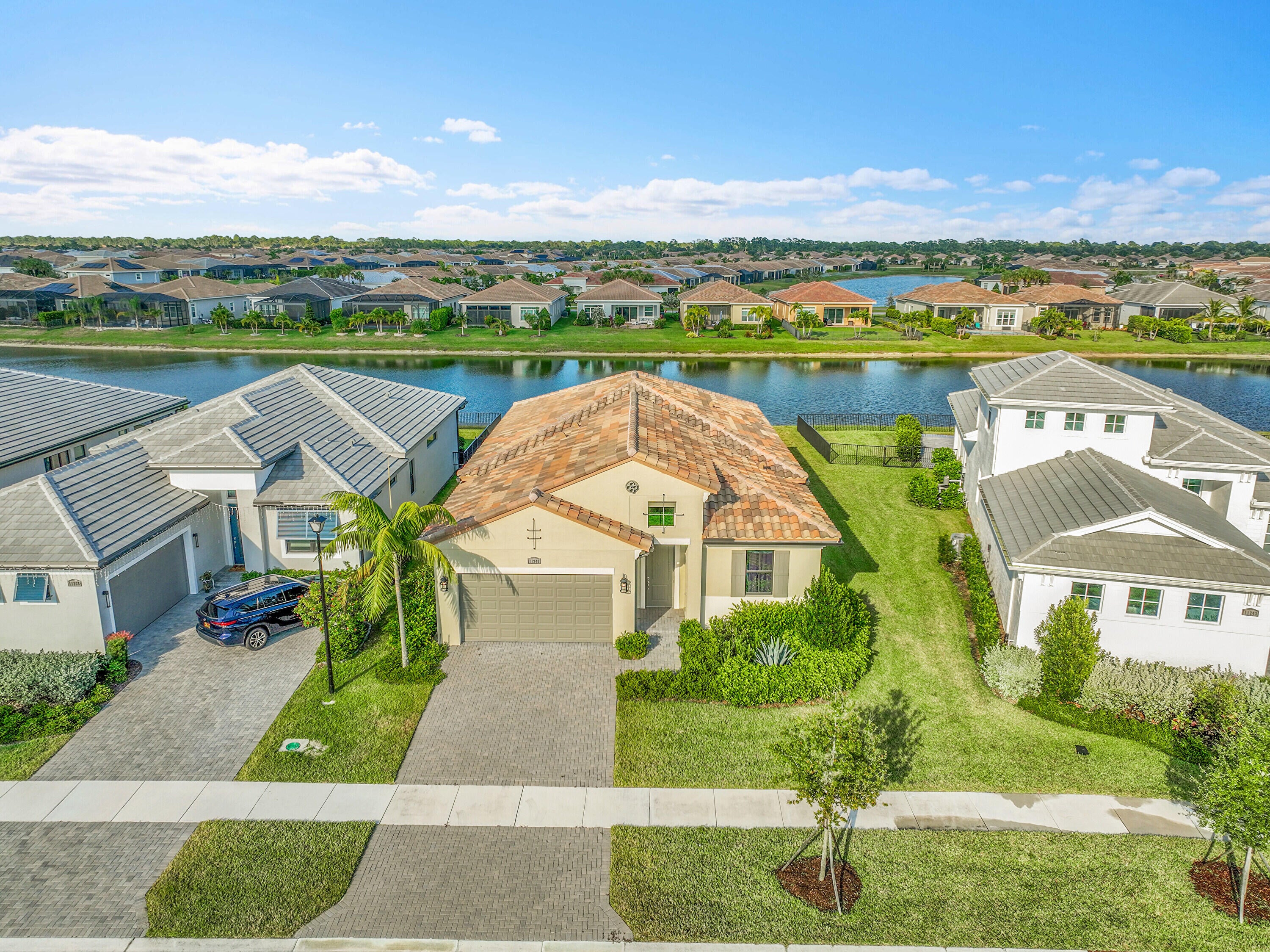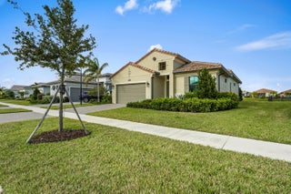 This 2024 CBS home in PGA Verano offers a split floor plan, premium upgrades and a move-in-ready lifestyle. Featuring 3BR/2BA, this bright and open layout includes impact glass, sleek tile flooring, quartz counters, stainless appliances, 16'x10' sliders, and a large kitchen island. The extended lot showcases long lake views, ideal for a future pool. Enjoy a spacious primary suite with spa-like bath and walk-in closet. Verano's resort-style amenities include indoor/outdoor pools, 27 pickleball courts, clubhouse, fitness, tennis, and more. HOA includes cable, internet, lawn care, and security.