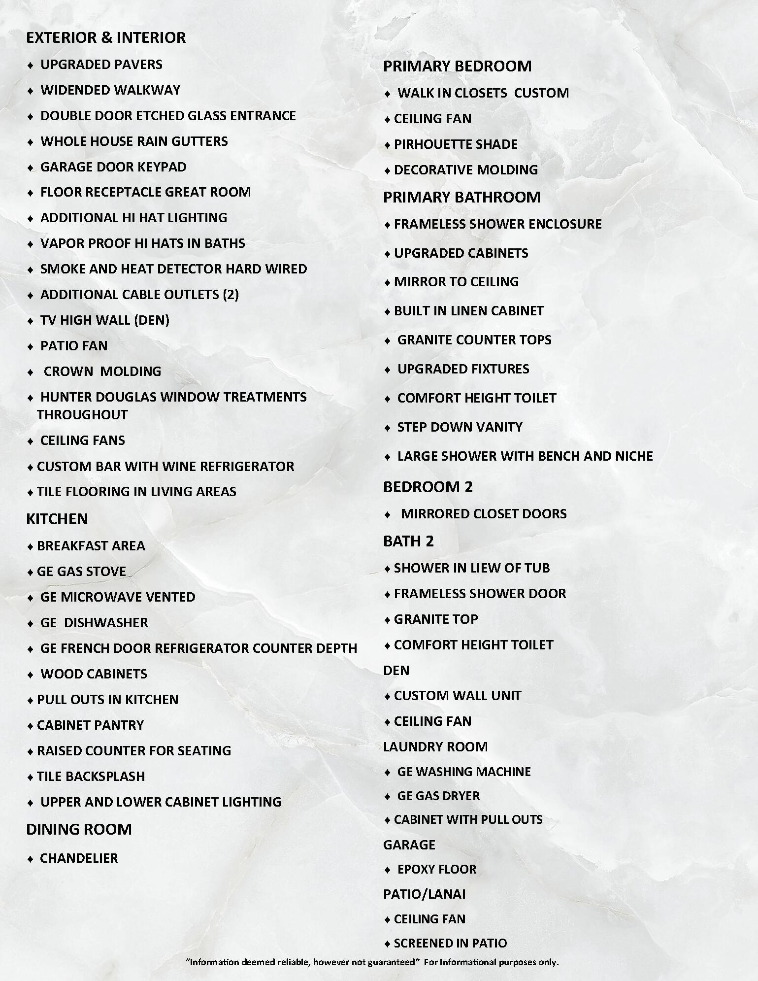 Auto Sprinkler, Covered Patio, Screened Patio, Zoned Sprinkler