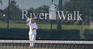 Welcome to this stunning villa that blends comfort and style with serene lake and bridge views. Featuring an open floor plan with vaulted ceilings, this home is perfect for entertaining or relaxing in your own private retreat. Highlights include-Spacious Great Room with custom wall unit and tile throughout the main living areas-Brand-new luxury plank vinyl flooring in both bedrooms-Principal suite with a large walk-in closet, en suite bath with double vanity, and walk-in shower-Guest bedroom with private bath, shower/tub combo, and walk-in closet-Lanai with sliding glass doors, creating a bright sunroom to enjoy year-round-Private backyard offering peace and privacy.The heart of this unique residential community is its waterfront Town Center where you can grab lunch or dinner at the on-site "Centanni" Italian restaurant; enjoy the tennis and pickle ball experience on the eight Har-tru lighted courts with on-site tennis instructor and active tennis program. Take a swim in one of the three heated pools, fish from one of the many picturesque bridges; stop by the library, play ping pong or pool. Also located in the Town Center is the full service Illustrated Properties real estate office, beauty salon, mail facility and children's playground. Enjoy 12 miles of scenic pedestrian pathways, take a bike ride or enjoy a vigorous work out in the renovated fitness center or play bocce - all for the exclusive use of River Walk residents! Yoga, mahjong, bridge, aqua aerobics, foreign language classes, crafts and more are some of the other fun activities offered! River Walk offers luxury resort-style living, without extravagant ''country club'' fees! Conveniently located near the turnpike, Palm Beach International Airport, the Outlet Malls, Kravis Center, Downtown, and Palm Beach Island.