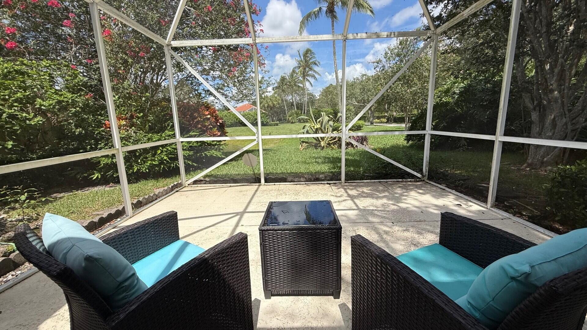 This Extended Capri floor plan has the unique situation of being located on a corner with a tremendous view of open green space! Extremely quiet and close to the park just north of Riverwalk Circle there is a peaceful view from every window! This home features the sought after 'expanded' air conditioned space off of the dining area. The kitchen opens to the Great Room with cathedral ceilings and dining area, perfect for entertaining. Luxury vinyl plank flooring is throughout the whole home. There is a screened patio overlooking the lake and lush landscaping, an ideal spot for early morning coffee or winding down with a glass of wine while watching the sun set. The principal bedroom has an en suite bathroom with walk in shower and double sinks, large walk in closet. The guest suite is located on the opposite end of the property from the principal bedroom and has a large walk in closet as well as a private bathroom. The laundry room has extra cabinet storage and a utility sink. The home also has a central vacuum and central alarm system. The heart of this unique residential community is its waterfront Town Center where you can grab lunch or dinner at the on-site "Centanni" Italian restaurant; enjoy the tennis and pickle ball experience on the eight Har-tru lighted courts with on-site tennis instructor and active tennis program. Take a swim in one of the three heated pools, fish from one of the many picturesque bridges; stop by the library, play ping pong or pool. Also located in the Town Center is the full service Illustrated Properties real estate office, beauty salon, mail facility and children's playground. Enjoy 12 miles of scenic pedestrian pathways, take a bike ride or enjoy a vigorous work out in the renovated fitness center or play bocce - all for the exclusive use of River Walk residents! Yoga, mahjong, bridge, aqua aerobics, foreign language classes, crafts and more are some of the other fun activities offered! River Walk offers luxury resort-style living, without extravagant ''country club'' fees! Conveniently located near the turnpike, Palm Beach International Airport, the Outlet Malls, Kravis Center, Downtown, and Palm Beach Island.