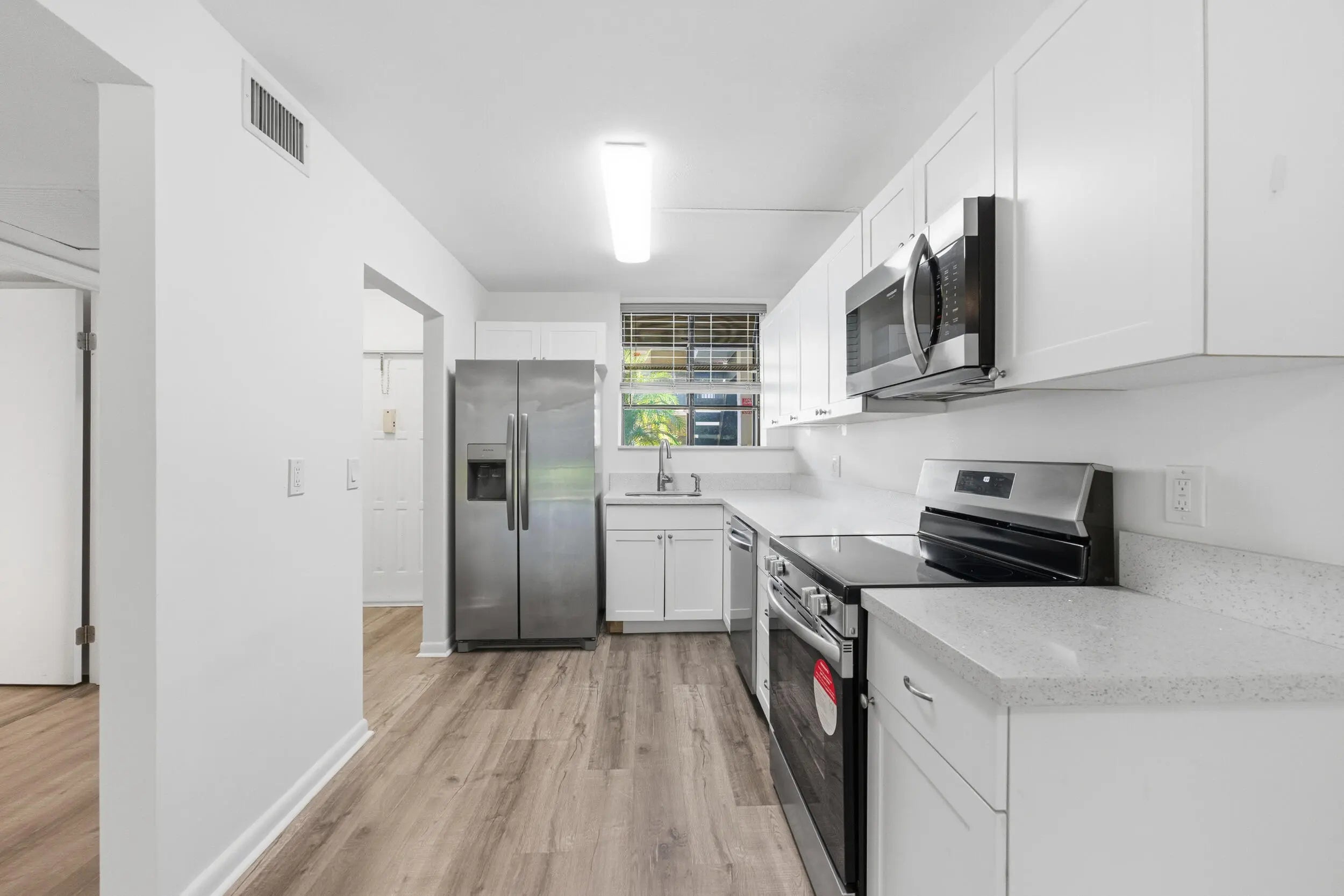 Welcome to 1250 S Military Trail #1612 in highly desirable community of Villas at Meadow Lakes in Deerfield Beach! This beautifully renovated first-floor condo is located within a gated, pet-friendly community with reserves and a low HOA. Enjoy an oversized, screened-in patio that opens to a spacious, park-like green area--ideal for pets, kids, or simply relaxing outdoors. Inside, you'll find a bright and modern layout featuring two large bedrooms, both with walk-in closets, as well as an in-unit washer and dryer. The kitchen includes a newer refrigerator (2024) and range (2025) for added convenience.