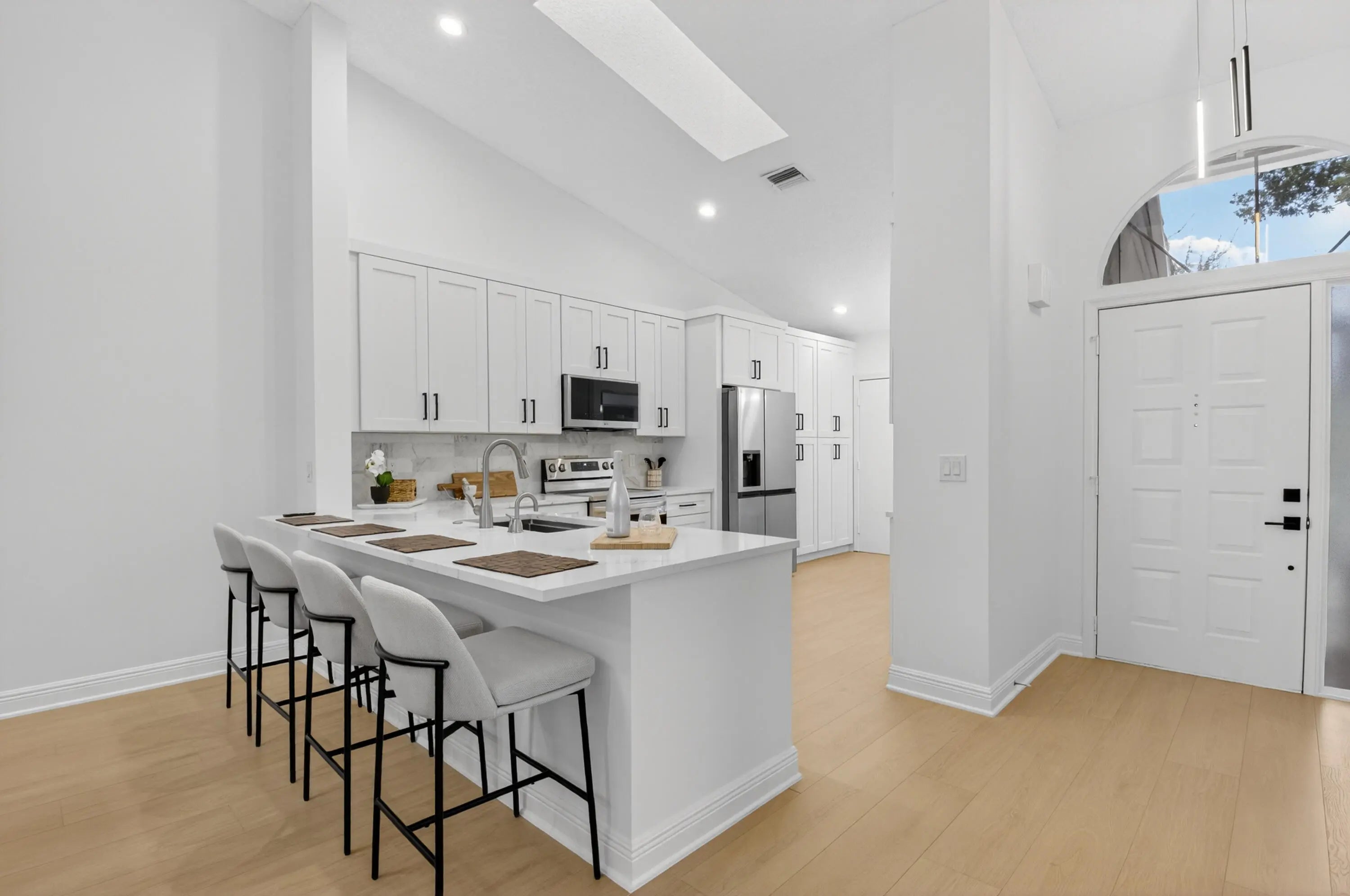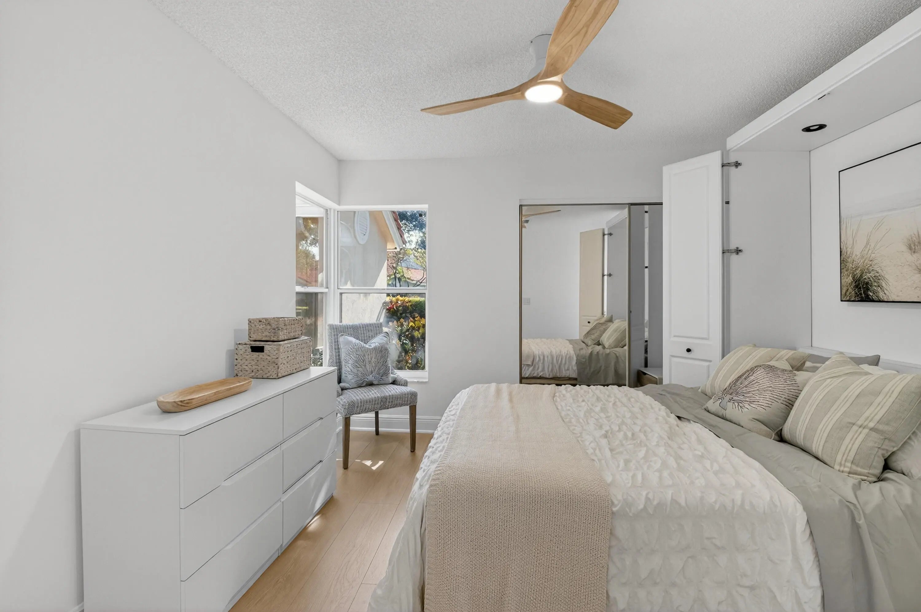 Spectacular 2 br Villa that has been professionally designed by ''Debra Lipset Designs''. No expenses have been spared in this fully renovated gem. Upgrades galore in every room. Beautiful lake views from your enclosed patio in the backyard. Come and live the country club lifestyle in Palm Isles without all the high dues . Community has tennis, pickleball, restaurant, fitness, 4 pools and much much more.