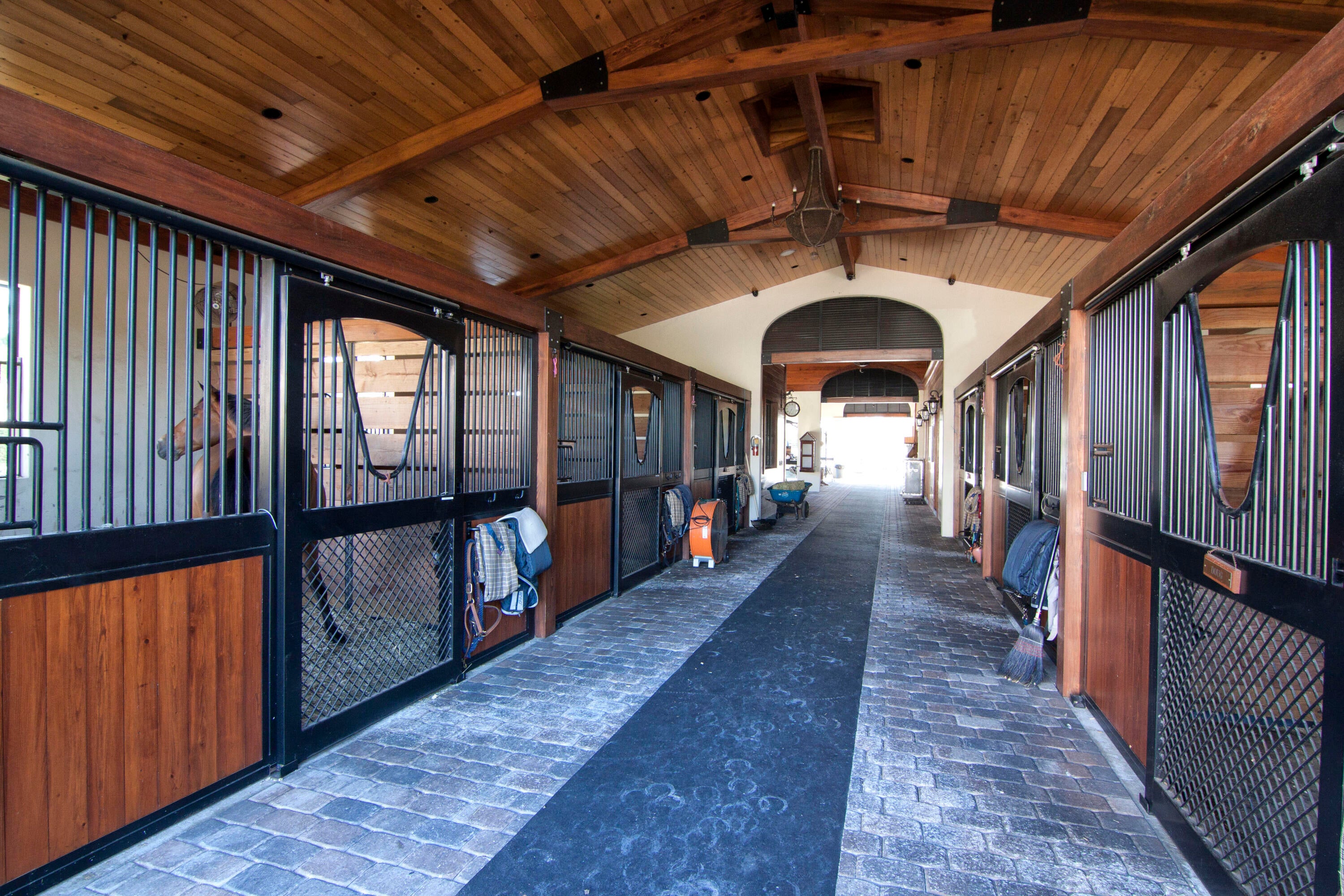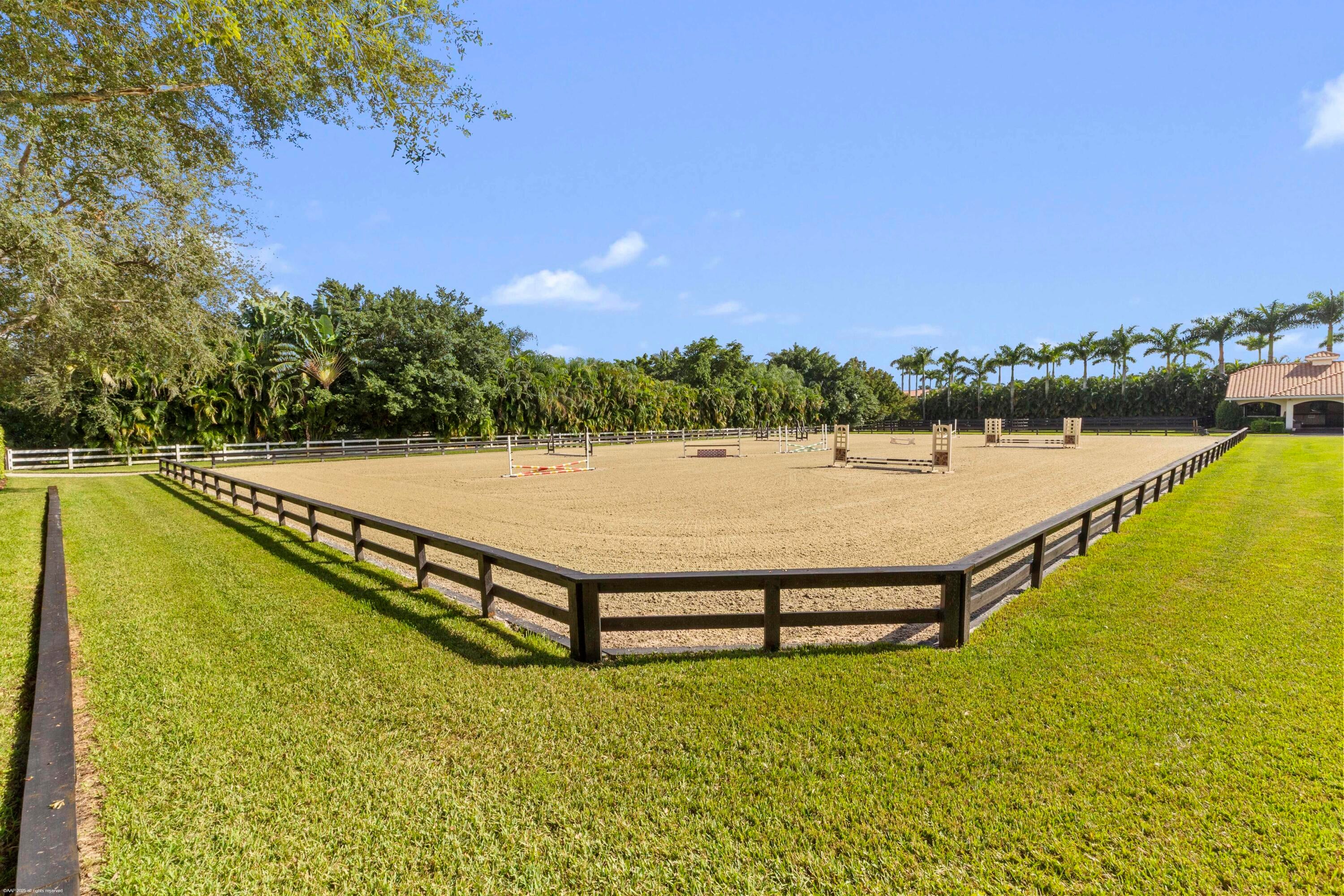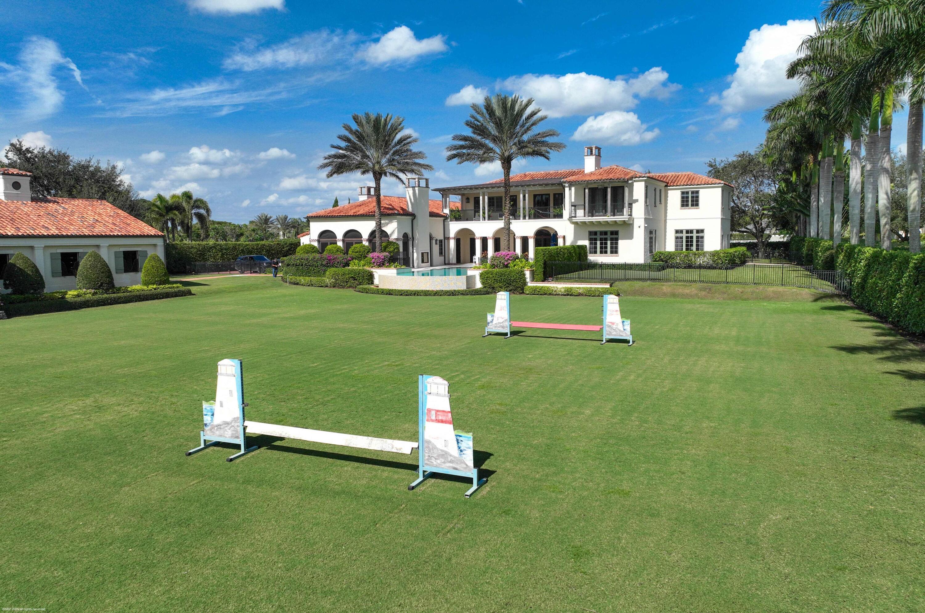 An exceptional Wellington Equestrian Estate just four properties from PBIEC, offering an unmatched location mere minutes walking to the show rings. This Palm Beach-style compound spans over 4 acres across two lots and includes an exquisite 5-bedroom plus office main residence with a guest apartment, two 8-stall barns, a 3-bedroom staff apartment, an oversized new riding arena, Grand Prix Field and 7 paddocks. A rare opportunity to own a top-tier equestrian estate steps from the horse show.Designed by architect Roger Janssen, the main home features elegant living and dining spaces, a billiards room, office, screened porch, butler's kitchen and well-appointed kitchen and family areas. Upstairs hosts the primary suite and three additional bedrooms. Premium finishes include cypress ceilings, custom cabinetry, hardwood flooring, a full-house generator, Infinity pool overlooking the field and much more.