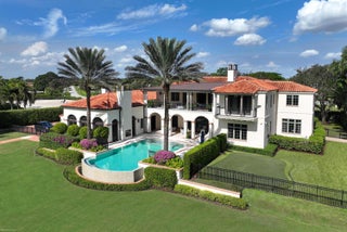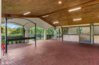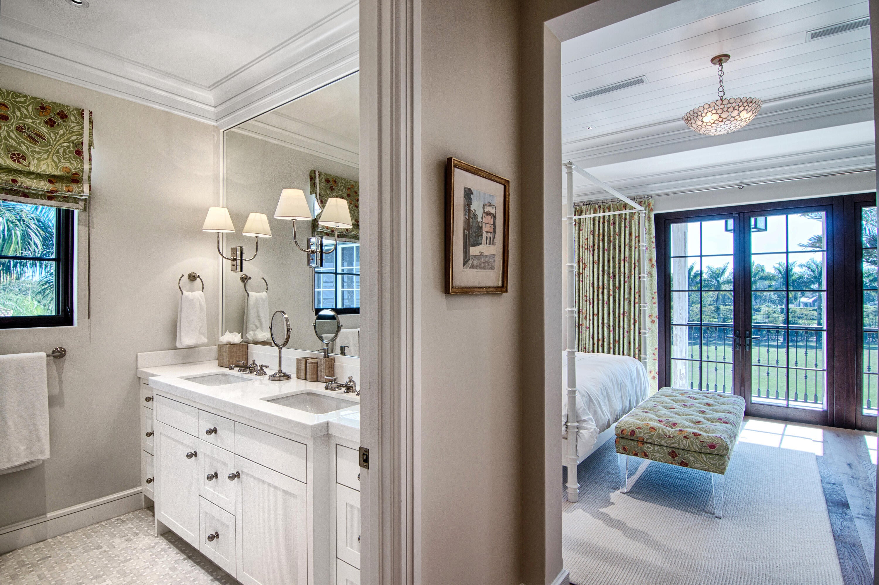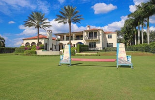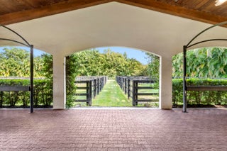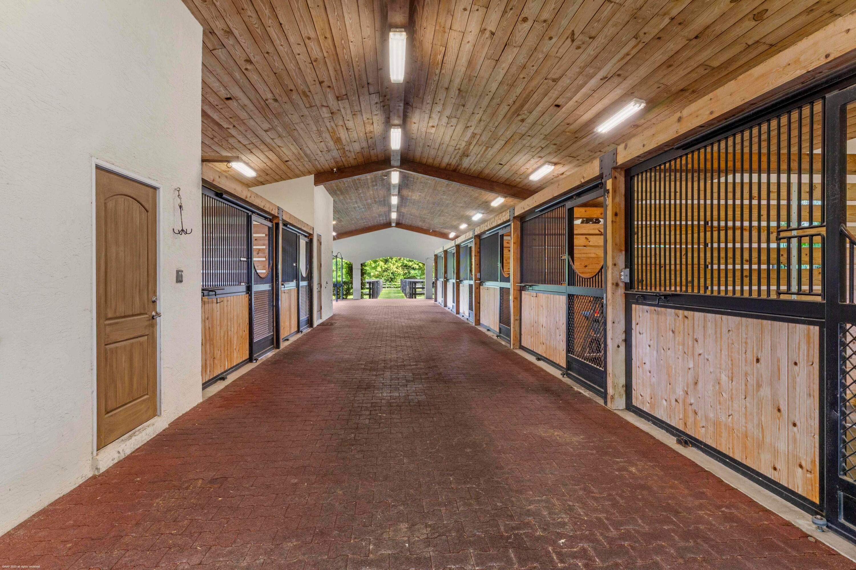 An exceptional Wellington Equestrian Estate just four properties from PBIEC, offering an unmatched location mere minutes walking to the show rings. This Palm Beach-style compound spans over 4 acres across two lots and includes an exquisite 5-bedroom plus office main residence with a guest apartment, two 8-stall barns, a 3-bedroom staff apartment, an oversized new riding arena, Grand Prix Field and 7 paddocks. A rare opportunity to own a top-tier equestrian estate steps from the horse show.Designed by architect Roger Janssen, the main home features elegant living and dining spaces, a billiards room, office, screened porch, butler's kitchen and well-appointed kitchen and family areas. Upstairs hosts the primary suite and three additional bedrooms. Premium finishes include cypress ceilings, custom cabinetry, hardwood flooring, a full-house generator, Infinity pool overlooking the field and much more.