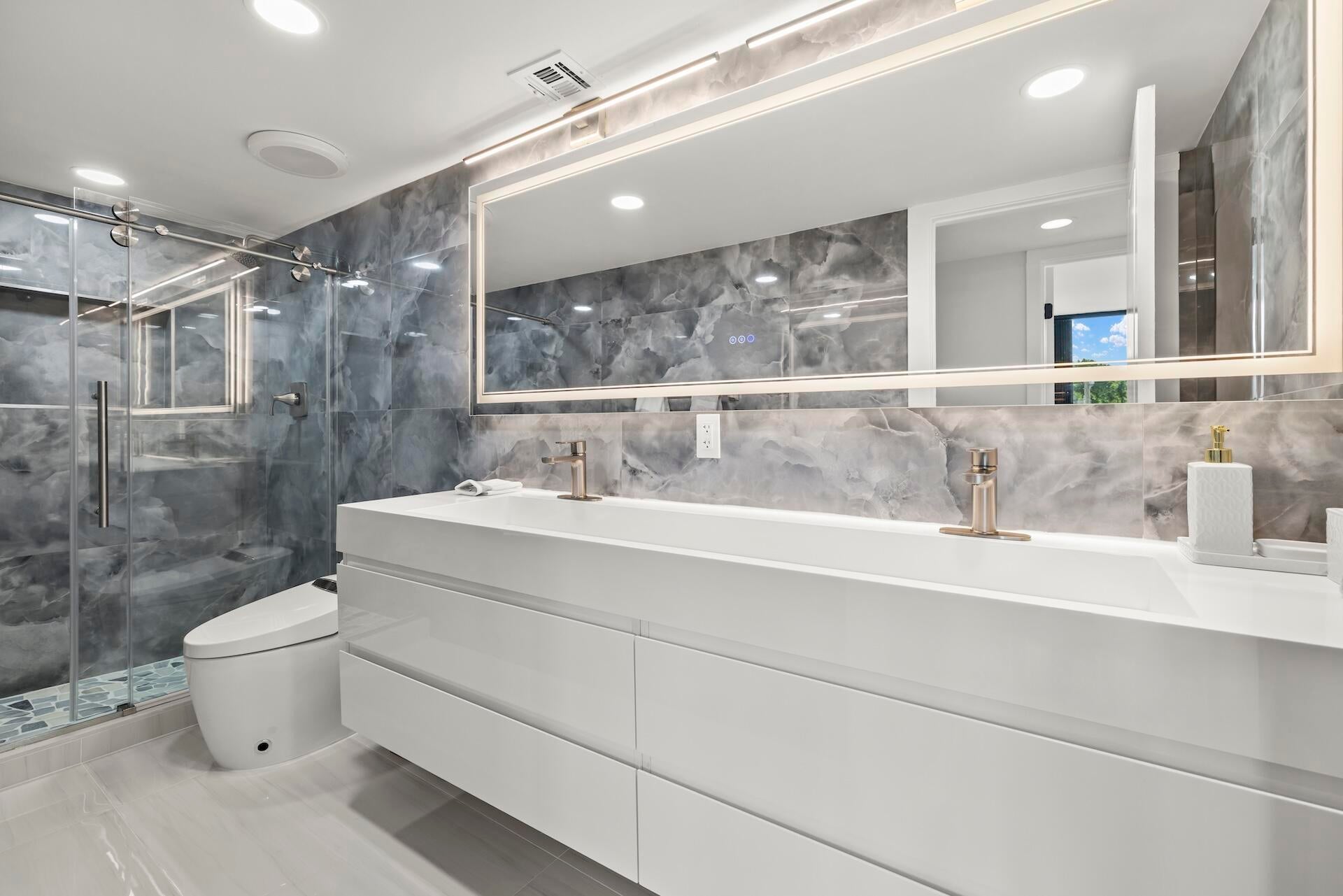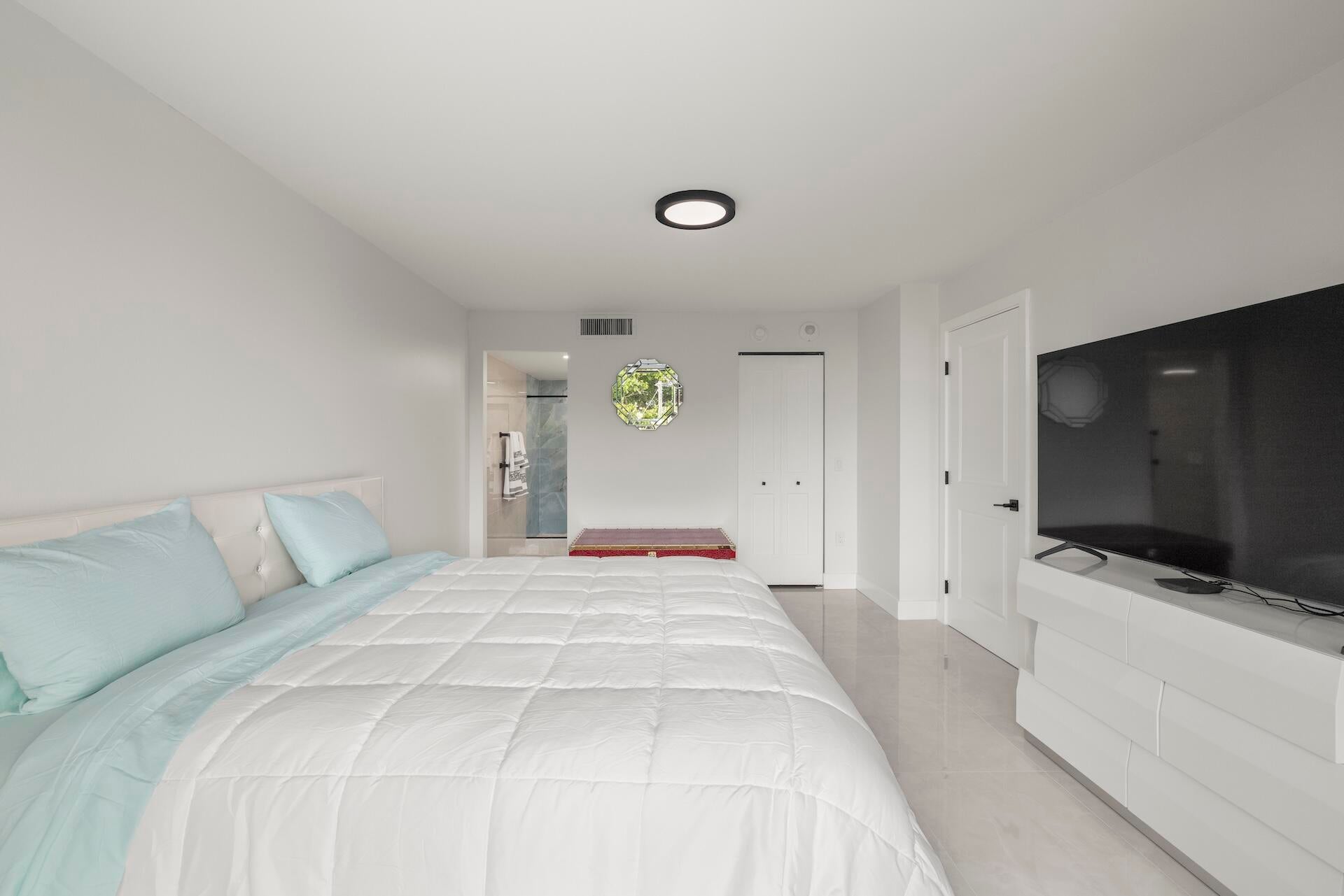 Beautifully renovated from floor to ceiling, this waterfront 3-bedroom, 2-bath condo blends modern luxury with effortless coastal living. The open layout includes a chef's kitchen with stainless steel appliances, sleek cabinetry, and a custom bar for entertaining, all complemented by contemporary finishes throughout. Enjoy resort-style amenities such as a private pool, private beach, and access to a dock with a marina in close proximity--ideal for boating and waterfront relaxation. The gated community offers 24/7 lobby staff for added security and convenience. Located just 15 minutes from Palm Beach International Airport and downtown West Palm Beach, this condo provides quick access to dining, shopping, and entertainment while delivering the tranquility of a serene waterfront setting.