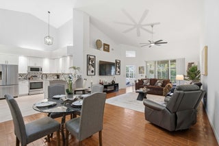 Charming 1-story townhome located in the gated community of Lake Charles in St. Lucie West. This home features 2 bedrooms, 2 bathrooms, a 2-car garage, vaulted ceilings, plantation shutters, and a bright open layout. The kitchen offers granite countertops, stainless steel appliances, and 42'' cabinets.Enjoy a private enclosed lanai, screened front patio, newer A/C, and extended paver area with garden views. Lake Charles provides a pool, tennis, pickleball, playground, and a full recreation center close to shopping, dining, and I-95.