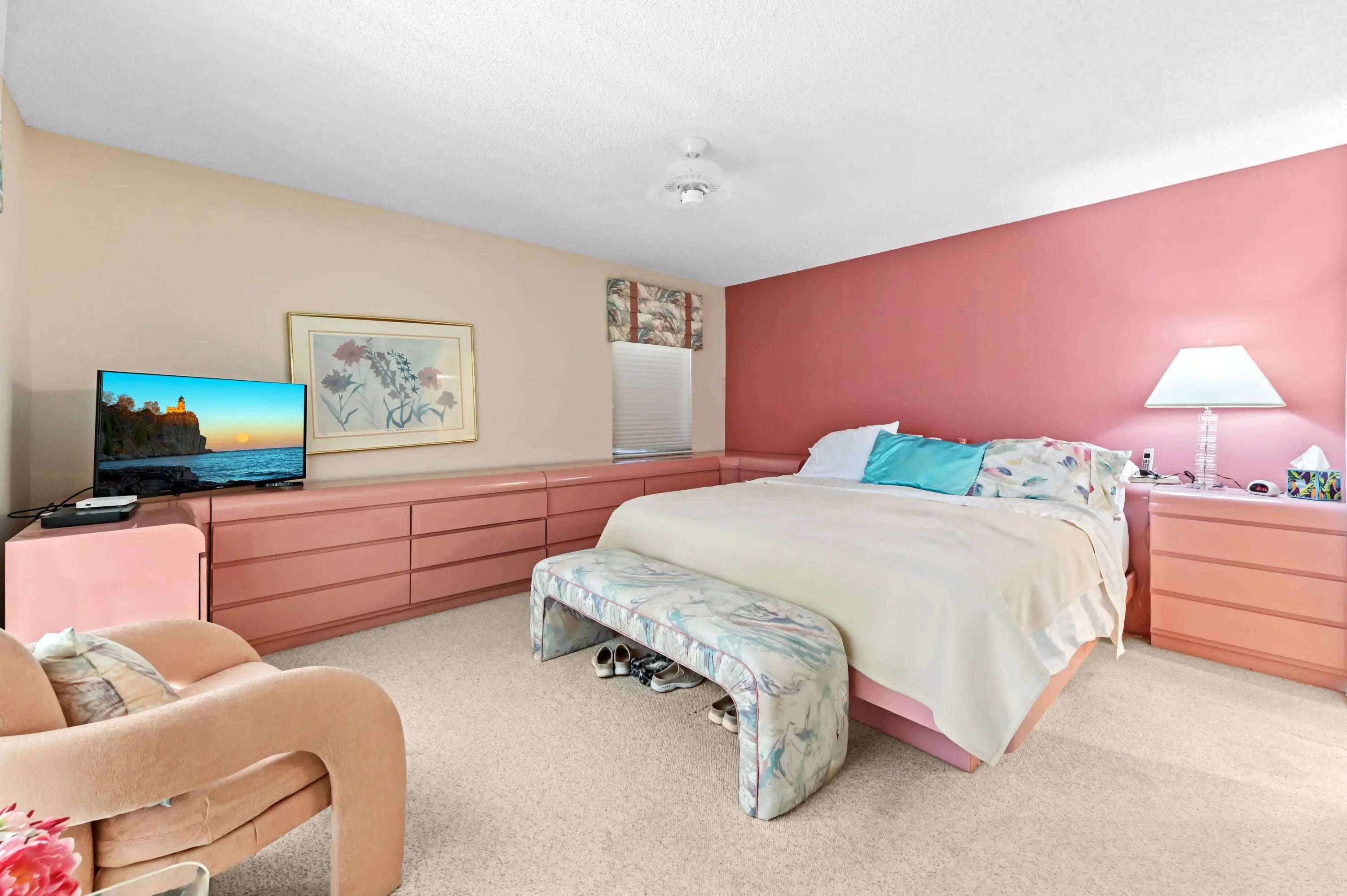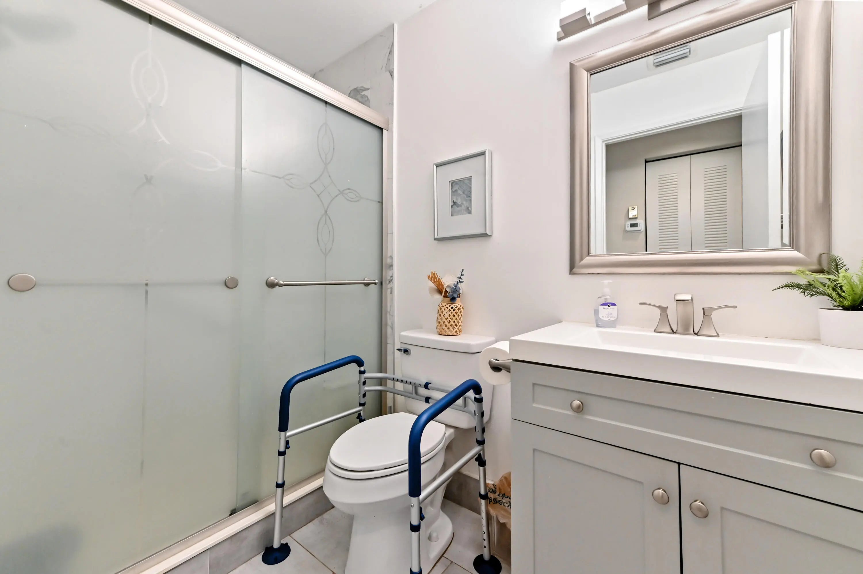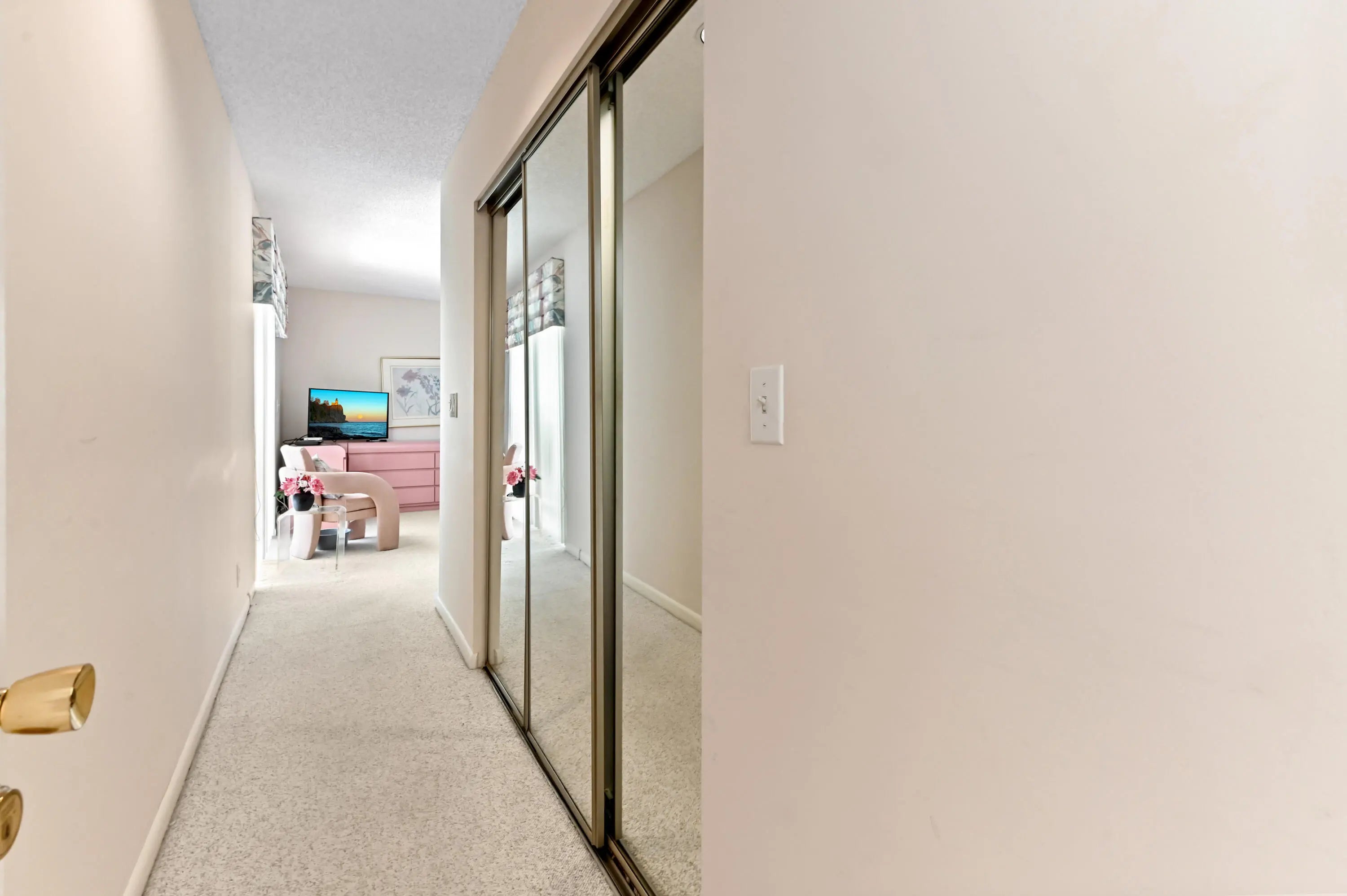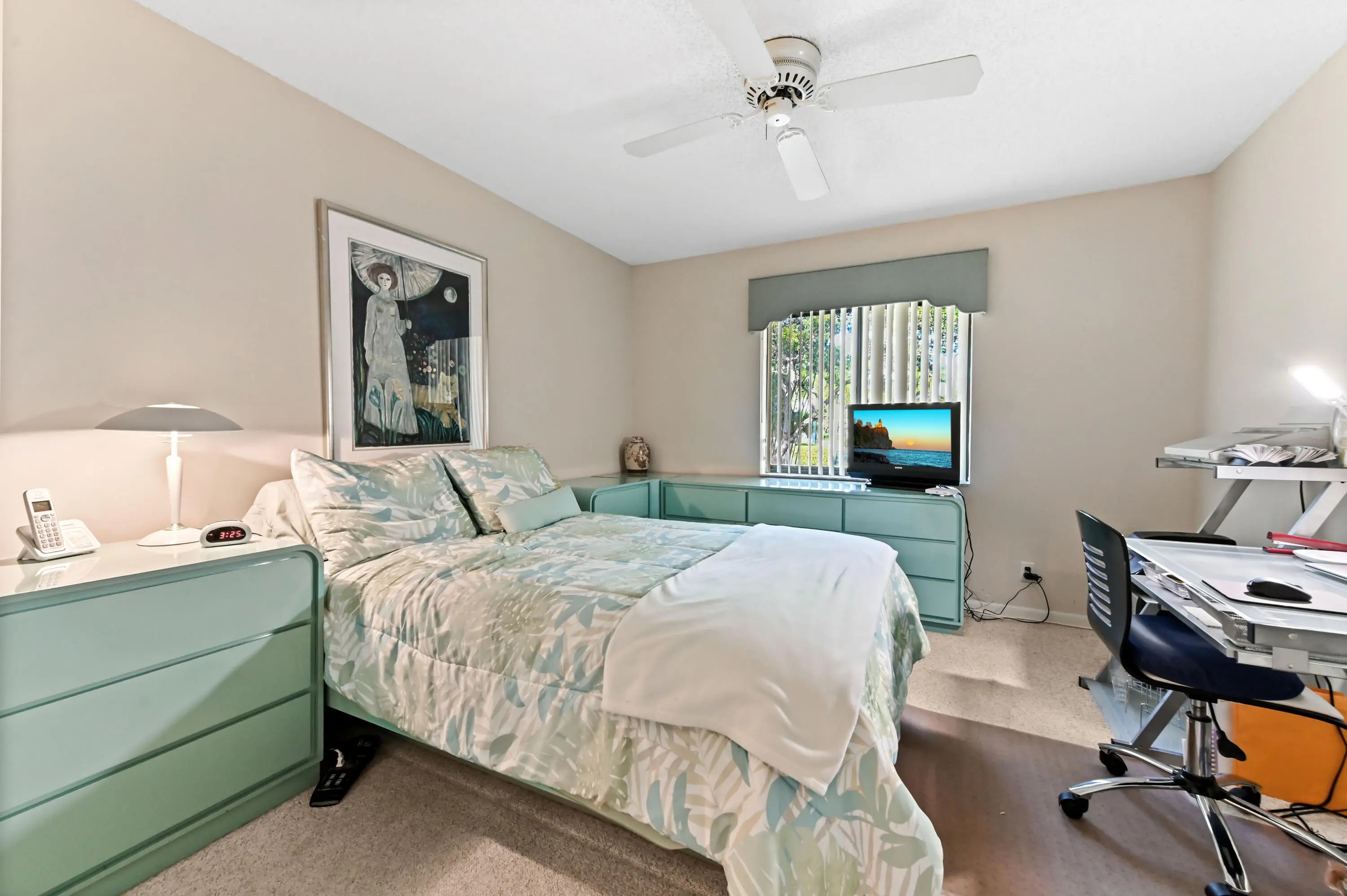 Welcome to Palm Chase Lakes, an active 55+ gated community. This spacious corner unit offers 3 bedrooms and 2 bathrooms, the stairs are equipped with a chair lift for ADA compliance with the 3rd bedroom currently used as a den. With 1,648 sq ft of living space, the home features cathedral ceilings, a split bedroom plan, and a screened and enclosed balcony with peaceful lake views--accessible directly from the master bedroom.Recent upgrades include a new AC system, providing comfort and efficiency year-round. Interior highlights also include a combination of tile and carpet flooring, stainless steel kitchen appliances, and a functional kitchen counter area that doubles as a breakfast bar.
