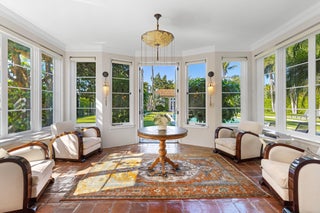 Rarely available beautifully maintained Landmarked estate, designed by Maurice Fatio, one of the early & beloved architects of Palm Beach. Sited on the ocean block on .84 acres at a high elevation with deeded beach access, this historically significant residence includes 8 BRs, 9.3 BAs, a guest house, tower room with ocean views, 4 car garage, separate staff apartment, generator, lush gardens & a beautiful pool. As was Maurice Fatio's style there are numerous loggias for entertaining & al fresco dining. Modern amenities are juxtaposed with exceptional historical details including stenciled ceilings, copper office ceiling, Cuban tile floors, fireplaces & lovely millwork. Closely located to iconic Worth Avenue's fine dining, world class shopping & cultural activities.