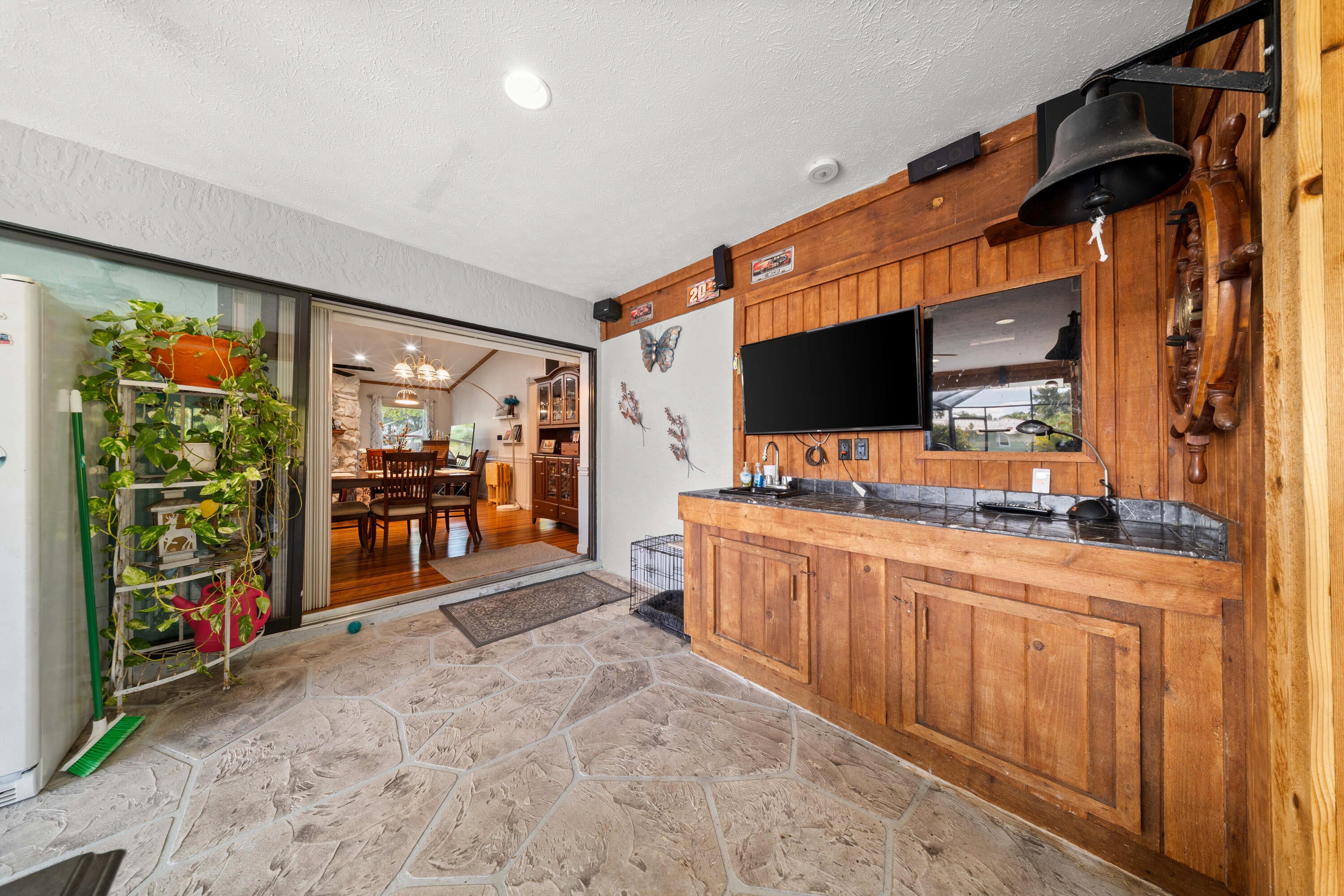COMING SOON -Rare double-lot estate offering luxury finishes, exceptional privacy, & true indoor-outdoor living. This home features a METAL ROOF, stunning strand bamboo/slate tile floors, wood cabinets/crown molding, & a beautiful stone wood-burning fireplace that adds charm throughout. The outdoor space is an Entertainer's dream with a large covered patio, Bose surround sound, hot tub & pool, young fruit trees (Barbados Cherry, Avocado, Mulberry, & Mango), and a spacious yard with a dedicated fenced area ideal for pets or play. A powered workshop shed offers the perfect space for hobbies or a home business. Homes with this level of land, craftsmanship, and entertainment potential are incredibly rare. Don't miss your chance to experience this one-of-a-kind property. Open House Coming Soon