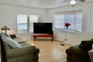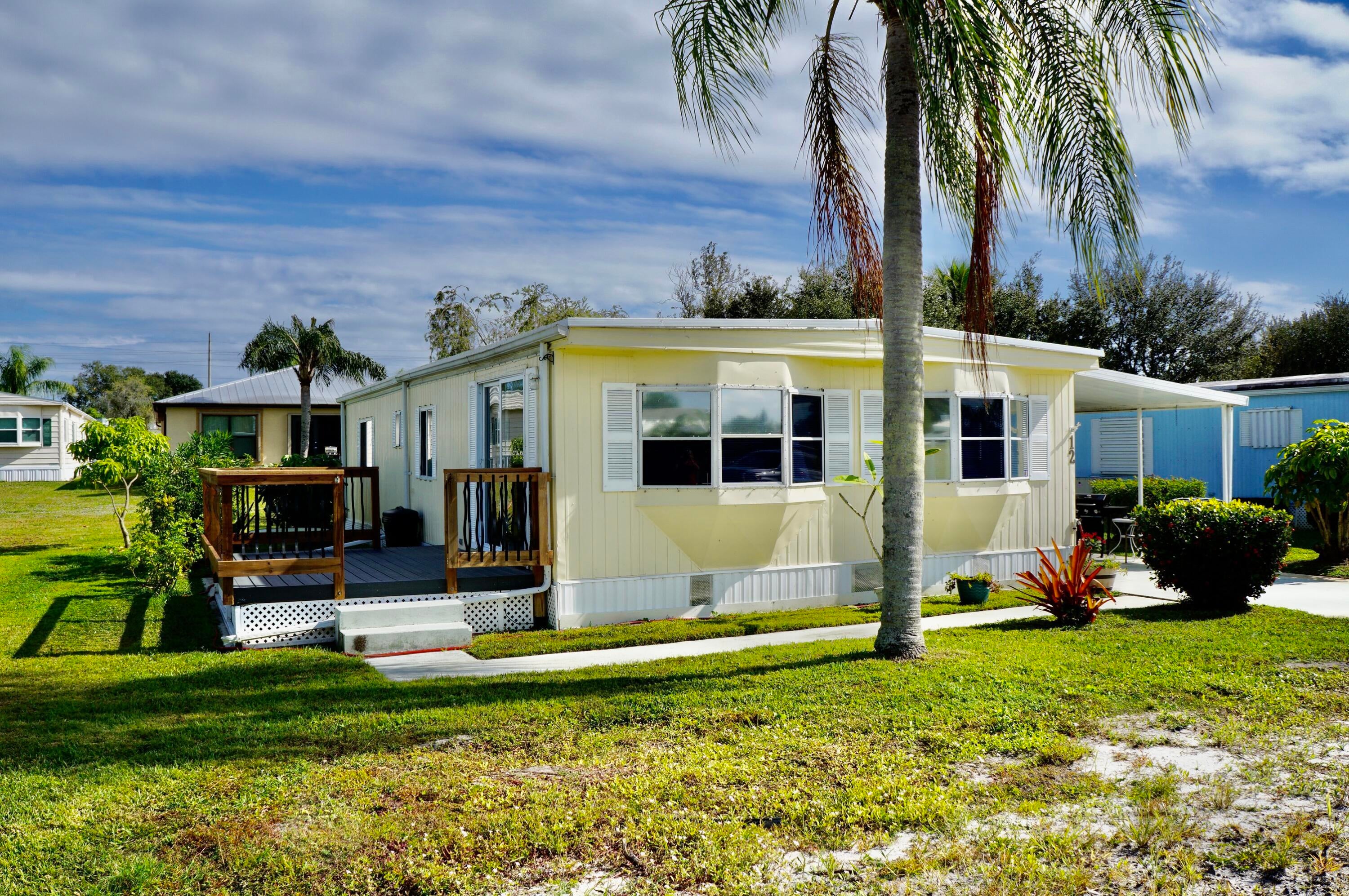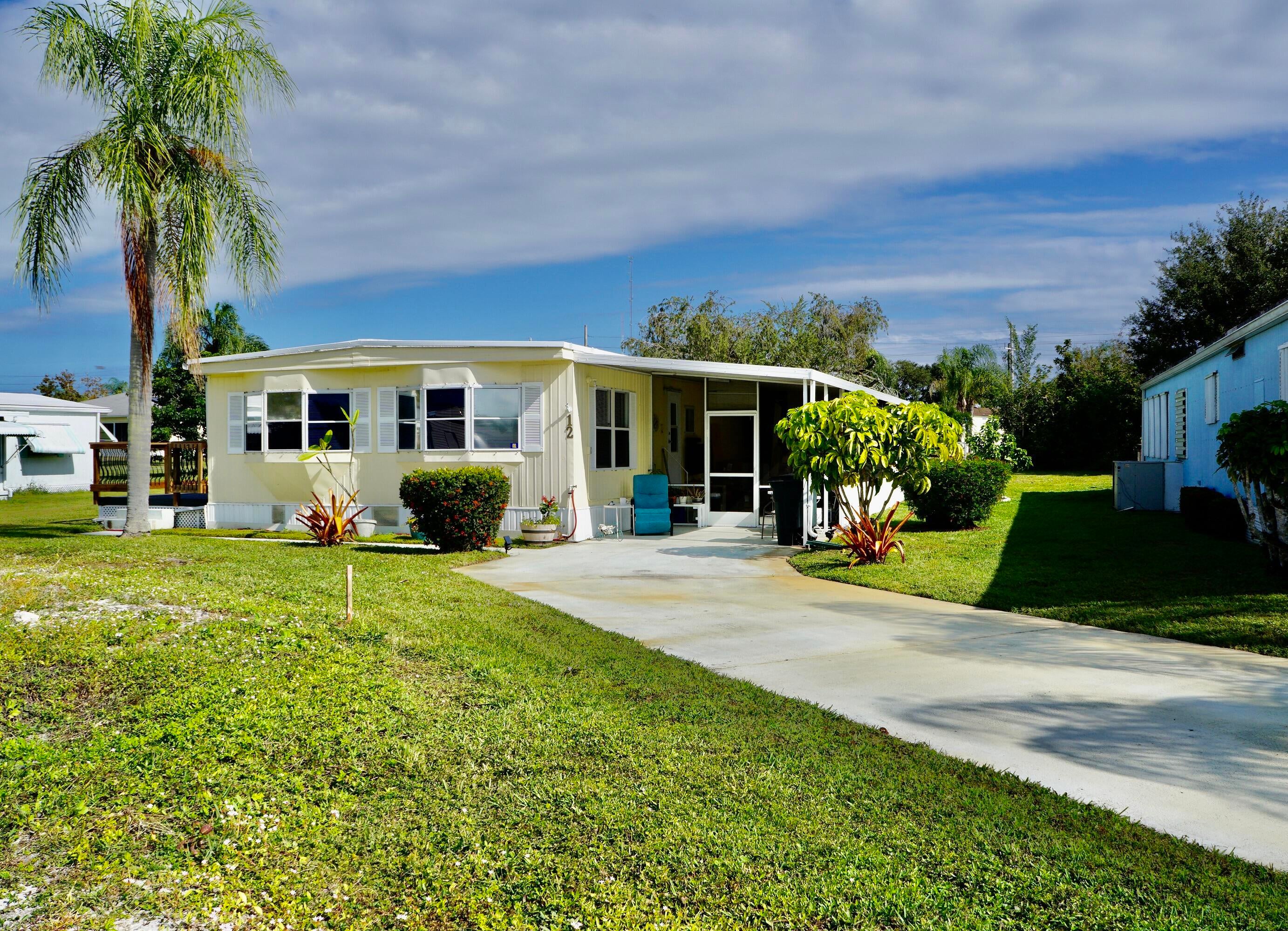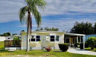 Enjoy the Florida lifestyle, relaxing in this move in ready, well maintained home. All furniture stays! This 2 bedroom/2 bath home has plenty of entertaining space in the large living room & spacious dining room. And if it's outdoor living you want, you'll enjoy the 20x11 screened porch AND a separate beautiful 12x10 deck made with composite wood for low maintenance. Roof was coated in 2024. Extra Long Driveway. Mango Tree & Avocado Tree. Washer & Dryer. Motivated Seller. Bring your offer before it's gone! This land leased home is located in the desirable Spanish Lakes Community. You must be approved by the park to purchase a home. This is country club living without the county club price!This is a 55+ park that offers a relaxed lifestyle for those who are ready for a break. And for the active seniors, Spanish Lakes offers all inclusive, resort like, amenities with a community clubhouse, free golf, social events, tennis, shuffleboard, swimming, exercise gym, and more. There is no HOA fee, as your $833 monthly land lease fee pays for everything, including your lawn maintenance, trash removal, property taxes and community activities. You'll find this home is tucked away into a private community , yet within a few miles of the beach, hospitals, and shopping. Call today to enjoy the Florida dream!