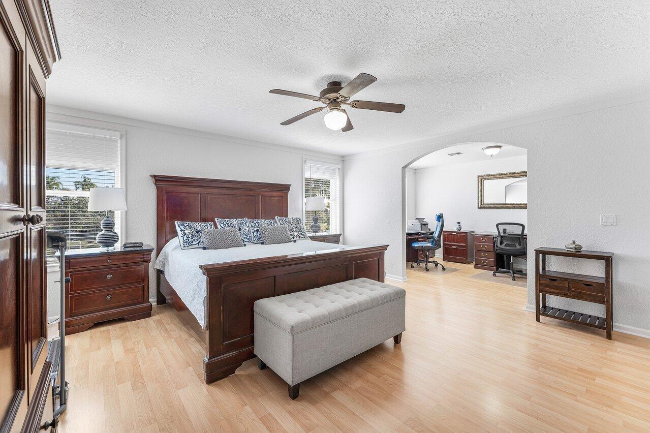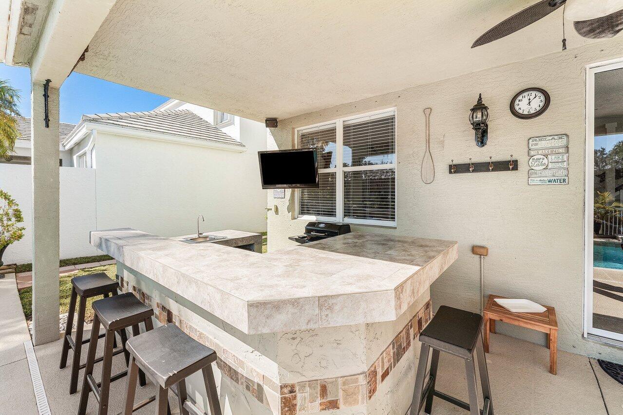 If the walls could talk you would know how much love has been poured into this home! Better than NEW, this is a one owner home who hates to see the home go but is excited for someone to love it as they have! An abundance of space and the feeling of ''this is home'' welcomes you the moment you walk in the door. Enjoy the amazing lake views day or night from your heated pool, open kitchen with granite counters and maple cabinets, spacious primary suite with sitting room and custom closets, versatile loft/media room, full bedroom and bath downstairs, two newer high-efficiency ACs, all gas appliances, accordion shutters, fenced yard, paver driveway, and access to a 24/7 manned gate with exceptional amenities! Please ask your agent for the full list of upgrades and schedule your tour today!