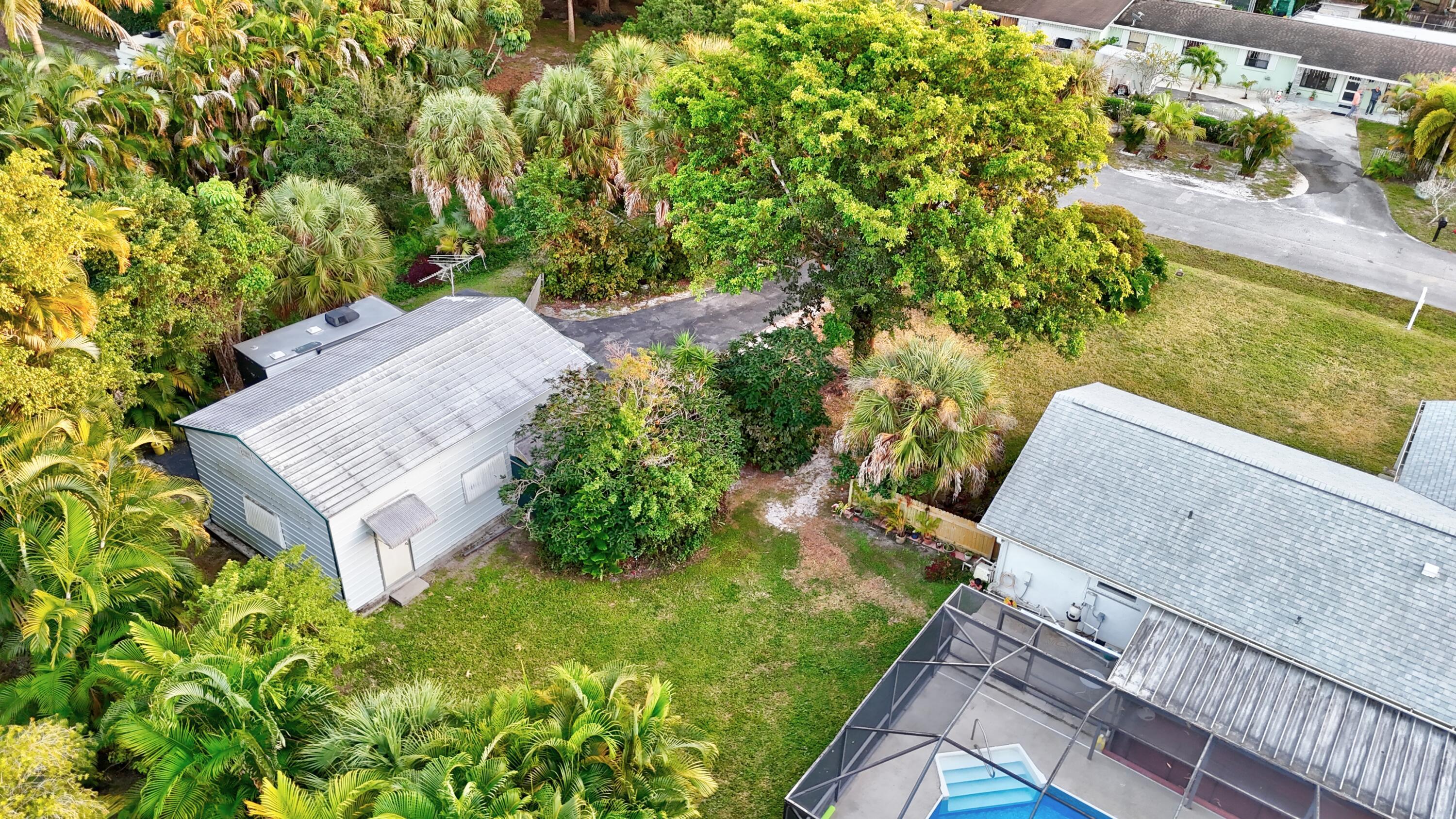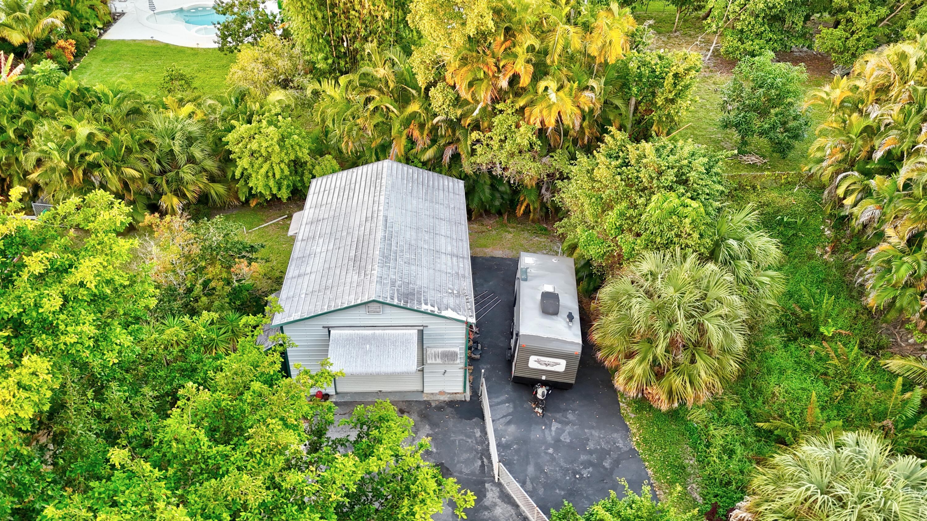 Discover this exceptional and rarely available property on a quiet cul-de-sac in West Palm Beach. Set on a half-acre lot, it offers exceptional privacy, a screen-enclosed pool, covered lanai, and tranquil views of the pond along the east side. A 30' x 20' metal building provides ideal storage for a boat, RV, equipment, or a workshop amenity rarely found in this area. Inside, you'll find a functional galley kitchen and a split floor plan with the main suite separate from the guest bedrooms. The home is also wired for alarm monitoring and video surveillance for added security. Unique in both setting and features, this property is truly a must-see.
