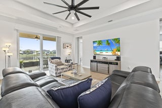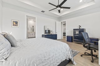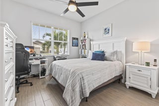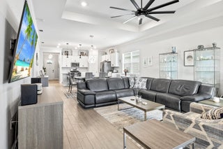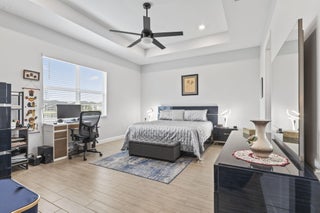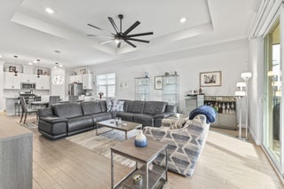 Why wait to build? Enjoy resort-style living in this 2023 home-3 bedroom, 3-bath home showcasing a rare open-concept, split floor plan with spacious bedrooms, ample storage, and custom cabinetry. Recently all three bathrooms have been beautifully upgraded with frameless doors/new hardware and both patio/driveway pavers resealed.Entertain in the gourmet kitchen featuring quartz countertops, custom cabinets with crown molding, gas stovetop, stainless steel appliances, and a built-in coffee bar. Impact windows, a tankless water heater, and sleek 6''x24'' tile elevate the home's modern elegance.Step outside to a fully fenced backyard overlooking a peaceful lake--perfect for relaxing or hosting guests. Owners are willing to contribute funds towards closing costs with an acceptable offer