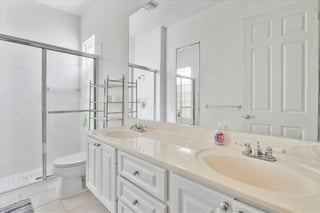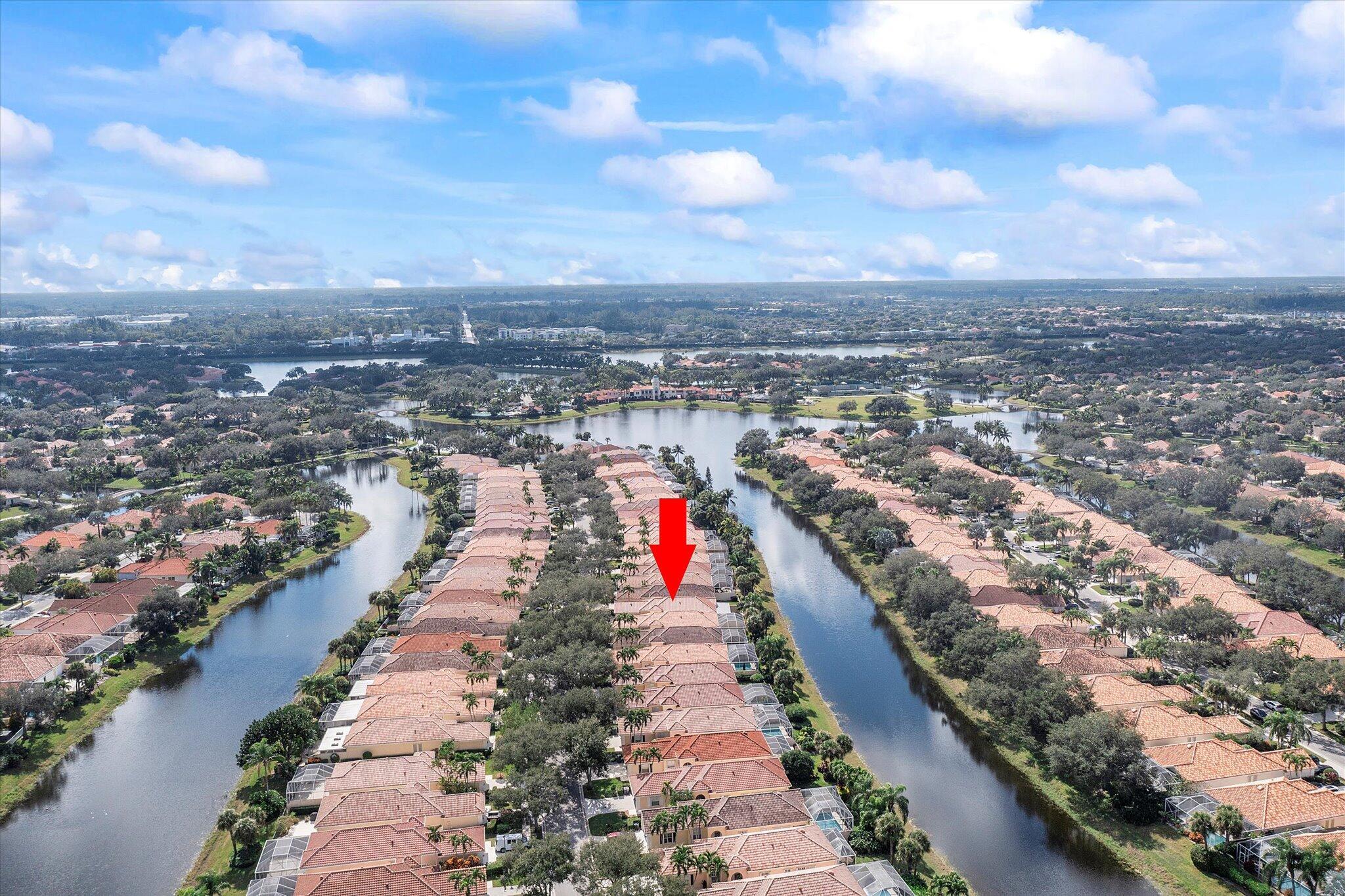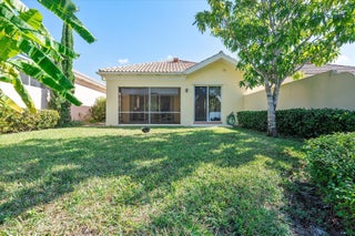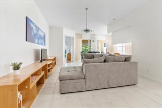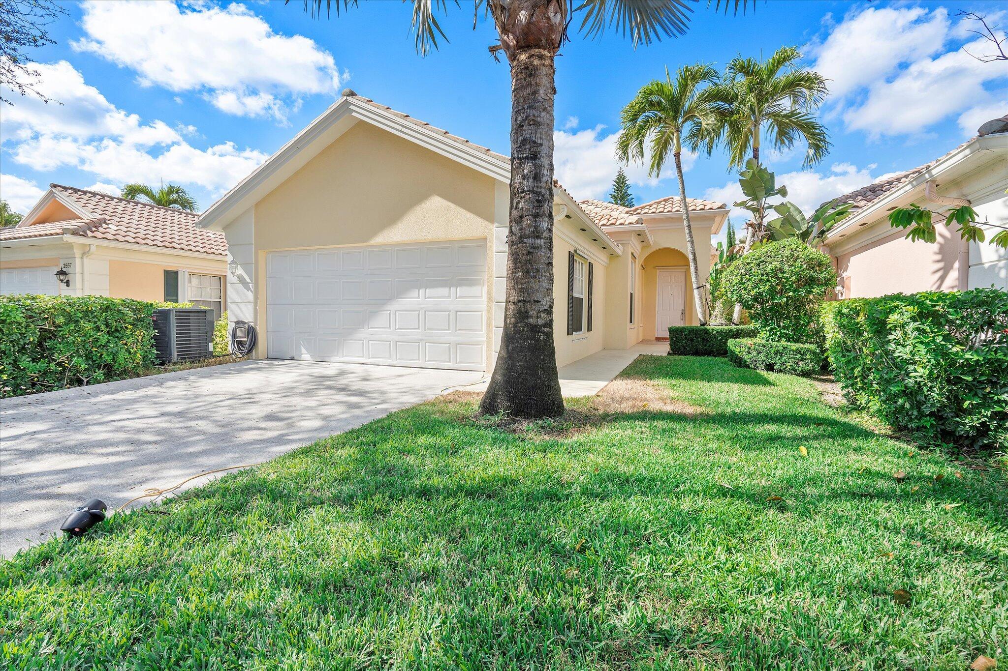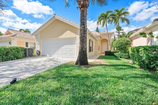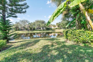Enjoy a beautiful WATER VIEW from this 3 bedroom, 2 bathroom, 2-car garage villa in the coveted Riverwalk community! There is tile flooring in the living area and elegant parquet in bedrooms. 10' ceilings and plenty of windows make the home feel bright and airy. The spacious primary bedroom overlooks the canal and direct access to the backyard. It is finished with a walk-in closet. The primary bathroom features dual sinks and a shower. Spacious laundry room is equipped with a full size washer and dryer, a convenient sink and plenty of storage space. Relax on a screened-in, private patio overlooking a serene canal. HOA fee covers cable and internet.Riverwalk is a fantastic community with its own Town Center, post office, three pools, café /restaurant, fitness center, eight Har-Tru tennis courts, pickleball courts, bocce court, activity rooms, 24-hr manned gate and more. It is just a few minutes away from the FL Turnpike and 441. Riverwalk is conveniently located to grocery stores and shopping plazas. Take a quick ride to I-95, PBI airport, Palm Beach Outlets, downtown West Palm Beach and Rosemary Square featuring fantastic restaurants and shops. The beach and fabulous Palm Beach Island are 12 miles away. All measurements are approximate. Take a look at the 3D virtual walk-through.