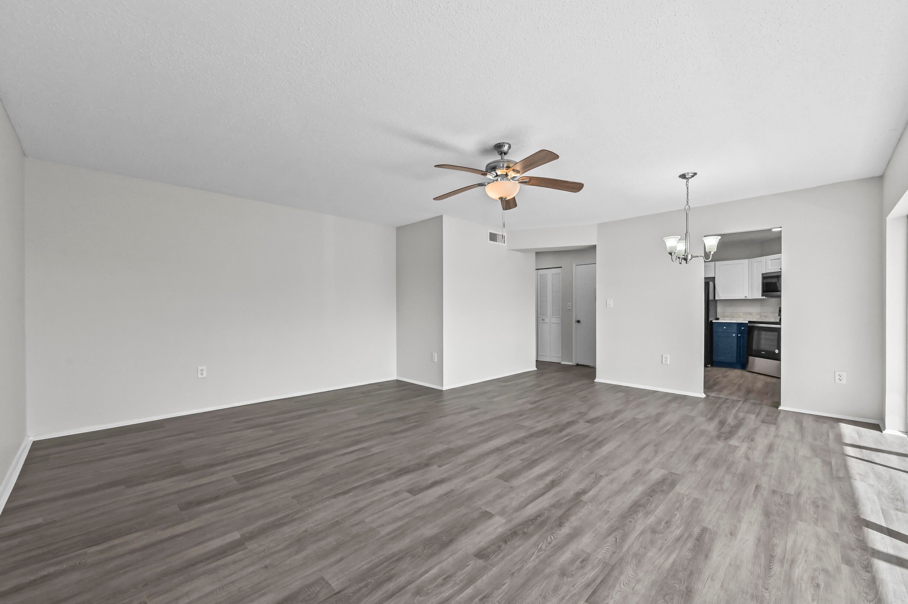 Seize the opportunity to own the best deal in this highly sought-after 55+ community with this recently renovated, chic 1-bedroom, 1.5-bath condo! Positioned on the second floor, this unit offers a bright, spacious, and inviting living area that is perfectly turn-key. The custom kitchen is a standout feature, boasting contemporary dual-tone cabinetry complemented by elegant granite countertops, creating a modern and sophisticated aesthetic.The residence is designed for comfort and convenience, featuring a beautifully updated full bathroom complete with a vanity and modern fixtures, along with a half bath perfect for guests. The spacious living area flows seamlessly to a covered balcony, providing a private retreat to enjoy the breezes and surrounding neighborhood views. Located just moments from parks, shopping, restaurants, the airport, and beautiful beaches, this move-in-ready condo offers an exceptional, active, and convenient lifestyle.