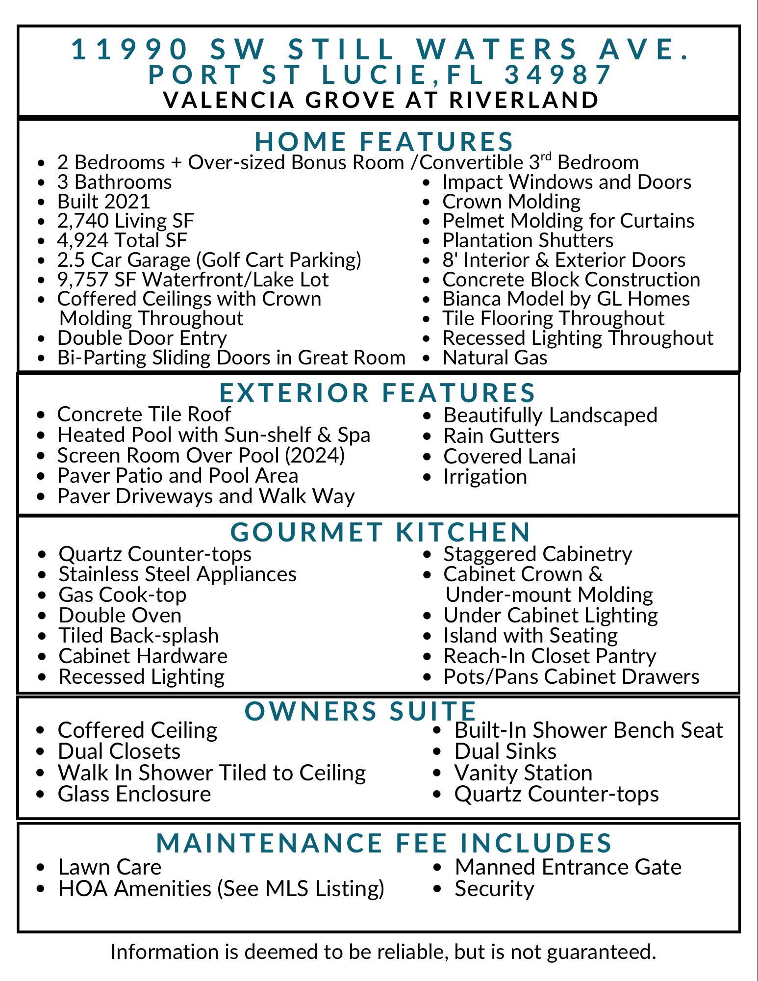 Discover this beautiful lake front pool home located in the sought-after Riverland Tradition area. This spacious residence features an open, bright layout with high ceilings, a modern kitchen with ample cabinetry, and generous living and dining spaces perfect for entertaining. The over-sized bonus room can be converted into a 3rd bedroom with ease. Step outside to the newly added screened-in pool enclosure, creating a true indoor-outdoor oasis ideal for year-round enjoyment. The primary suite offers privacy, a large bath, and plenty of closet space. Conveniently located near shops, dining, hospital, Heart sculpture, and top rated schools. This is Florida living at its best! (See home features in photos).