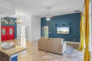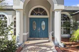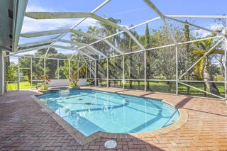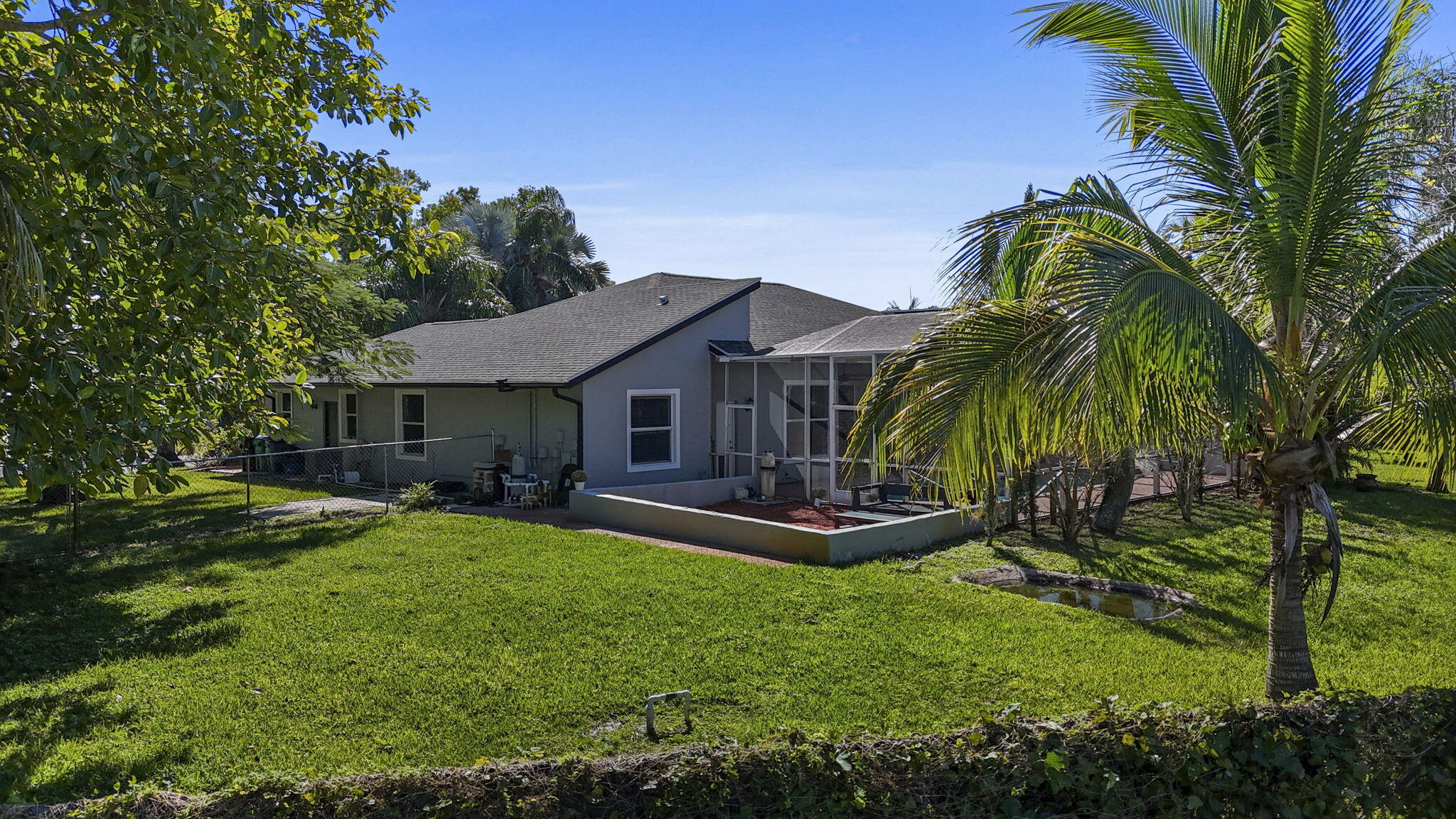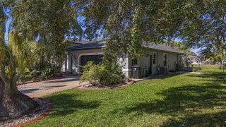 Discover refined Florida living in this exceptional residence, perfectly positioned on an exclusive cul-de-sac. Set on an expansive, maturely landscaped oversized lot, this property offers a rare blend of privacy, elegance, and natural beauty. A grand double-door entry and stately bay window introduce a bright, sophisticated interior with a flowing split floor plan. Three sliding glass doors create effortless indoor-outdoor living, opening to a lush, fully fenced backyard with fruit trees, an oasis-style pool, and tranquil canal views--with the possibility of installing your own private dock.