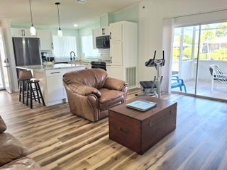 Fully furnished 2/2 home featuring a beautifully remodeled kitchen (updated 3 years ago) with quartzite countertops, a center island, soft-close cabinetry, and matching upgraded appliances. Luxury vinyl flooring runs throughout the home, adding a modern and cohesive feel. The water heater is just 2 years old. Nestled on a quiet cul-de-sac within a vibrant 55+ community, this home offers comfort, style, and convenience.Savanna Club boasts exceptional amenities, including three clubhouses--each with its own pool and fitness centers, an on-site restaurant, an 18-hole golf course, a theater, and so much more. HOA fees include cable, internet, trash services, and full access to all community amenities. Land Leased Property