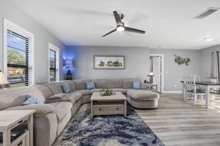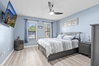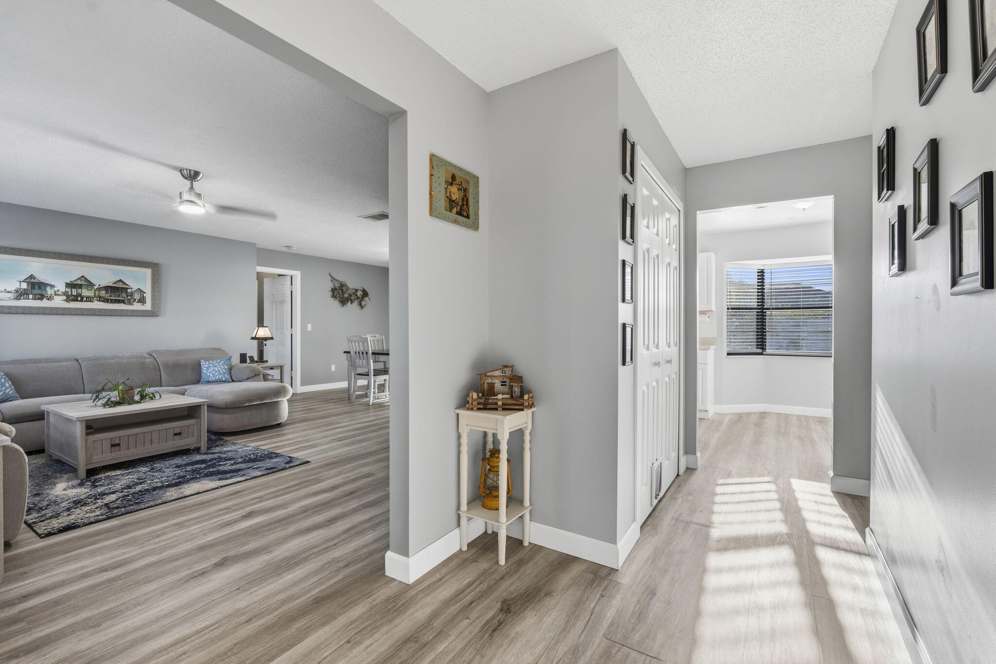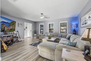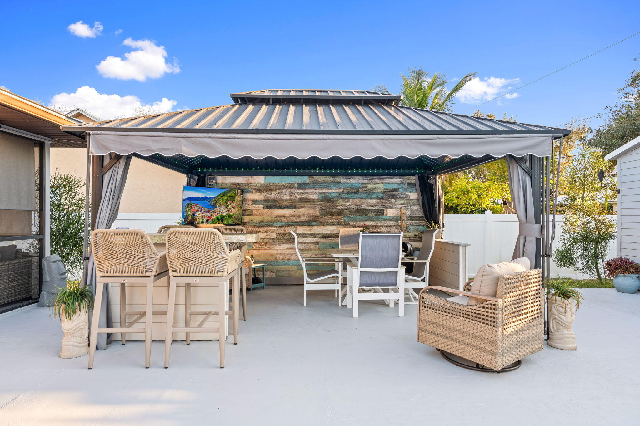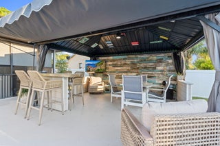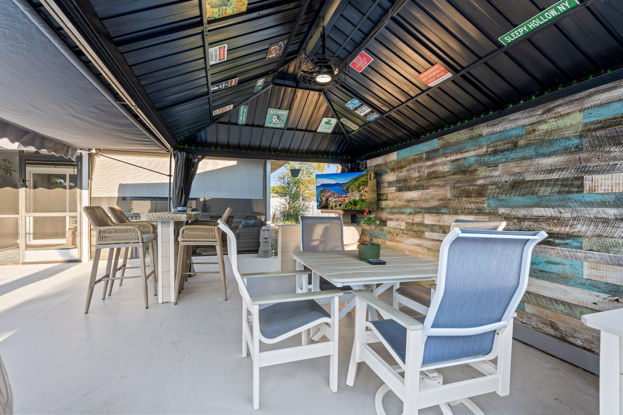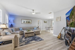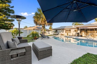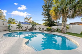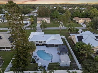 Are you searching for the perfect pool home in Port St. Lucie? This one deserves your attention. This 2 bed, 2 bath, 1154 sqft home offers a 2-car garage, a 2023 metal roof, & a saltwater pool with a covered bar, ideal for enjoying the Florida lifestyle. The home has been thoughtfully updated & is move-in ready. The entire pool was resurfaced and updated with a new salt system & equipment. The backyard was re-graded and enclosed with a new 8 ft PVC fence. Outdoor living is enhanced with a covered gazebo/bar/TV area, custom patio shades, & awnings blocking out the sun. New flooring and paint throughout. This smart-home is enabled with voice-controlled, a smart thermostat, & smart door lock. Prime location close to shopping, restaurants, award-winning healthcare, and quick access to I95