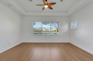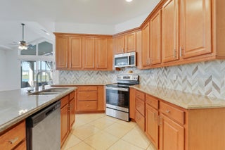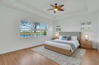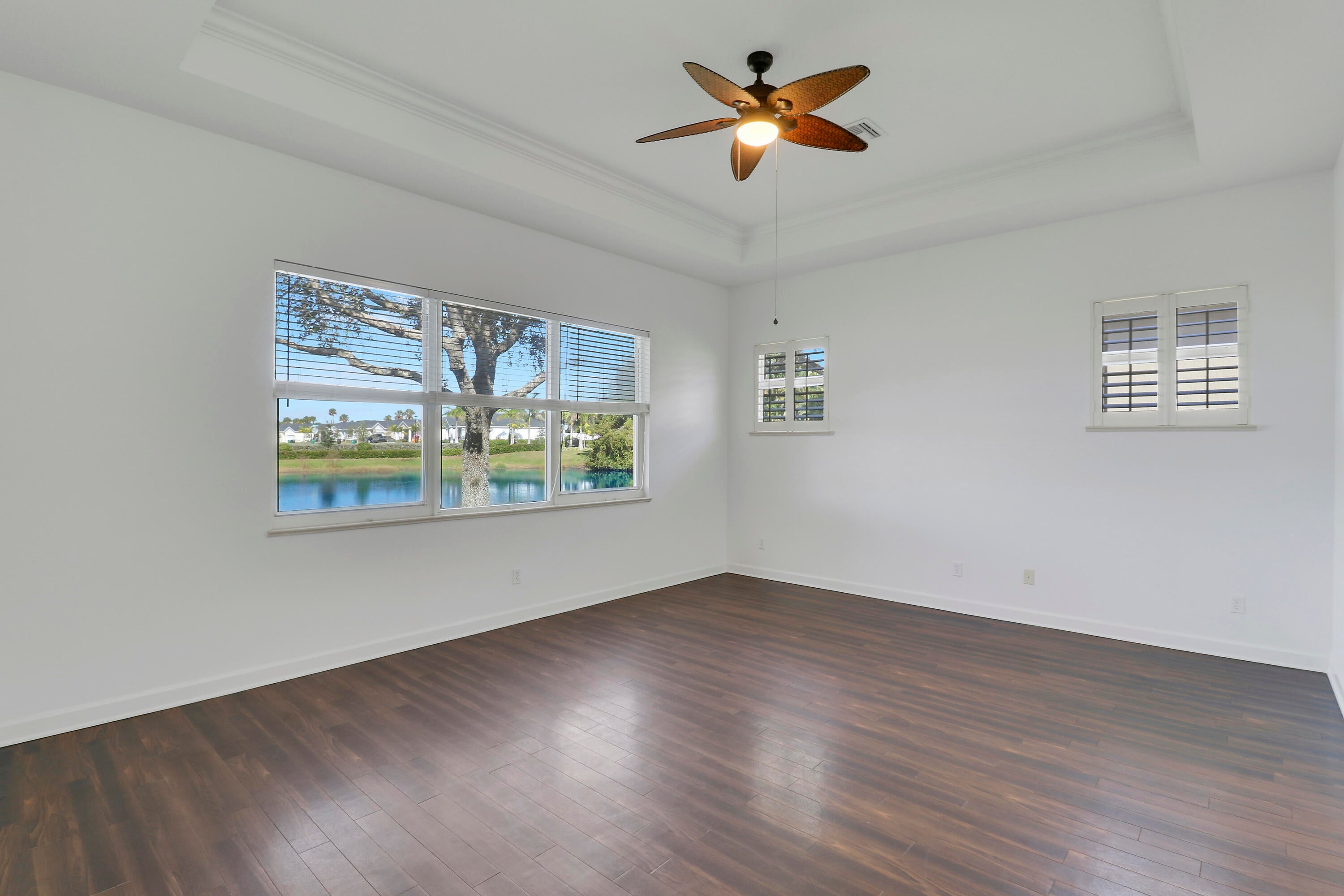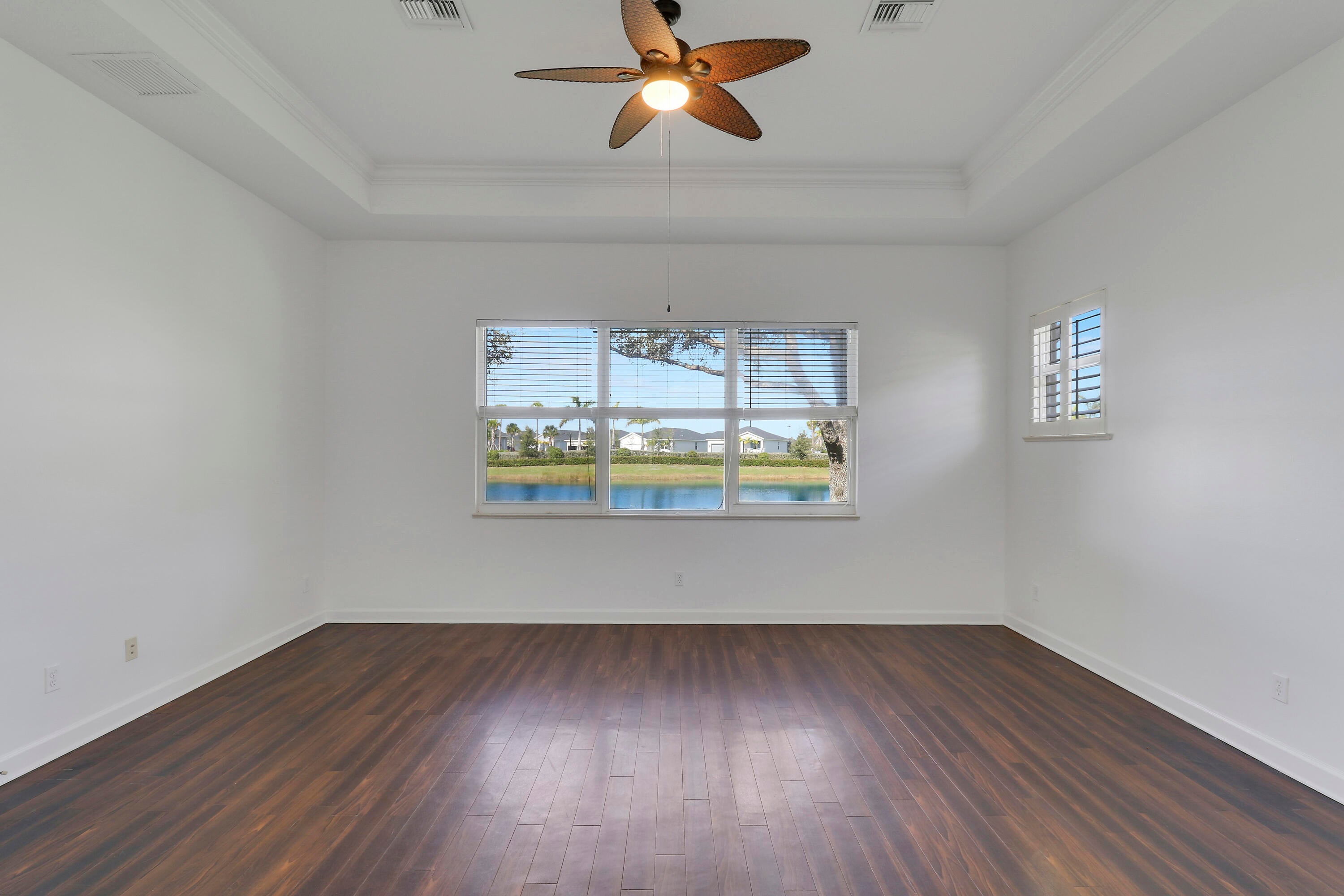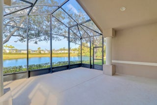 Enjoy beautiful lake views from this popular 3BR/2BA/2CG 'Fairview' floor plan in PGA Village! This home is bathed in natural light and features vaulted ceilings, IMPACT GLASS windows & doors, an extended screened and partially covered lanai, newer kitchen appliances, decorative glass insert front door and more. The open kitchen has 42'' wood cabinetry, granite counters, tiled backsplash, center island with breakfast bar and SS appliances. Current flooring not your style? No problem! SELLER WILL PROVIDE A CREDIT TOWARDS NEW LVP FLOORING AT TIME OF SUCCESSFUL CLOSE (examples shown in some photos)! Open living and dining areas view the lake. The master suite easily accommodates a king sized bed and has dual walk in closets and a large ensuite with dual sinks, soaking tub and tiled shower.Bedrooms two and three share the hall bathroom. Laundry room with utility sink leads to the garage. Walking distance to the PGA Village clubhouse! HOA dues cover cable, internet, lawn care, mulching, tree & hedge trimming, common area maintenance and community security. PGA Village is an amenity rich community with COUNTY ONLY TAXES surrounded by multiple golf courses where MEMBERSHIP IS OPTIONAL. Activities at the Island Club include pickleball, tennis, resort style pool, exercise rooms, ballroom, billiards and more. A short drive to the Palm Beaches, Stuart, Jensen Beach, Vero Beach, airports, baseball, dining, shopping and beaches. Call today to view!