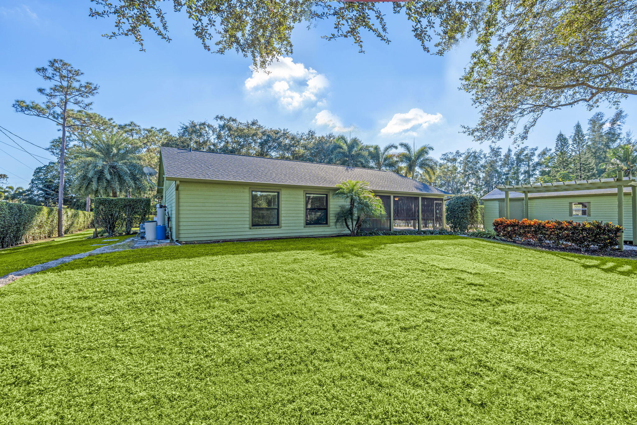 Welcome to your private retreat - perfectly located right off Royal Palm Beach Blvd! Enjoy the convenience of a PAVED ROAD, a fully fenced in property, and plenty of space for all your toys. This home features a huge private covered patio, an oversized personal shed, and a one-car garage for extra storage. Split floor plan with vaulted ceilings. NEW ROOF & IMPACT WINDOWS. All new light fixtures and interior paint. Shaded with mature trees and a complete perimeter hedge. Lawn Maintenance included! Schedule your private tour today.