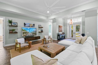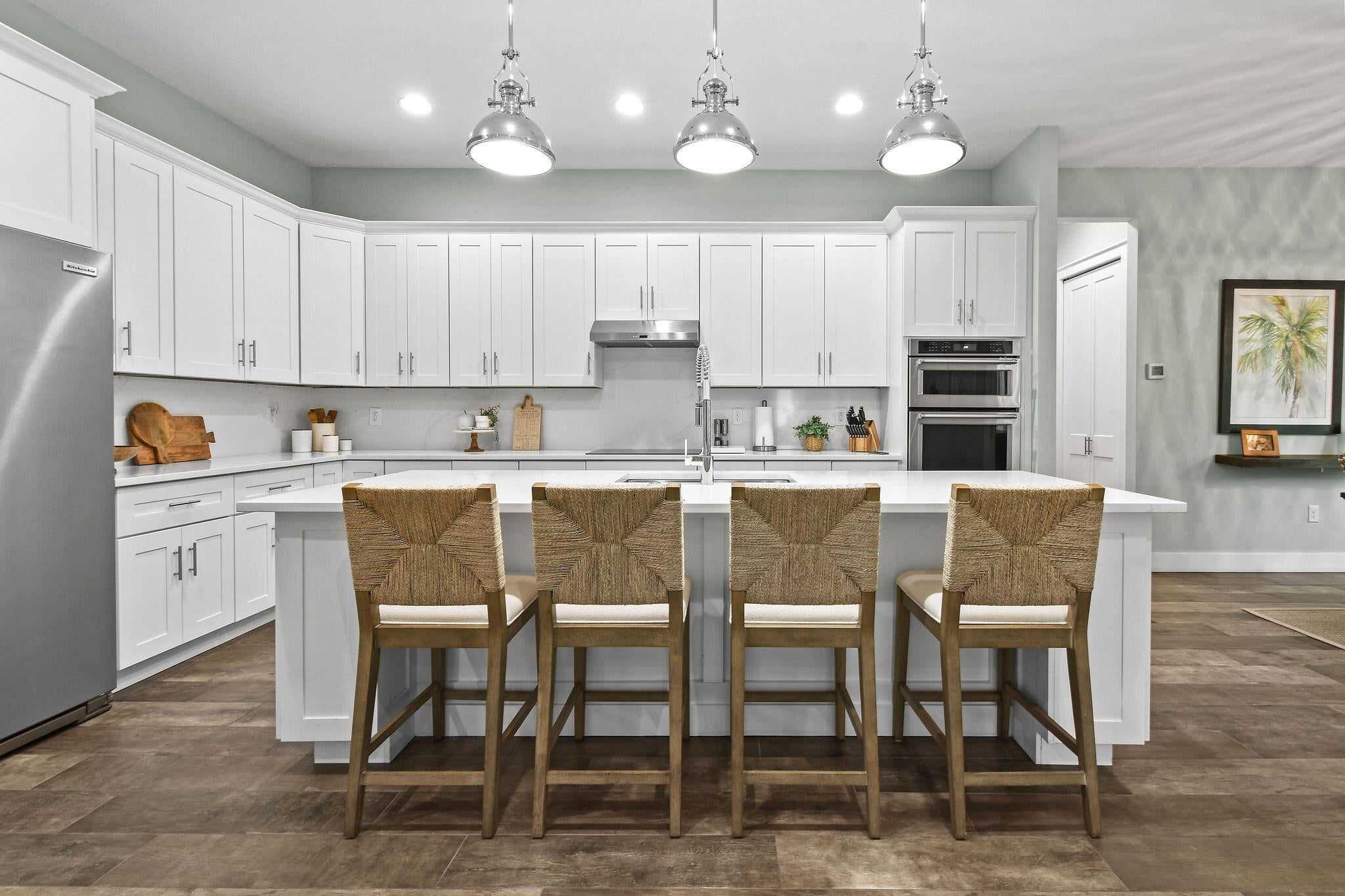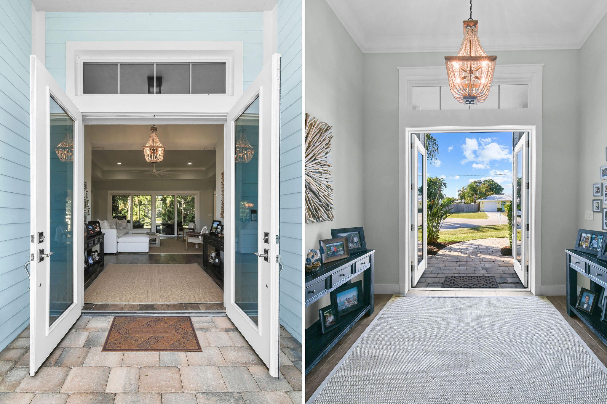 Truly exceptional rental opportunity awaits!! BRING YOUR TOYS to this IMMACULATELY FURNISHED 3-bed, 3-full-bath, 2021 CUSTOM BUILT home tucked on a quiet cul-de-sac featuring an over-sized garage & extended paved driveway ideal for your boat or RV. The exterior of this home showcases gorgeous Key West-style architecture, metal roof, expansive paver driveway & beautifully manicured over-sized fenced in back yard. Inside you are greeted w/12' ceilings, elegant tray ceilings w/crown molding, hardwood style plank tile & impact windows & doors. The open concept layout highlights a generous living space w/a large great room opening up to the chef's kitchen, screened, covered lanai & meticulously manicured over-sized fenced backyard. The chef's kitchen is a standout, offering a large island w/quartz countertops, soft-close custom cabinetry, & crisp white finishes. The bathrooms continue the elevated style, featuring tiled showers, quartz tops, & modern fixtures. This home comes tastefully furnished in a modern coastal décor, designed to offer comfort, style, & a relaxing atmosphere from the moment you arrive. A rare combination of luxury, convenience, & Florida charm in a great location, East of US 1 & close to the beaches, shopping, dining, & hospitals.