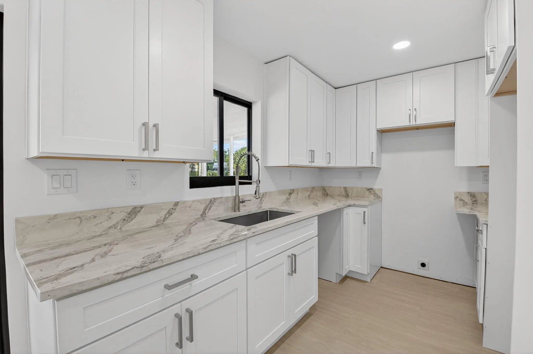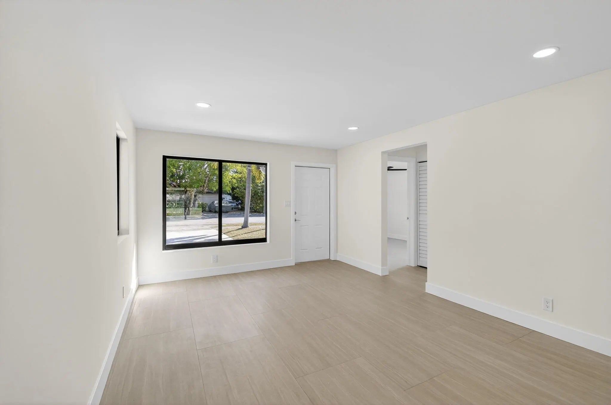 Full remodel! All new large format tile floor, new cabinets and counters, rewired, new light fixtures, new doors and trim, new plumbing fixtures, new water heater, new AC and ducts, new hurricane windows. Newly painted in and out. Full set of new appliances (your choice) installed before close. Roof was installed 2019. All work permitted.(There are some items which have not yet been completed. These items will all be completed before close. Call listing agent for detail)