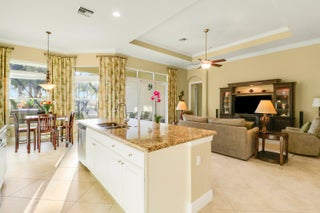 AMAZING LOT LOCATION on side street w/PEACEFUL LAKE VIEWS FRONT & BACK in the resort style community of PGA VERANO. This 3BR/2.5BA/2CG home has many upgrades t/o PLUS A WOW FACTOR NEWLY COMPLETED KITCHEN UPDATE with IVORY CABINETS & LUXURY TILE BACKSPLASH to compliment the granite counters, butler's pantry & SS appliances! Enjoy LAKE VIEWS from the charming BREAKFAST NOOK, GREAT ROOM & PRIMARY SUITE with dual closets PLUS a spa-like ensuite w/ dual vanities, soaker tub & separate shower! Guest bedrooms have access to the hallway bathroom. ANOTHER HIGHLIGHT of this property is the expanded, screened lanai w/ outdoor grill area! The perfect spot to enjoy your morning coffee or dine al fresco! More features include custom draperies, IMPACT GLASS windows & doors, newer AC (2024).VERANO is an amenity rich resort style community with a 27 court pickleball center, walking paths, multiple community pools & fitness centers, sauna, dog park, tennis courts, social clubhouse with activities and more. HOA dues include basic cable, internet, alarm monitoring, lawn care, common area maintenance, gated security and access to all amenities. For avid golfers, there is a cart path from the community leading to the PGA Golf Club (membership is optional and availability varies). This community truly has something for everyone. Call today to view this exceptional property and start enjoying the Florida Lifestyle!