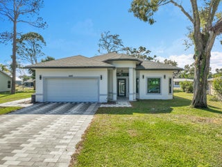 Beautiful NEW CONSTRUCTION 2024 CBS home with 3 bedrooms, 2 baths, and a 2-car garage. Built for peace of mind with impact windows/doors, this move-in ready home features a modern kitchen with upgraded cabinets, granite counters, and stainless appliances, plus porcelain tile floors throughout. Bathrooms include rain shower fixtures, while the garage is finished with an epoxy floor coating. Enjoy the outdoors on a spacious covered patio with 3 ceiling fans and a sprinkler system for easy lawn care. Conveniently located in Lakewood Park, just minutes from I-95, the Turnpike, beaches, shopping, dining, and downtown Fort Pierce, Vero Beach, and Port St. Lucie. Move in ready!