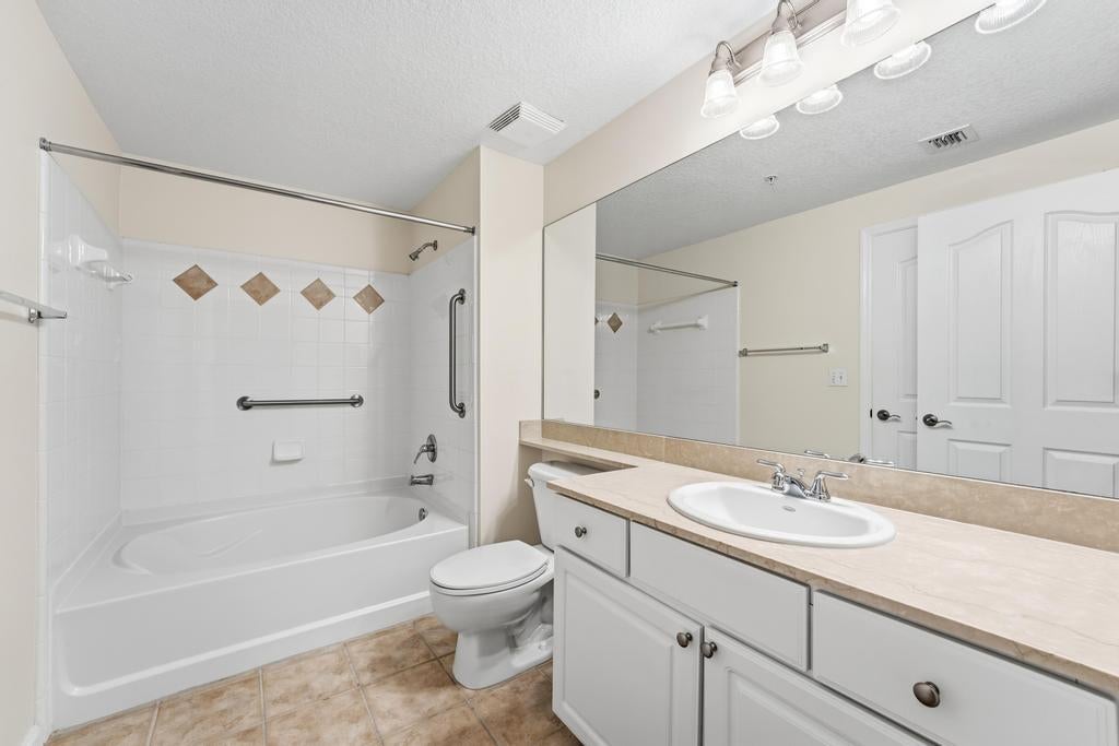 Beautiful first-floor 2 bedroom, 2 bath condo with attached 1-car garage in the highly desirable Somerset at Abacoa. This spacious split-bedroom layout features luxury vinyl flooring throughout, a bright kitchen with granite counters, wood cabinetry, and black appliances. The foyer opens to the dining area and living room and flows into the kitchen. The living room has sliding doors that open to the patio. The primary suite includes an en-suite bath and large walk-in closet. The second bedroom also functions as a full suite with joint access to the bathroom and another oversized closet--perfect for guests or a second primary. All living areas are on one level for easy convenience. This condo also features accordion shutters.Somerset offers resort-style living with a heated pool, clubhouse, fitness center, playground, putting green, and picnic areas. Ideally located near Downtown Abacoa, Roger Dean Stadium, top-rated schools, restaurants, shops, parks, FAU, and just minutes to Jupiter and Juno beaches