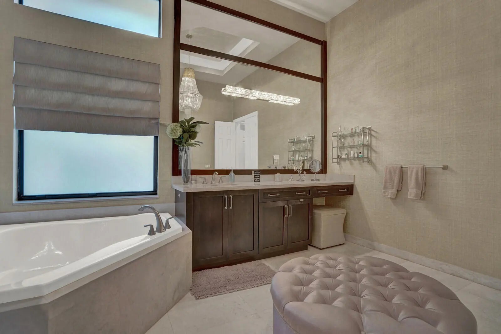 Bar, Built-in Shelves, Closet Cabinets, Ctdrl/Vault Ceilings, Custom Mirror, Entry Lvl Lvng Area, Foyer, Kitchen Island, Laundry Tub, Roman Tub, Split Bedroom, Volume Ceiling, Walk-in Closet, Wet Bar