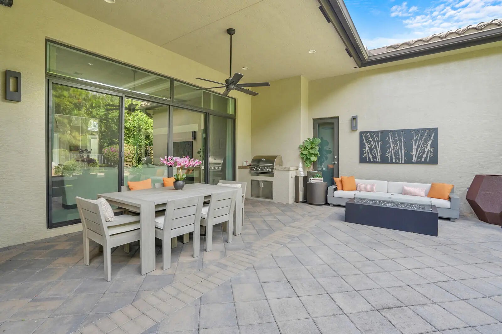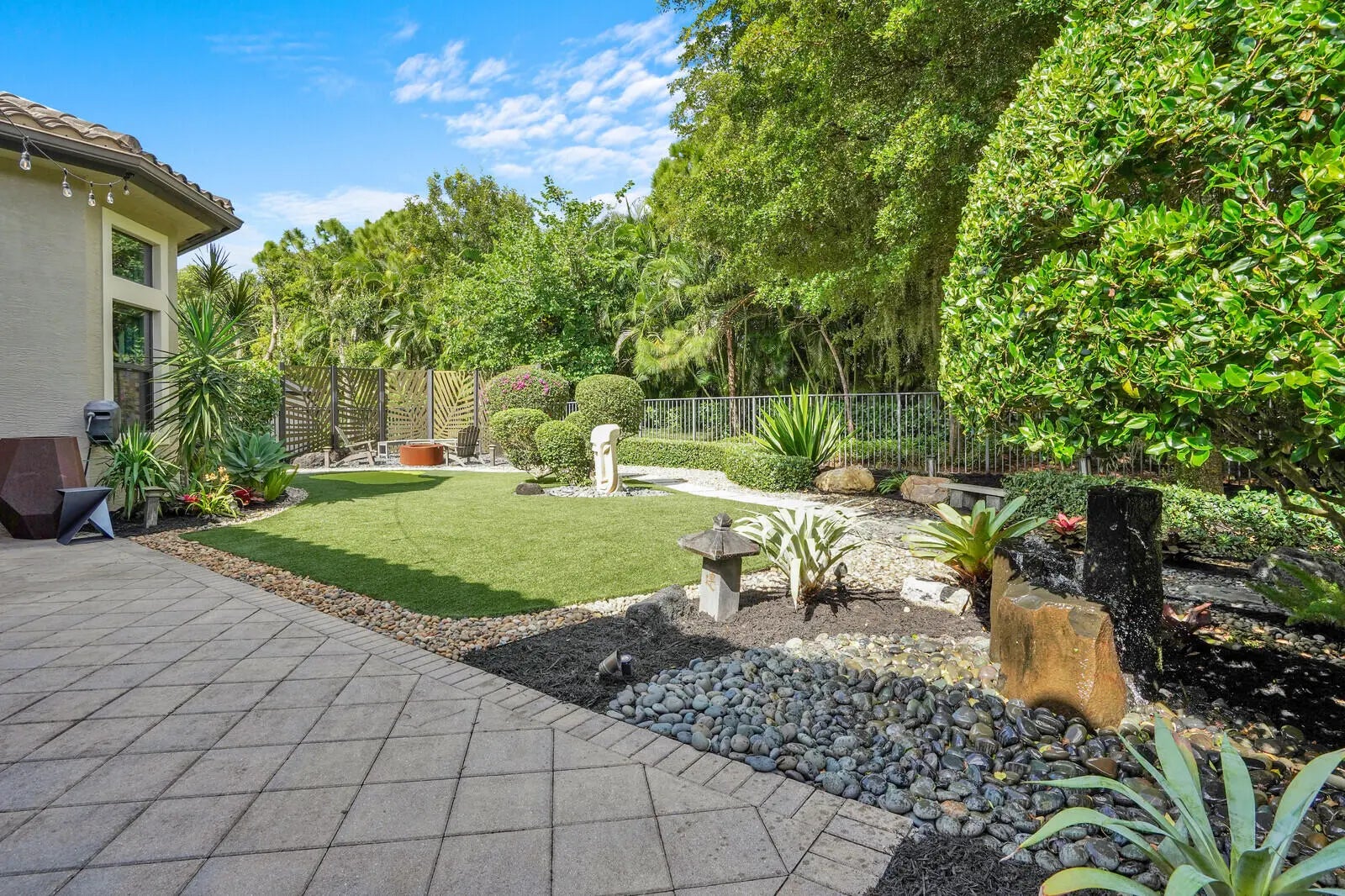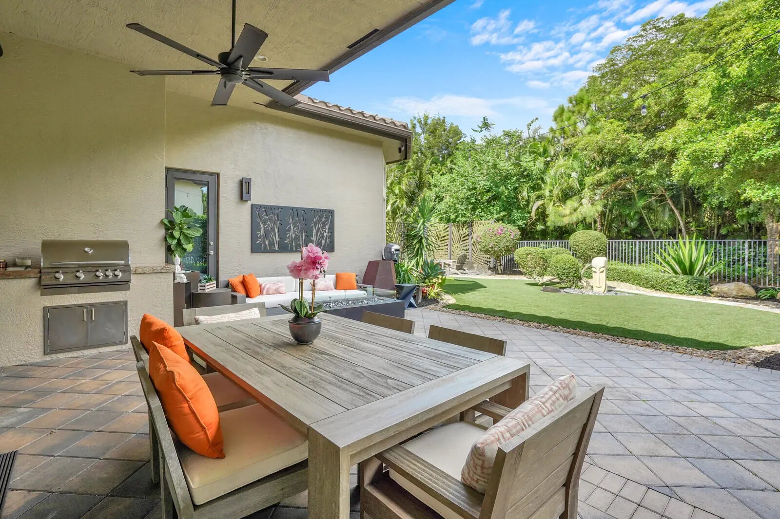 Auto Sprinkler, Built-in Grill, Covered Patio, Custom Lighting, Fence, Open Patio, Room for Pool, Summer Kitchen, Zoned Sprinkler