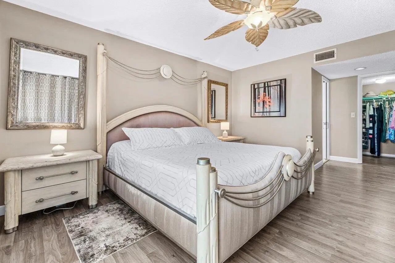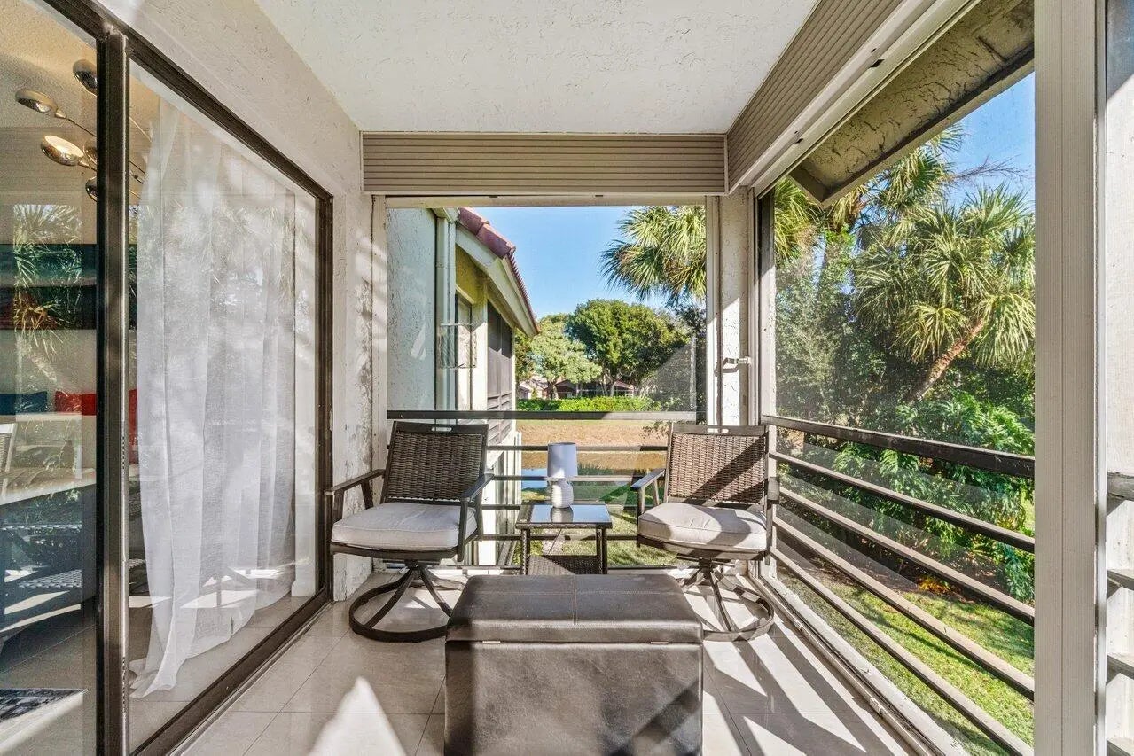 Community 55+, a great place to call home, bright & breezy, 2nd floor unit with amazing views! The unit features porcelain tile & laminate flooring. The updated Eat-in kitchen with spacious quartz countertop, pantry and stainless-steel appliances. The Master Bedroom with dual closets and sliding door easy access to patio. The Master Bathroom updated with large shower and frameless shower glass. The covered screened patio perfect for entertainment and relaxing from Sunrise to Sunset, this is Florida living at its finest. Location close to beaches, parks, shopping, restaurants, Publix, and the airport makes it incredibly convenient. A gated community with pool, spa and part of a golf course (NO mandatory membership).