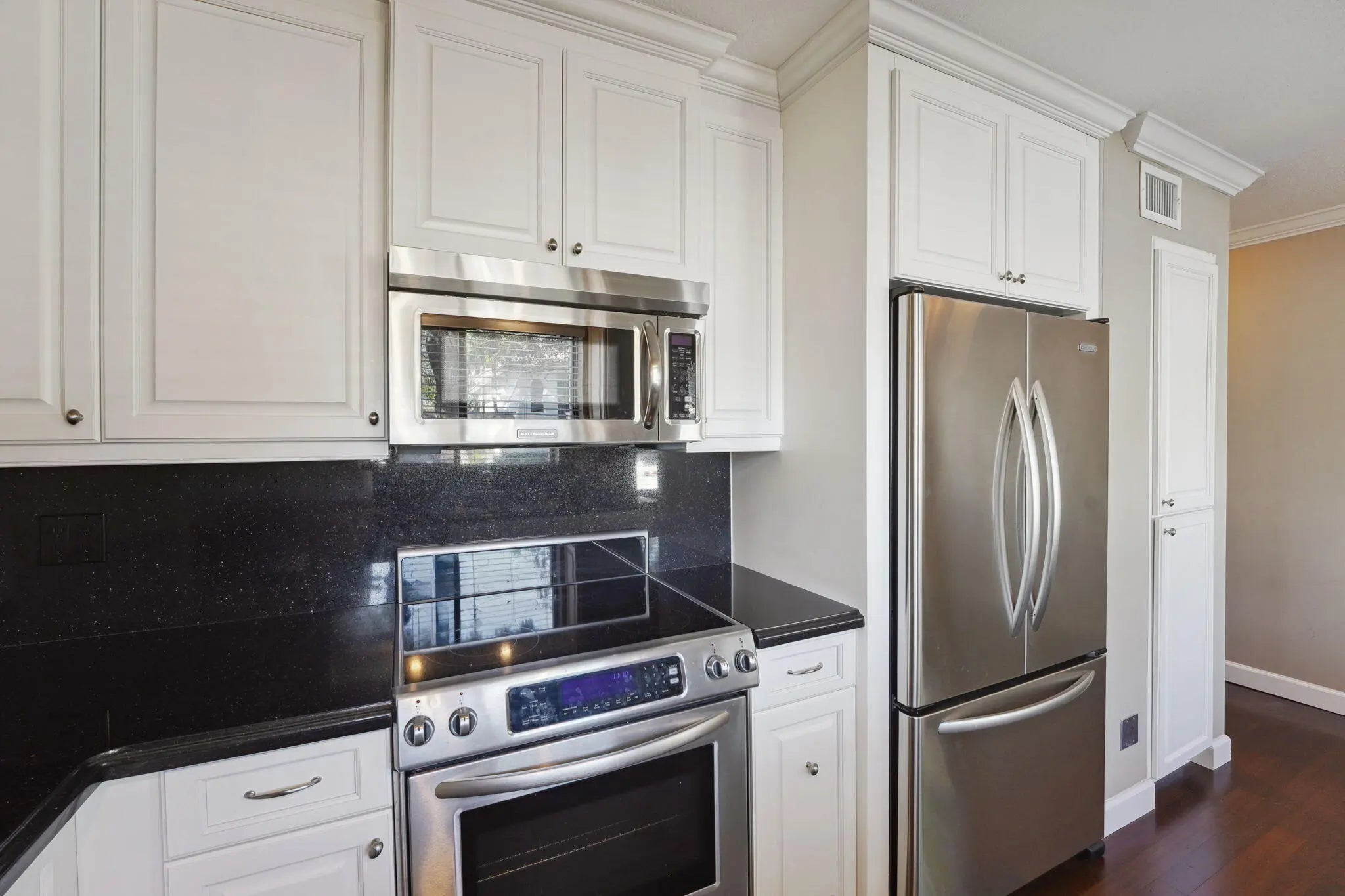 Step into the charm of this spacious ground-floor condo, offering 2 bedrooms plus a versatile den that can easily be transformed into a 3rd bedroom. French doors open to a generous screened-in lanai, perfect for relaxing or entertaining. Inside, you'll find a beautifully updated kitchen featuring classic white cabinetry, sleek black granite countertops, and high-end stainless steel appliances, all complemented by elegant crown molding and an open-concept design. The community offers gated security, pickleball & tennis courts a beautiful community pool. Less then a mile from the beach this inviting condo is a must-see--don't miss the opportunity to call it home.