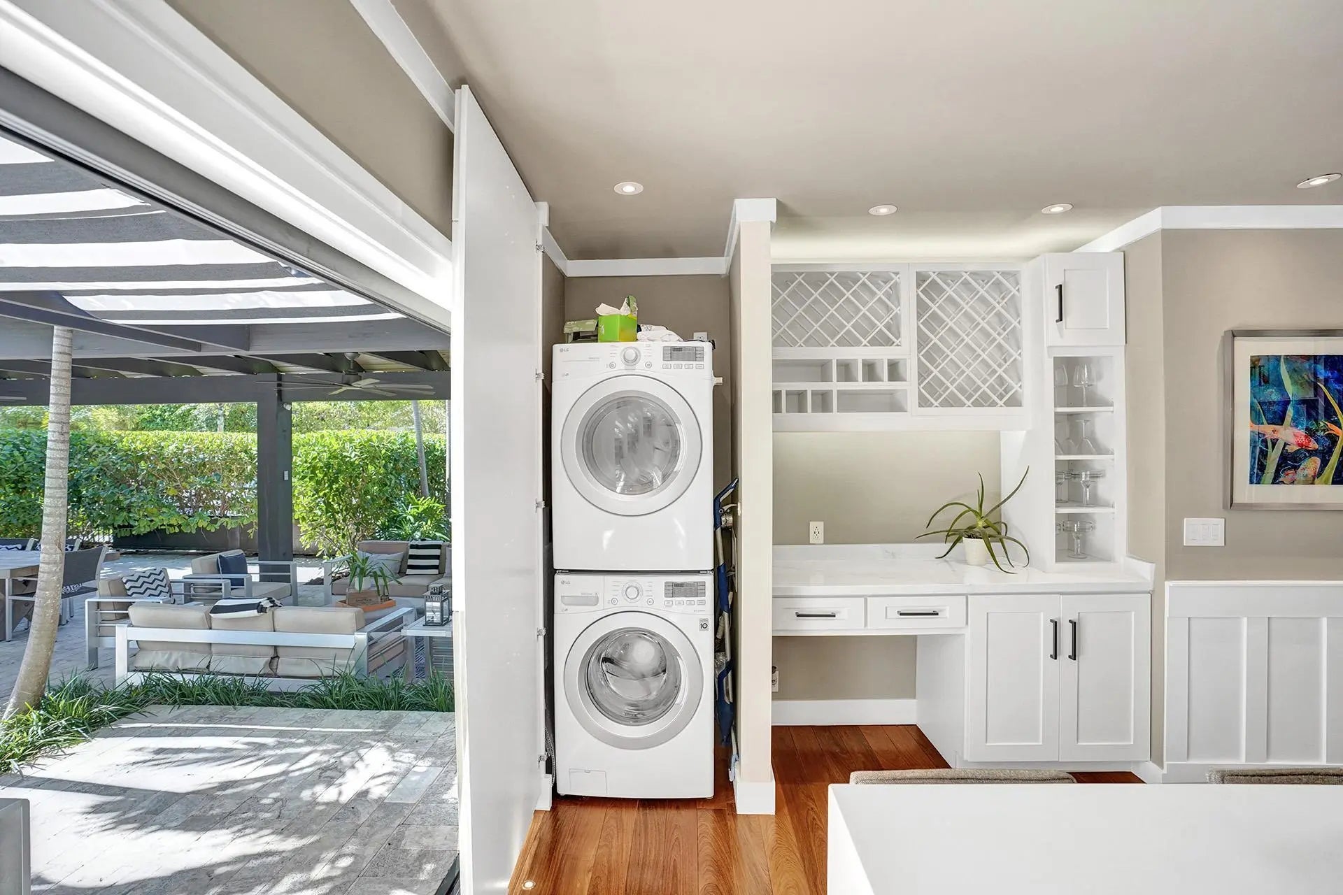 Available to show 2/21-2/22! Prime location 3 blocks north of Atlantic Ave & 1 block west of Pineapple Grove! One of a kind Downtown Delray compound encompasses the entire corner of N Swinton Ave. Features 2BR main residence and full guest home connected by a custom breezeway with a resort-style pool and spa at the center. Completely rebuilt in 2021 with brand-new everything, including a new roof, all new appliances, full impact windows and doors, and a whole-home generator. Inside, the main residence was meticulously reimagined with custom millwork, refined wall treatments, designer lighting, built-ins, a large gas stove, and gorgeous pecan flooring. Accordion impact glass doors open wide for seamless indoor-outdoor living. Outside, the pool area is framed by bamboo privacy landscaping