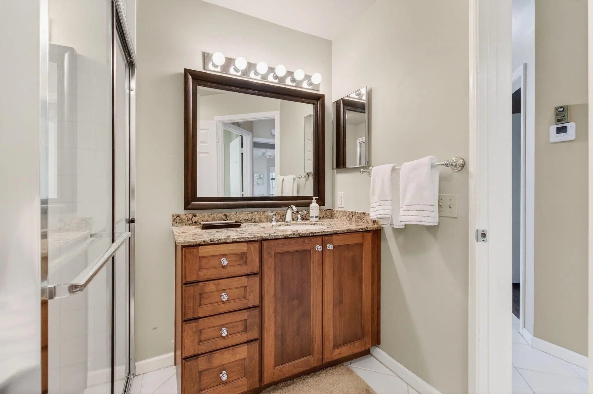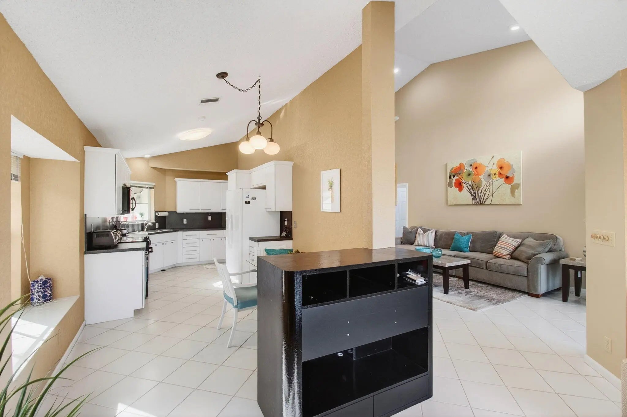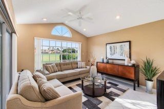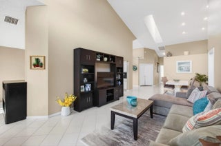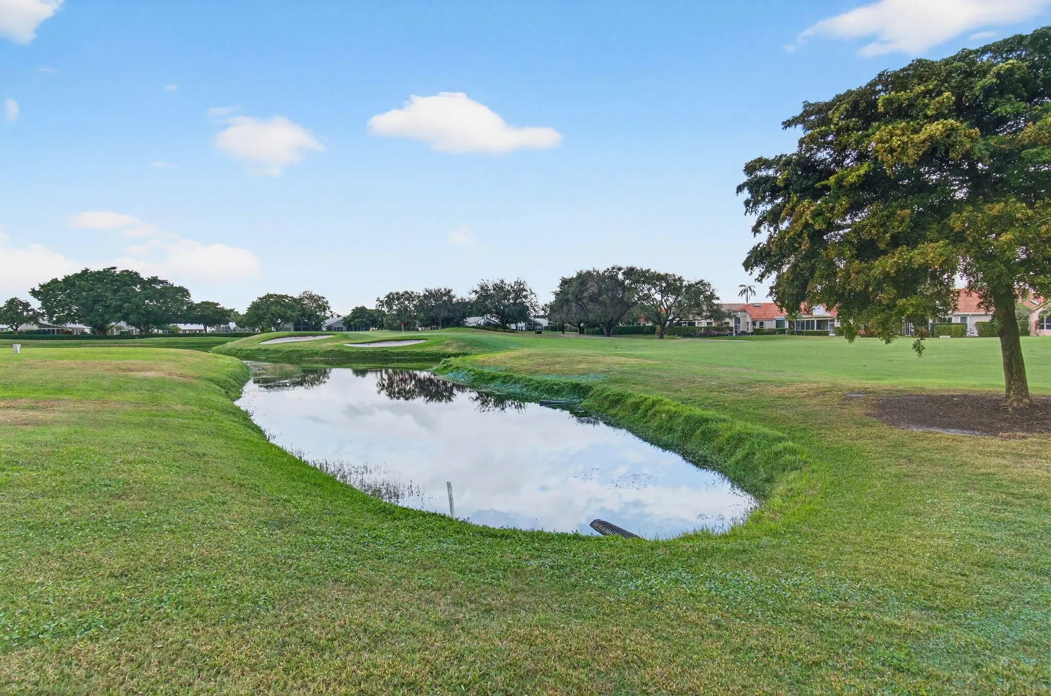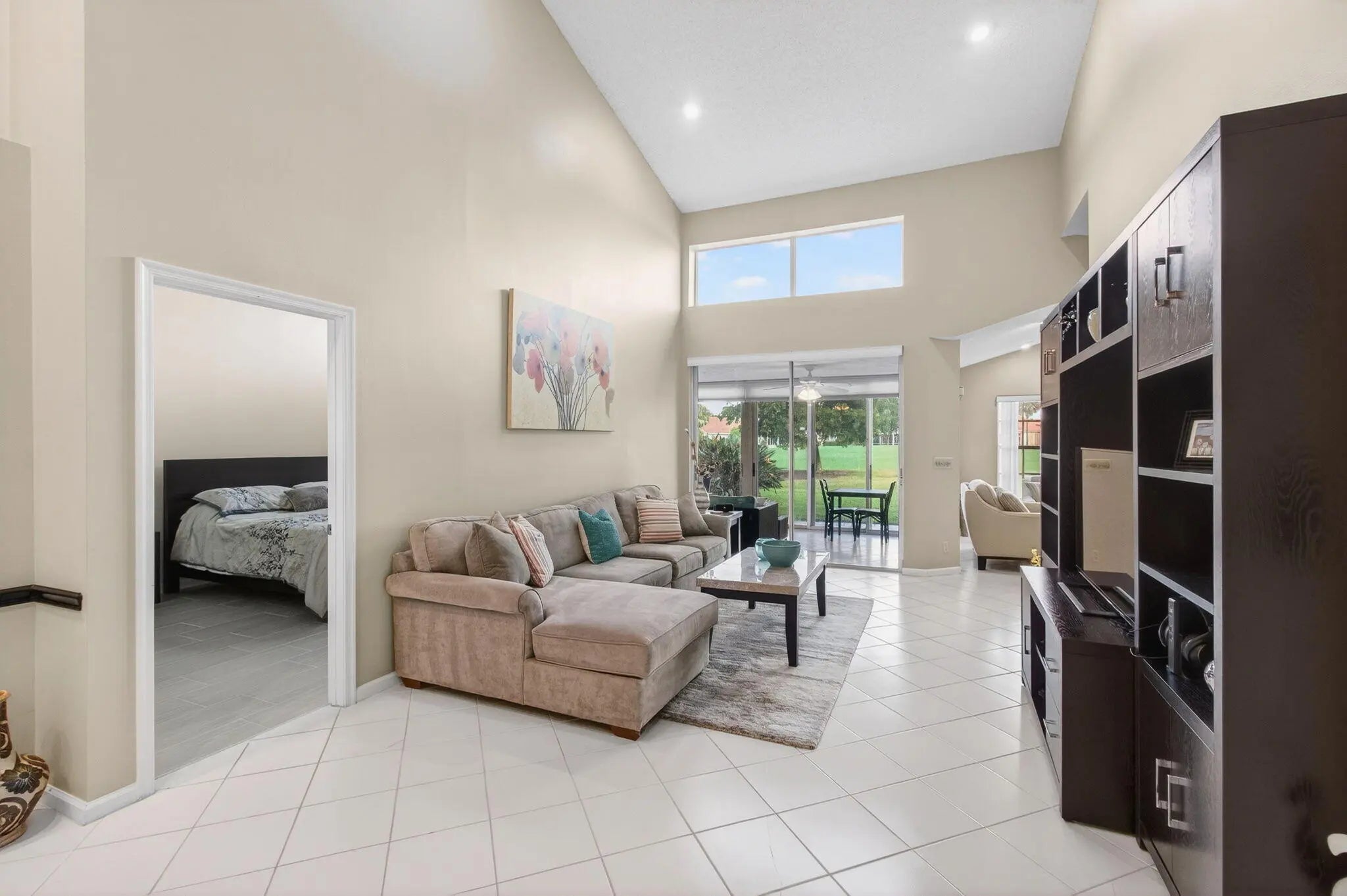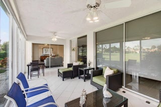 Look no more for your 3 bedroom 2 bath 2 car garage villa with a panoramic golf course and lake view. This villa features a separate family room and living room plus a glass enclosed Florida Room. Light and bright home with soaring ceilings. White tile in living areas, kitchen and family room. The large Primary bedroom has wood look tile volume ceiling and 2 walk in closets. Primary bathroom has a beautiful vanity with dual sinks and granite counter tops, separate tub and separate shower. The 2nd bedroom is large for visiting family or friends. The 3rd bedroom that is currently being used as a den/office/bedroom. A/C is 2020. Two car garage is a bonus. The community features 24/7 guard gated security, cable, lawn care and landscaping maintenance, roof maintenance, hazard insurance.