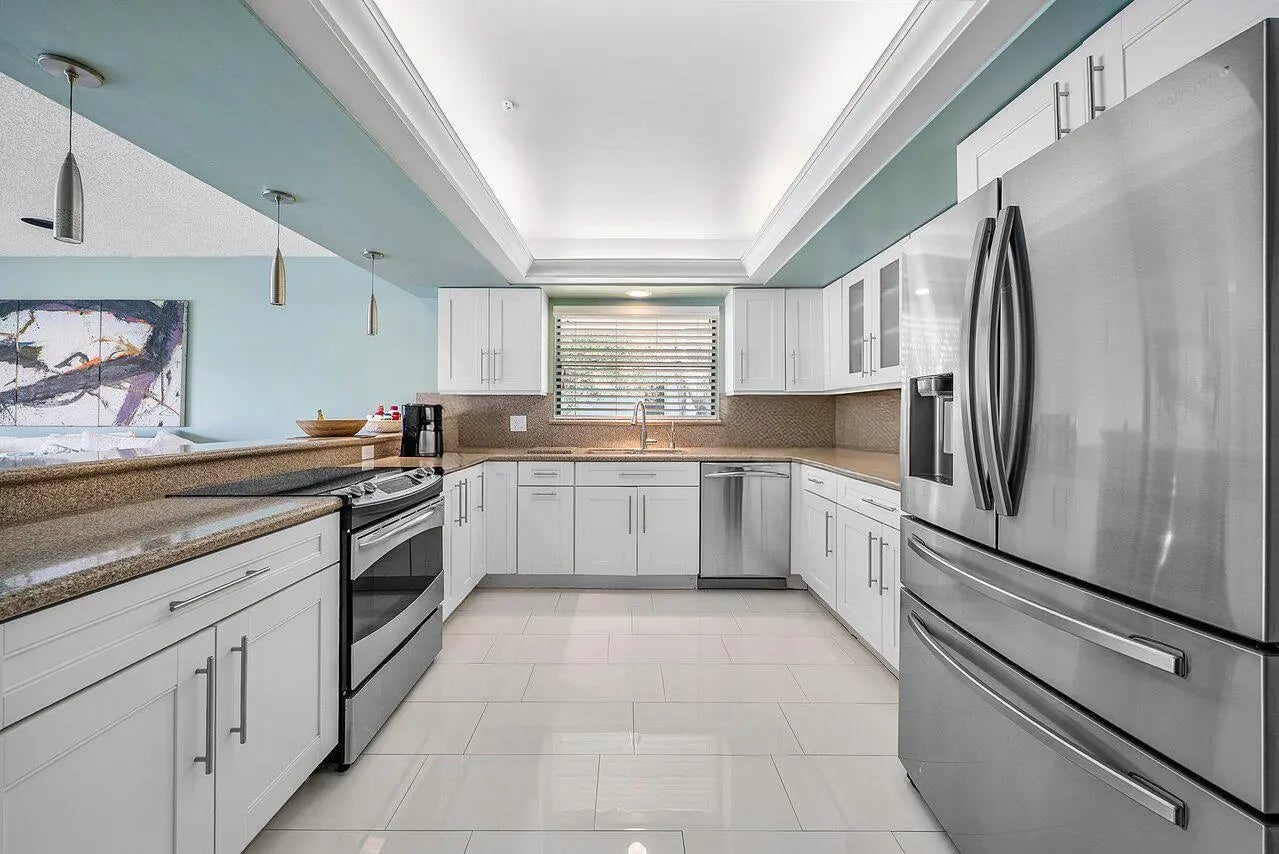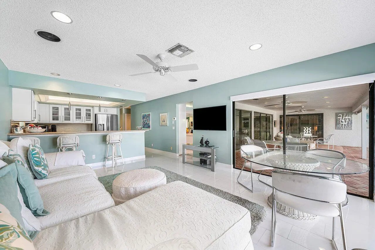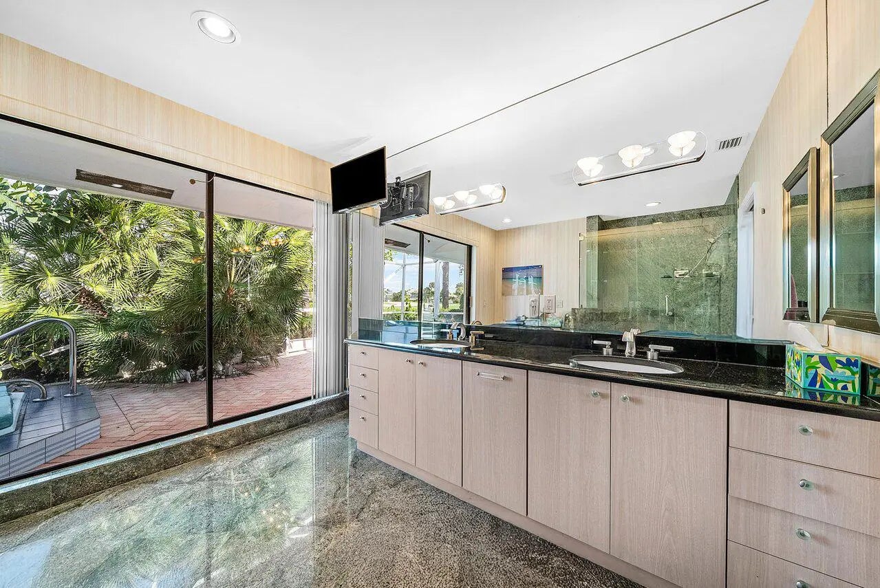 Situated on a quiet cul-de-sac street and just a short walk to the clubhouse, this home offers a wonderful opportunity to enjoy lakefront living with beautiful sunset views and sweeping golf course scenery. Set on over one-third of an acre, the property features a spacious layout with two primary suites, each with generous walk-in closets and en-suite baths. Elegant European marble flooring, coffered ceilings, and custom built-ins add to the home's appeal, while formal living and dining areas provide great space for entertaining. The kitchen includes updated white soft-close cabinetry, offering an ideal base for your own personal enhancements. A large den/office can also serve as a third bedroom to meet your lifestyle needs. Additional highlights include a three-zone HVAC system and an