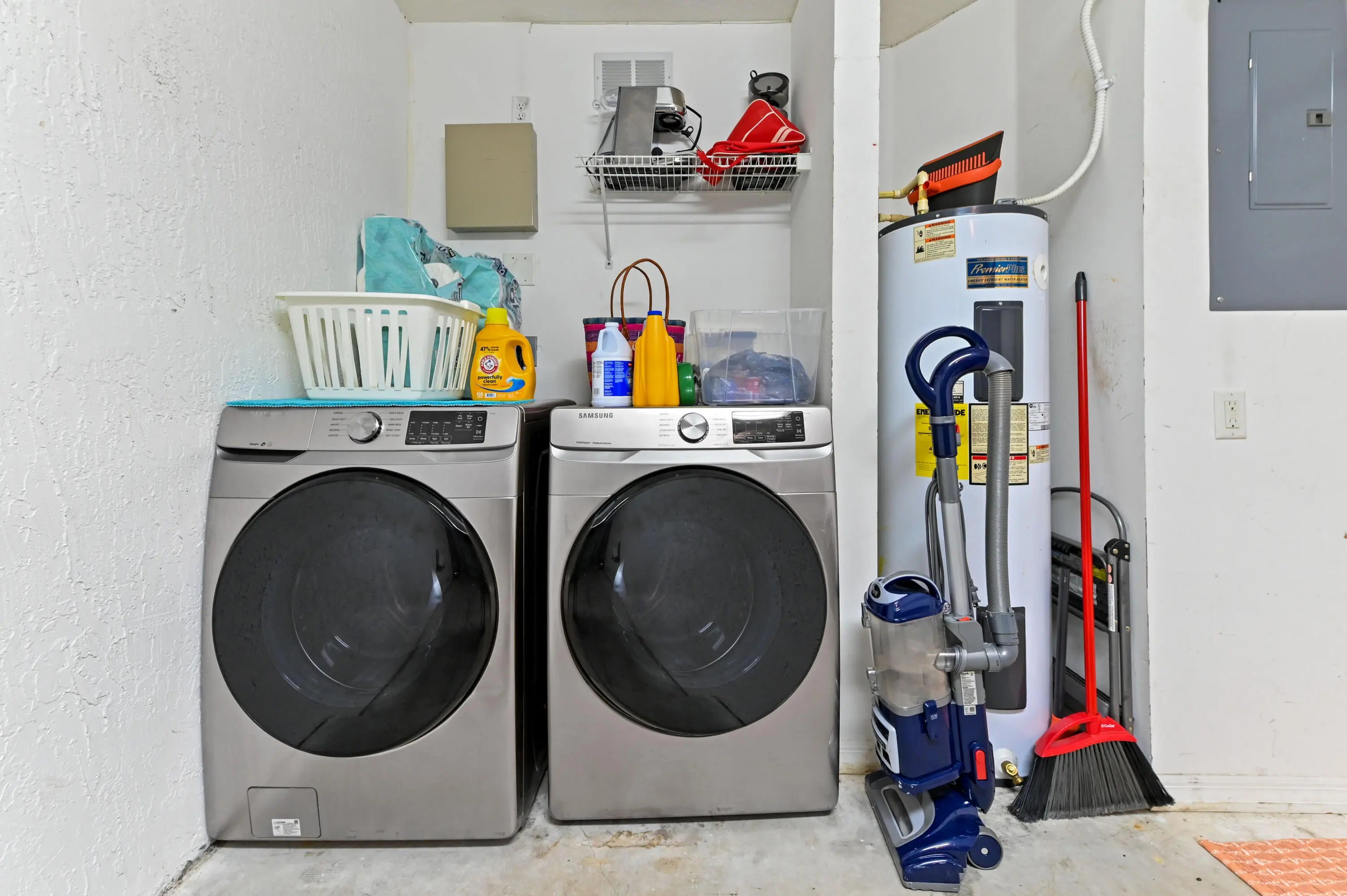 Dishwasher, Disposal, Dryer, Ice Maker, Microwave, Range - Electric, Refrigerator, Smoke Detector, Storm Shutters, Washer, Water Heater - Elec