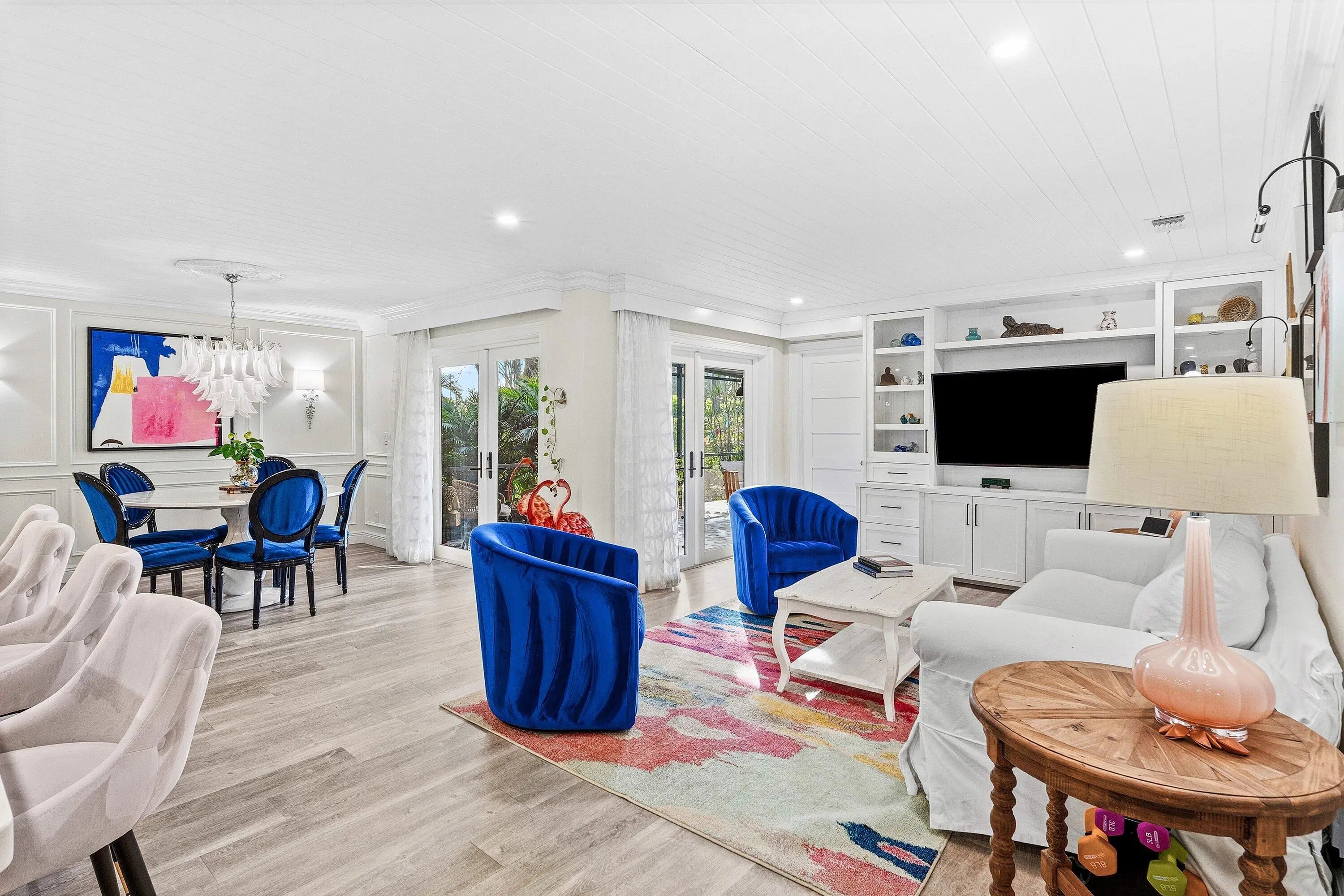 This stunning 2-bedroom, 2-bath villa offers modern living in a highly sought-after 24-hour manned gated community. Completely renovated, the home features a new roof, impact glass windows, and elegant French doors. Inside, you'll find a thoughtfully redesigned layout with an incredible kitchen showcasing wood cabinetry, quartz countertops, and sleek finishes. The home also features crown molding, stylish sconces, and T-bar ceilings that elevate the overall look and feel. Both bathrooms were fully updated, and the home includes new luxury vinyl flooring, a new electrical panel and outlets, tankless water heater, recessed lighting, and fresh interior paint throughout. Both bedrooms are equipped with spacious California-style walk-in closets
