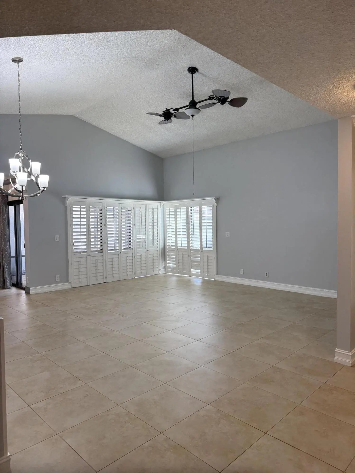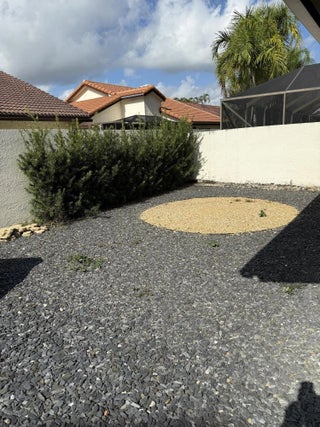 Step into this freshly painted & landscaped 3BR,2BA Pool Home located directly across from the community tennis court.Light, bright, and inviting, the home features soaring ceilings throughout the living and dining areas. The contemporary white kitchen offers granite counters, stainless steel appliances, a pantry, and direct access to a screened patio,pool & yard .Hurricane Impact Windows throughout are finished with elegant California-style shutters & Blinds.The primary suite includes dual sinks, walk-in closets, a separate shower, & a linen closet. The second bathroom services the main living areas and provides a private entry from the adjoining bedroom, complete with its own sink and shower. A third bedroom/den offers privacy & comfort Walk to an A+ School,Shops & Houses of Worship
